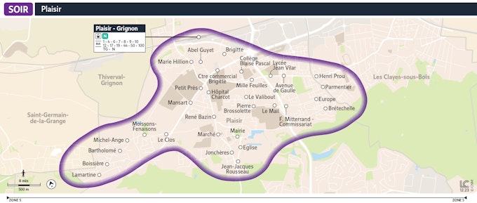 The principle is simple: without reservation, everyone can board the bus at Plaisir-Grignon station and indicates their alight stop (from the list of scheduled alight stops) to the driver, who adapts his route according to the customers in the vehicle.