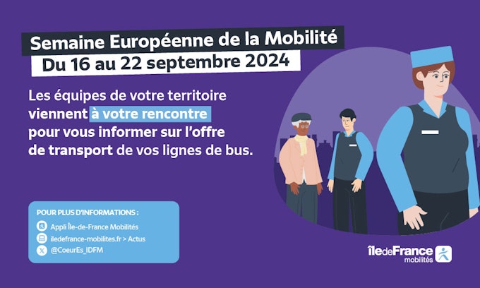 The teams in your Cœur d'Essonne area are coming to meet you, on the occasion of European Mobility Week, from 16 to 22 September 2024, to find out about the transport offer of your bus lines. A multitude of activities await you with the following on the programme: