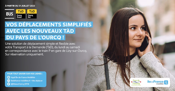 From 31 July 2023, the TàD line 40 is replaced by the TàD Ourcq Ouest and the TàD Ourcq Est : they improve your travel during off-peak hours and on Saturdays in addition to your regular lines.