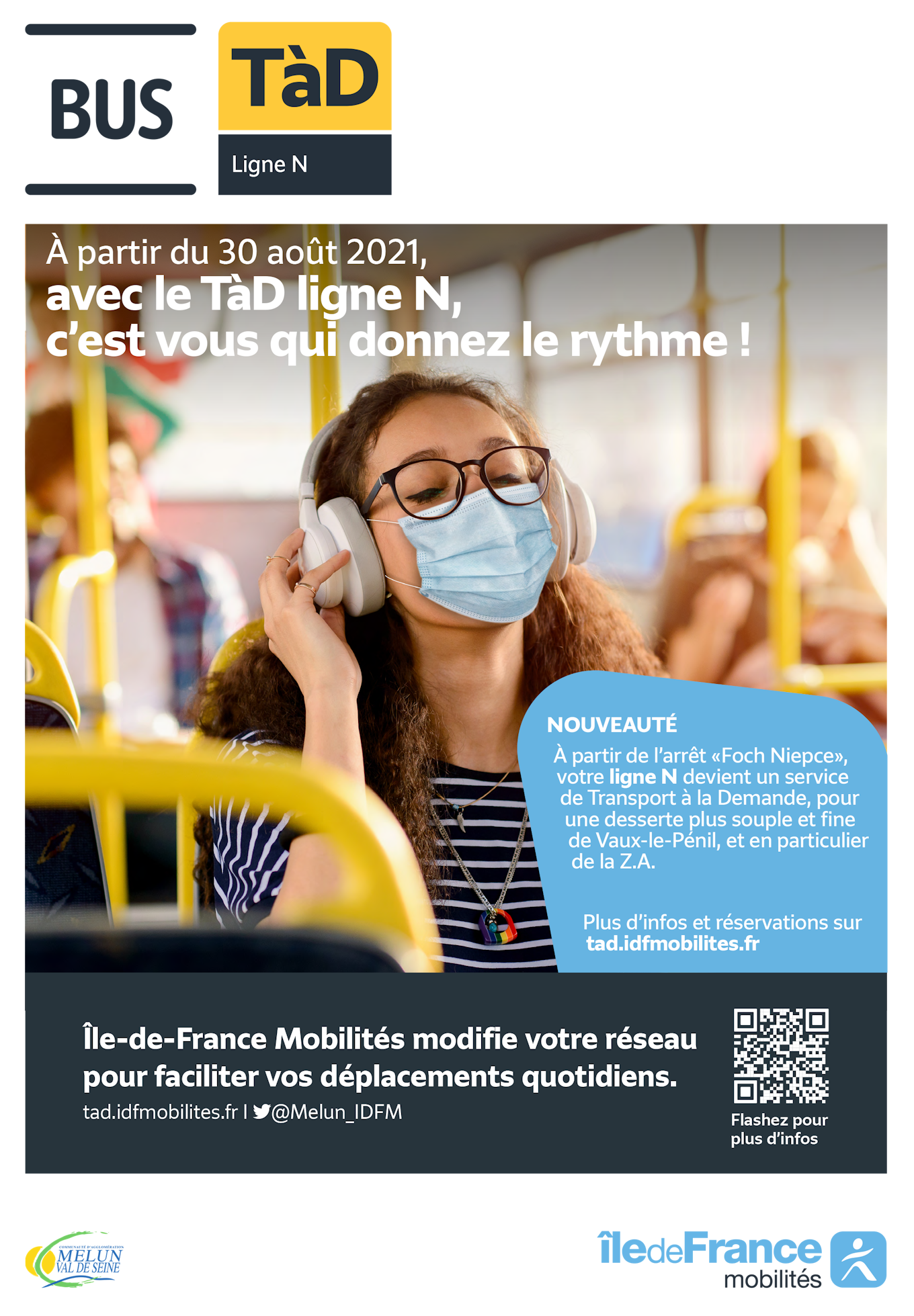 New: from the Foch Niepce stop, your N line becomes a Demand-Responsive Transport service, for a more flexible and fine service to Vaux-le-Penil, and in particular to the ZA.