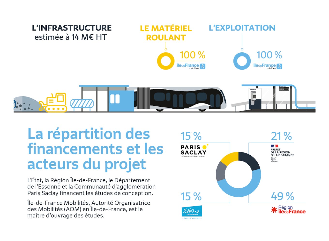 The State, the Ile-de-France Region, the Department of Essonne and the Paris Saclay Urban Community are financing the design studies, according to this breakdown:
