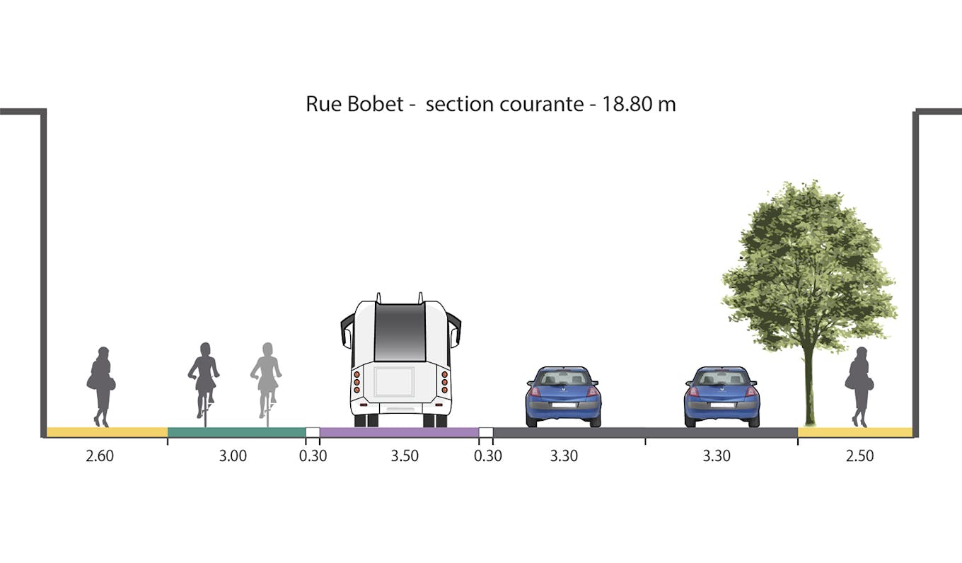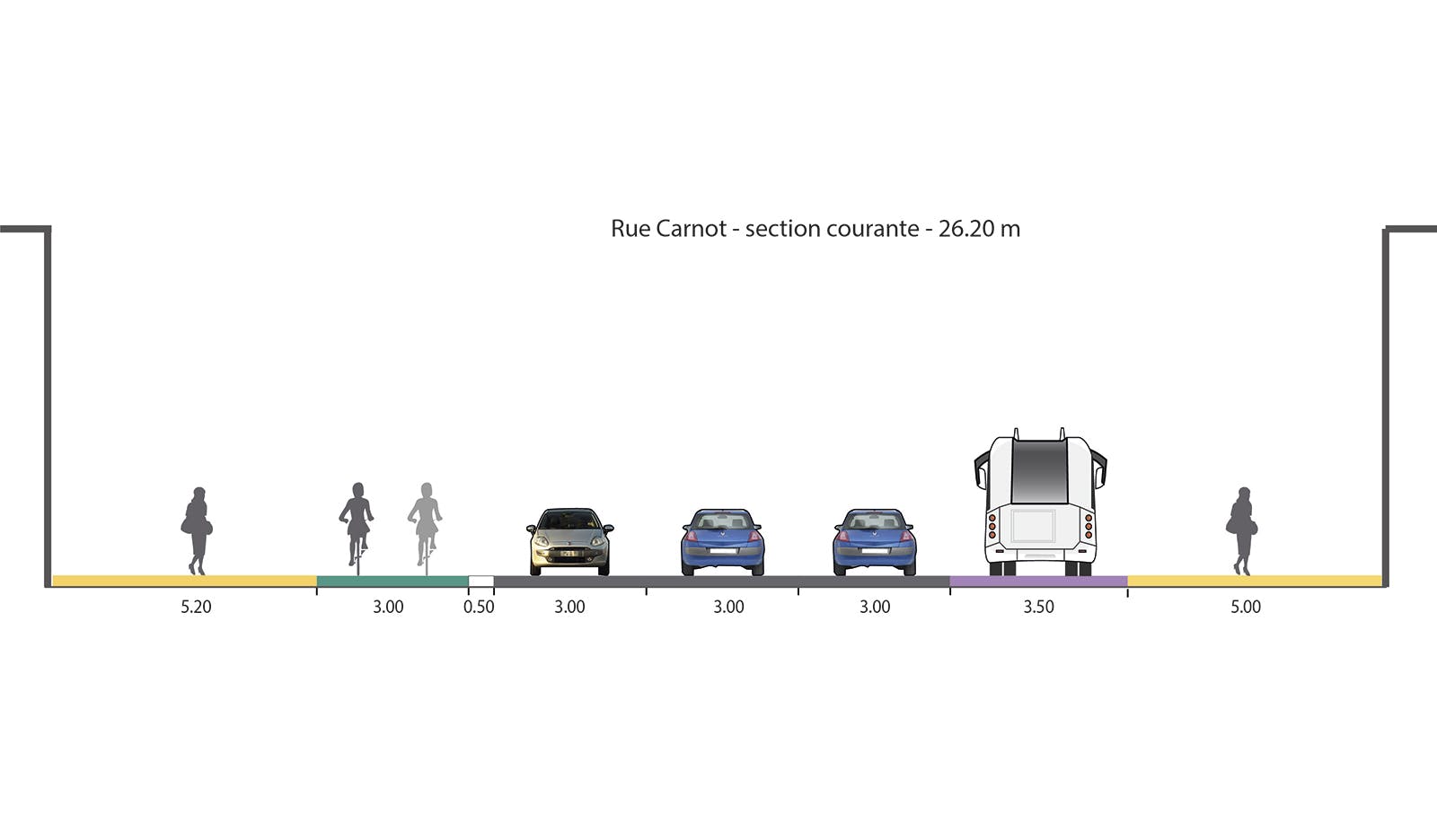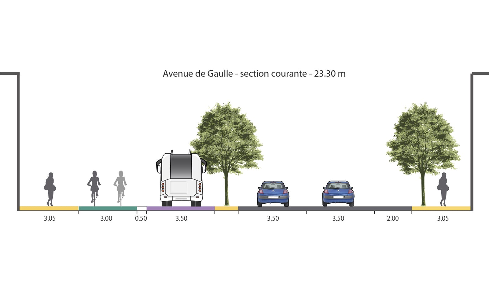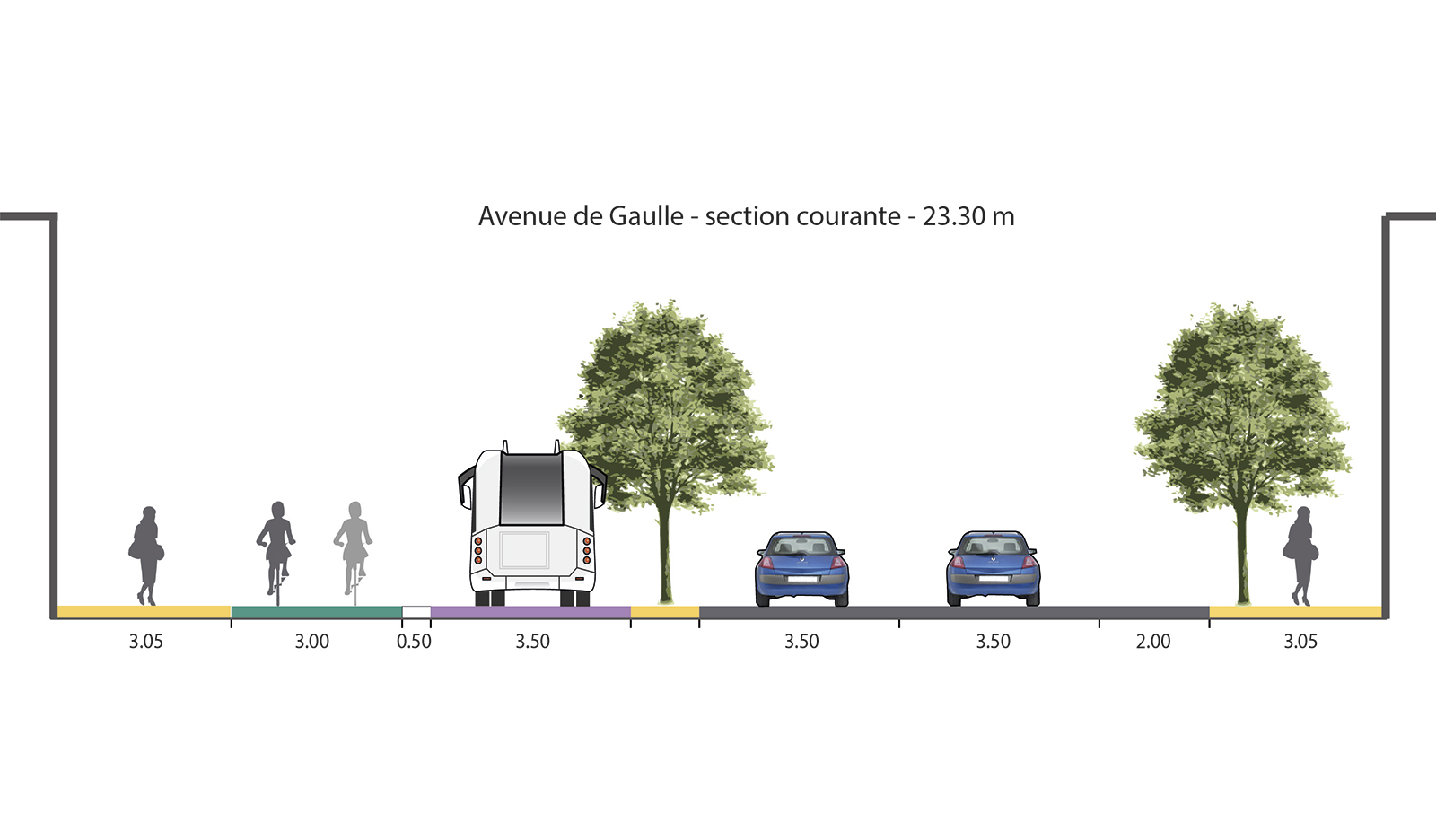 The Bus Bords de Marne will run in one direction. In order not to disrupt road traffic, the project provides for 2 lanes of traffic for motorists on Avenue du G. de Gaulle / de Lattre de Tassigny and L. Bobet / Boulevard R. Poincaré, and 3 lanes of traffic on Rue Carnot.