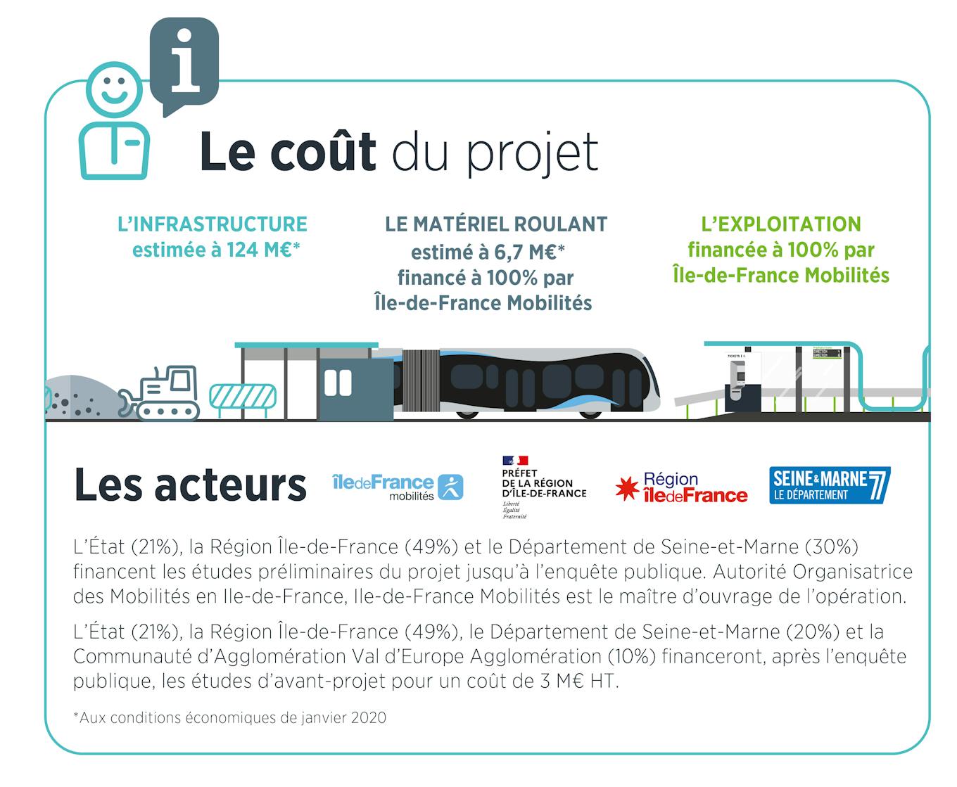 The EVE Bus is developed in collaboration with all the municipalities, communities and partners concerned, in order to adapt the project to the specificities of the territory, in particular: the municipalities of Esbly, Coupvray, Montry, Magny-le-Hongre, Chessy, Serris, Montévrain, Jossigny, and Bailly-Romainvilliers, the Val d'Europe Agglomération and Marne et Gondoire agglomeration communities, the public development establishments of Marne-la-Vallée EPAMarne and EPAFrance, the Syndicat Intercommunal des Transport, the Louis Braille College in Esbly, the Grand Hôpital de l'Est Francilien, the VALFRANCE agricultural cooperative, the company EURODISNEY SAS, SNCF-Réseau, Voies Navigables de France, HAROPA - Ports de Paris.
