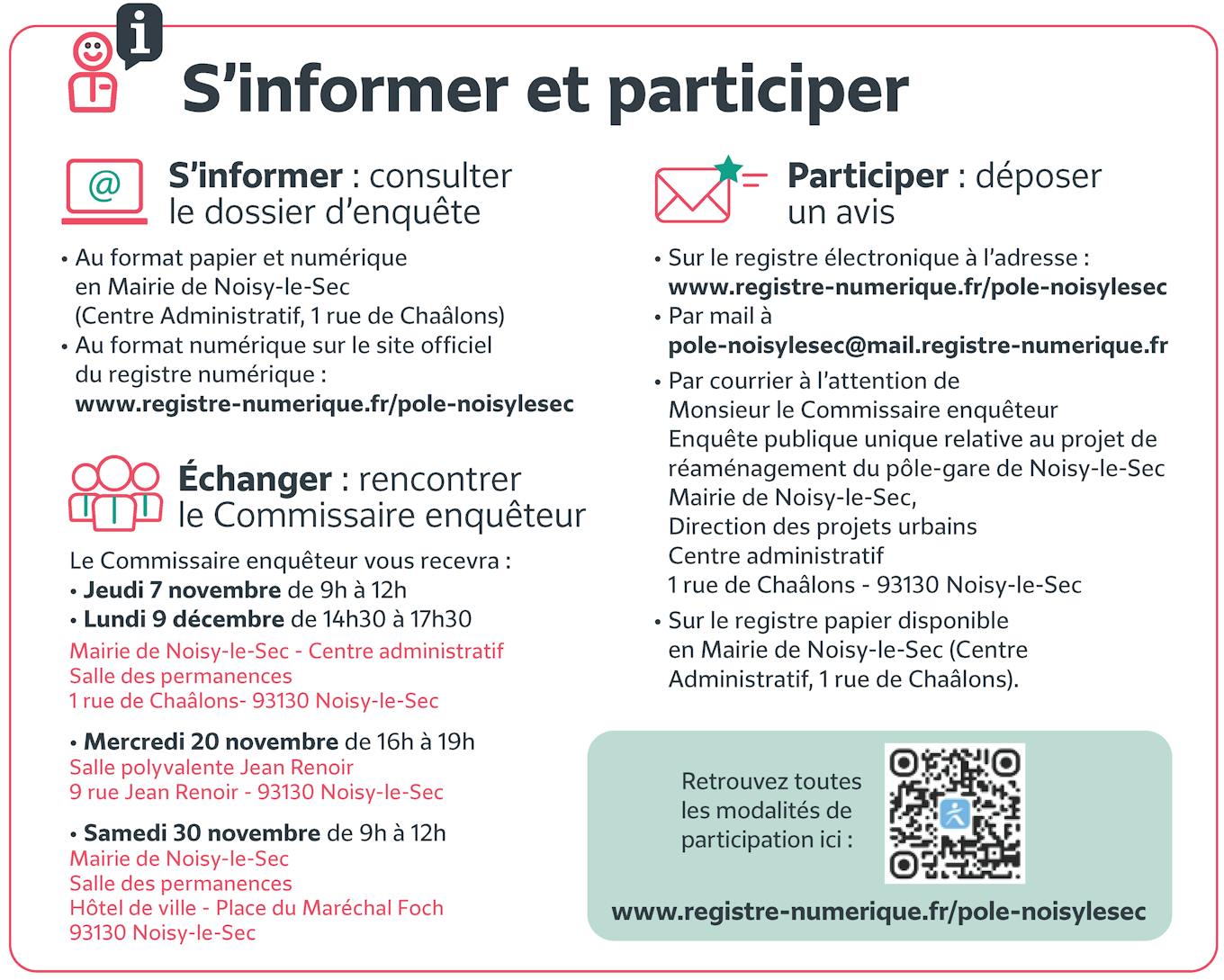 Consult the investigation file in paper format at the Noisy-le-Sec Town Hall (Administrative Centre, 1 rue de Chaâlons) or digitally on the official website of the digital register.
