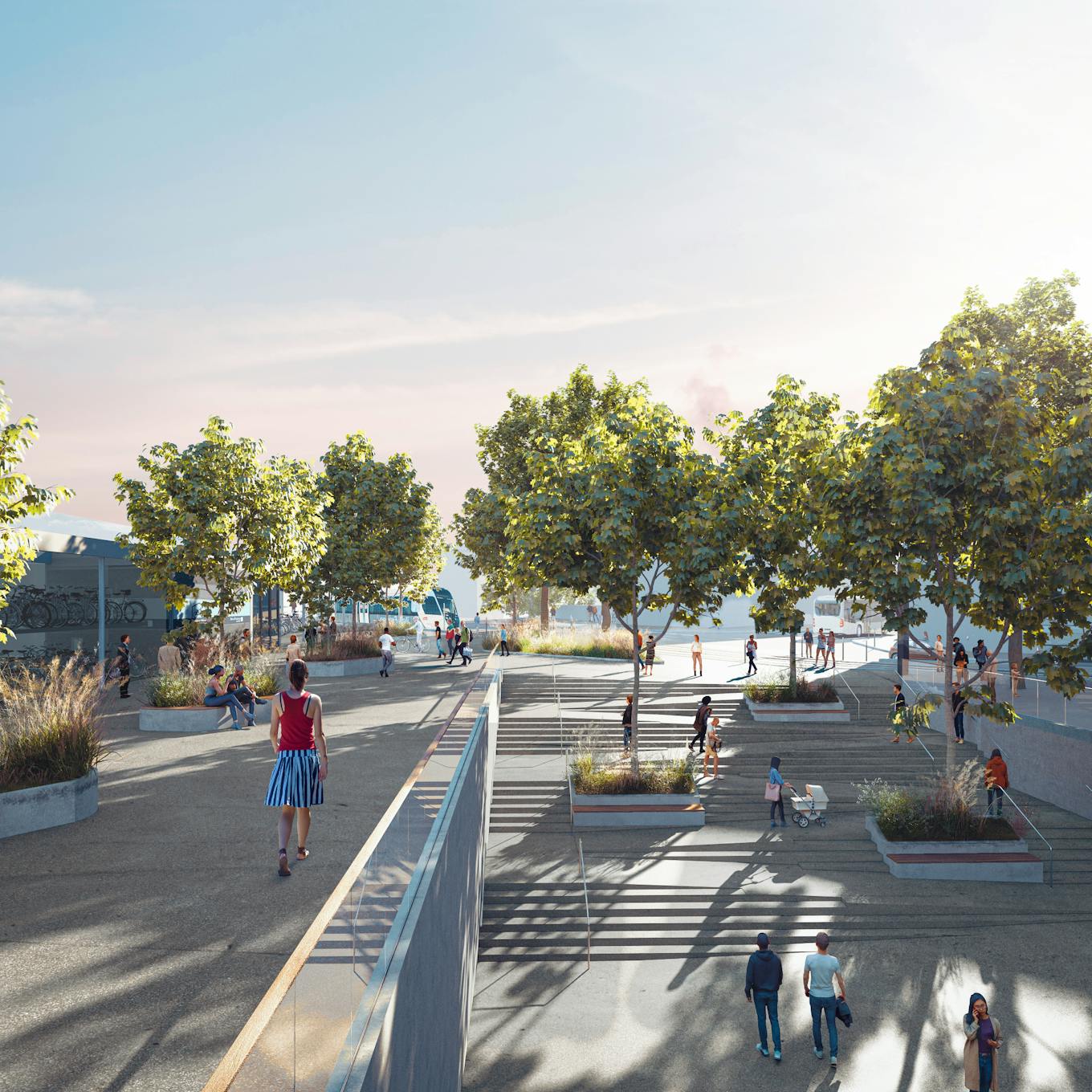 Two enlarged pedestrian forecourts on the upper and lower levels of the station will also be built, with the creation of a comfortable link accessible to people with reduced mobility (PRM) between these two forecourts, allowing a better opening of the station to the city.