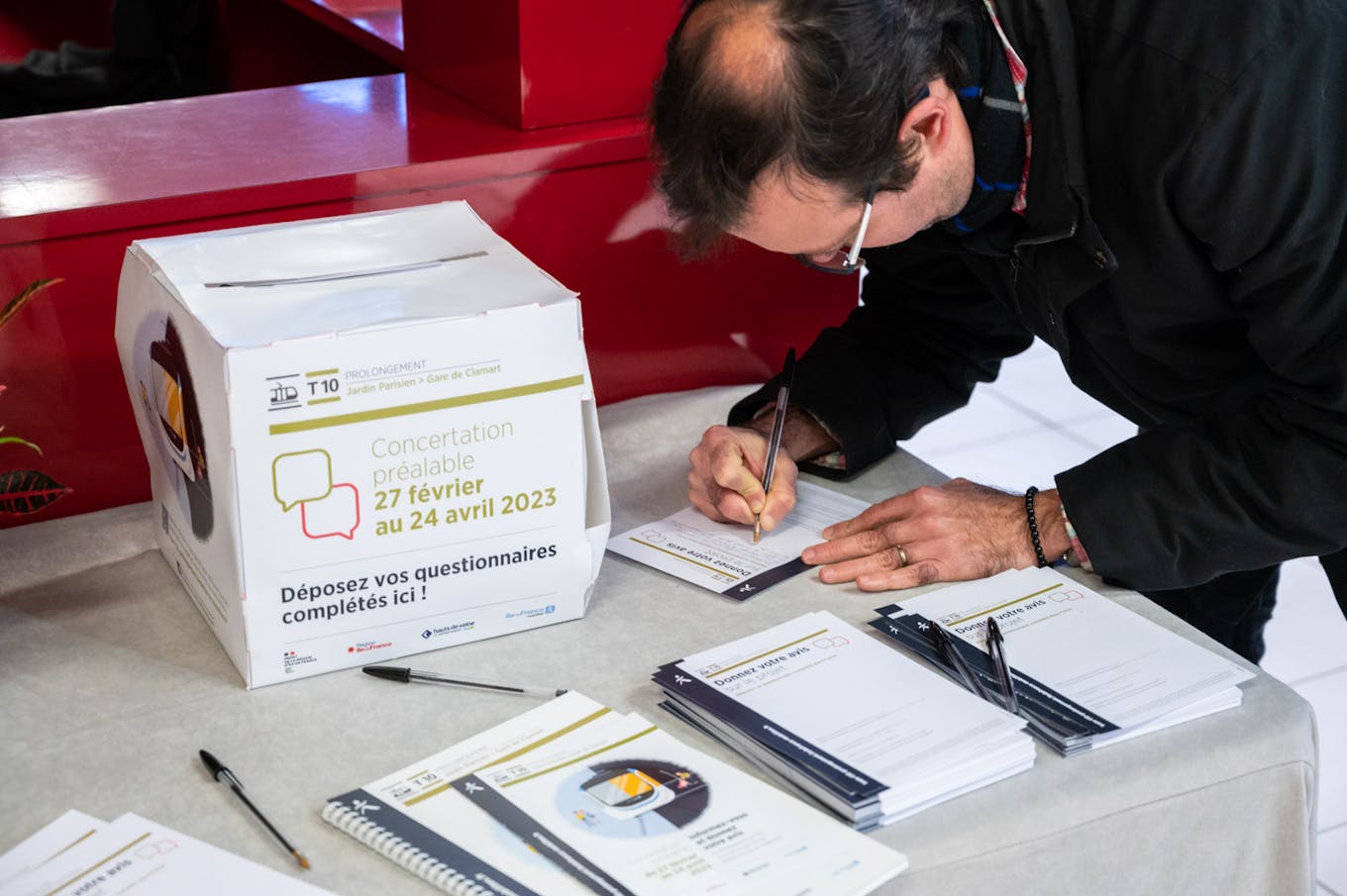 On site, everyone had the opportunity to send their opinion through a questionnaire and to access the documentation made available by Île-de-France Mobilités, the project leader.