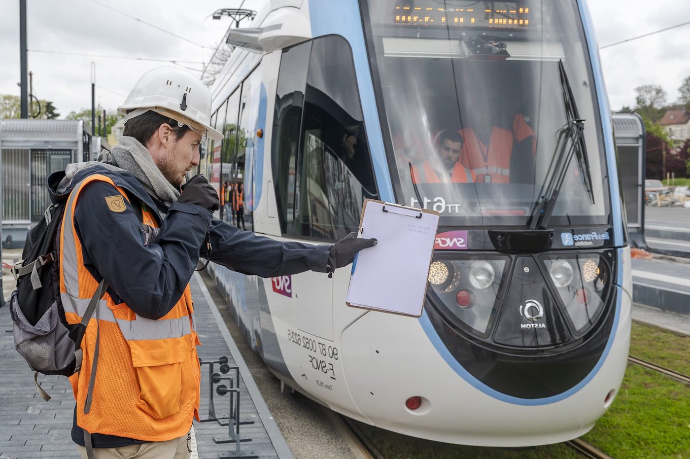 Before any start-up, the tram-train is checked to ensure that it complies with the required safety and quality standards. Static testing is performed to test systems such as brakes, electrical, doors and seats, etc. The conformity of the infrastructure is also checked (rails, engineering structures, signalling, switches).