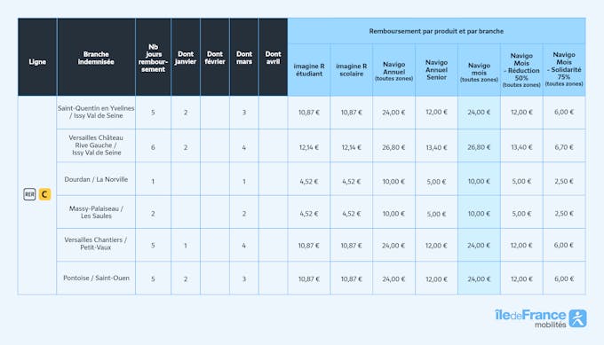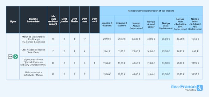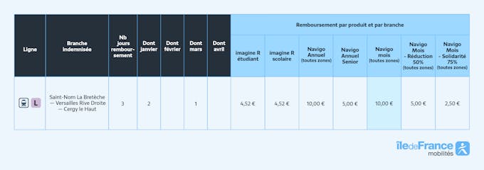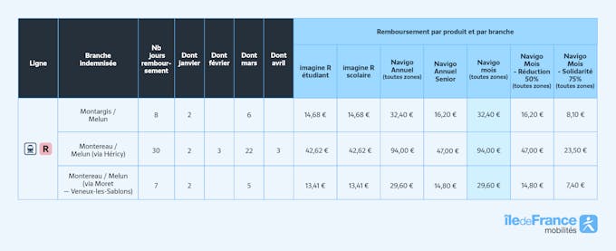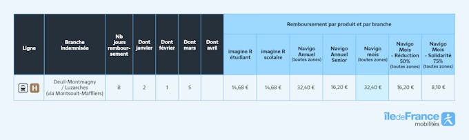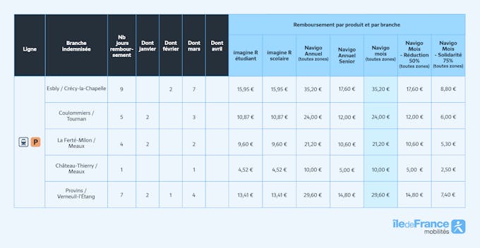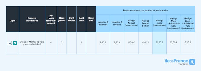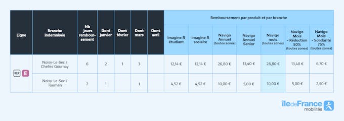 - + 4 días de interrupción : para las personas afectadas durante más de 4 días, los abonados afectados recibirán un reembolso de 2,80 euros por día de huelga a los que se añaden 10 euros adicionales para compensar las dificultades sufridas por los residentes de Île-de-France.