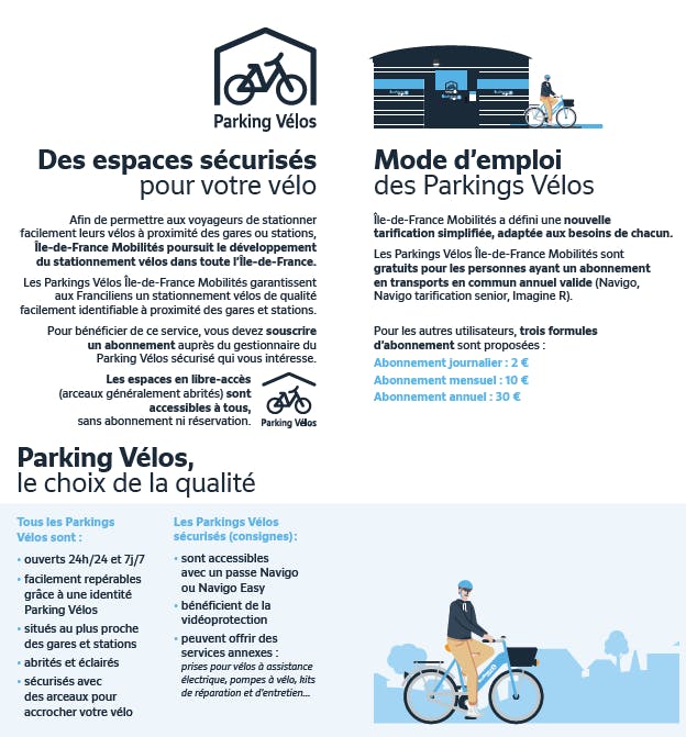 Para permitir que los pasajeros aparquen sus bicicletas cerca de estaciones y estaciones de tren, Île-de-France Mobilités sigue desplegando aparcamientos seguros para bicicletas en toda la región de Île-de-France.