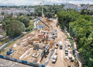 La estación de Valenton tiene una particularidad. Su ubicación permitirá reorientar ligeramente la línea hacia la estación de La Végétale. Pero también ofrecerá un nuevo punto de vista sobre la ciudad.