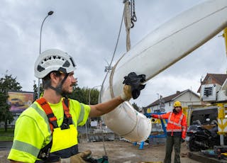 En Villeneuve-Saint-Georges, levantamiento del último pilono en el espacio público