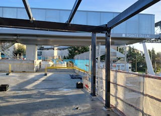 La apertura de la fachada acristalada de la estación de metro, que ya está finalizada, permitirá el acceso directo a la pasarela de 80 metros de longitud actualmente en construcción. Ya hay una capota para proteger a los pasajeros de las inclemencias del tiempo. El tablero del puente está reforzado y hormigonado. Los trabajos continuarán hasta el verano de 2025; Consistirán, en particular, en el refuerzo de los muros de contención y en la realización de impermeabilizaciones y electrificaciones.