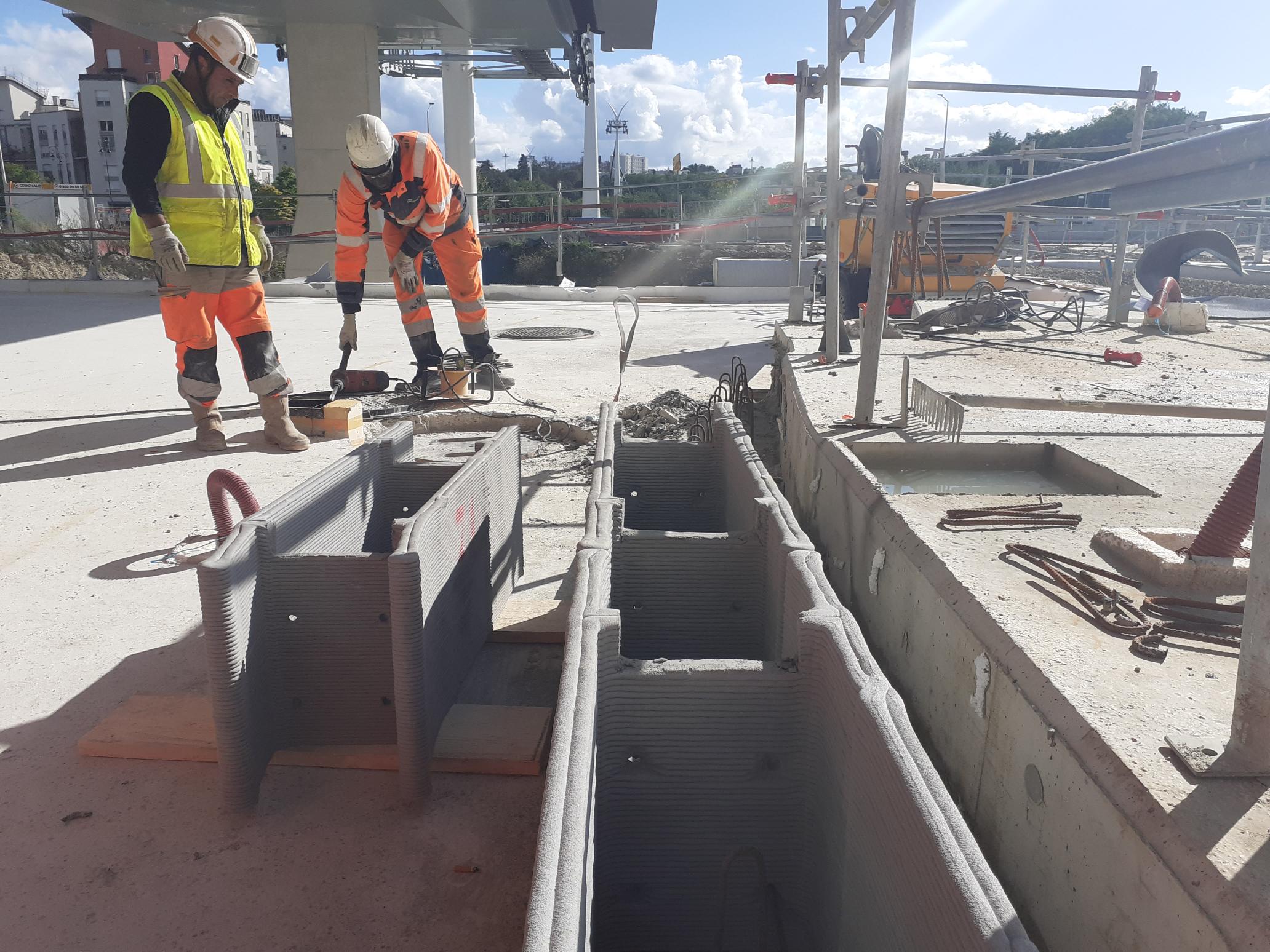 El 1 de octubre, los equipos en el emplazamiento de la estación Limeil-Brévannes instalaron los narices de los andenes utilizando encofrados impresos en 3D.