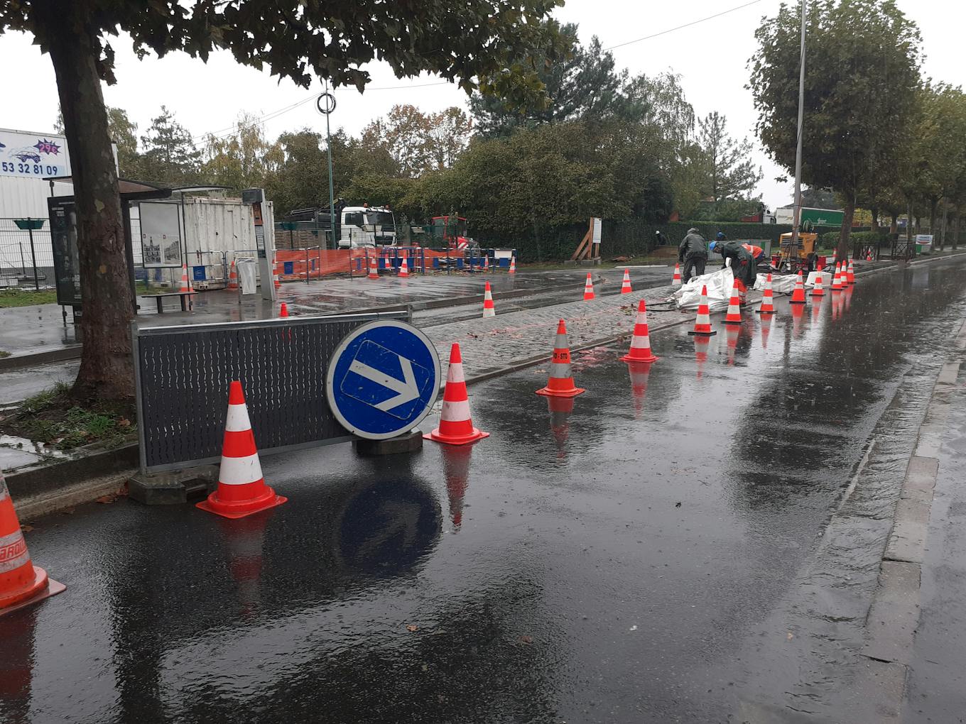 Así, del 23 al 27 de octubre de 2023, se realizará un estrechamiento de la avenida J.-F. Kennedy se llevó a cabo y el tráfico de automóviles se limitó a 30 km/h.
