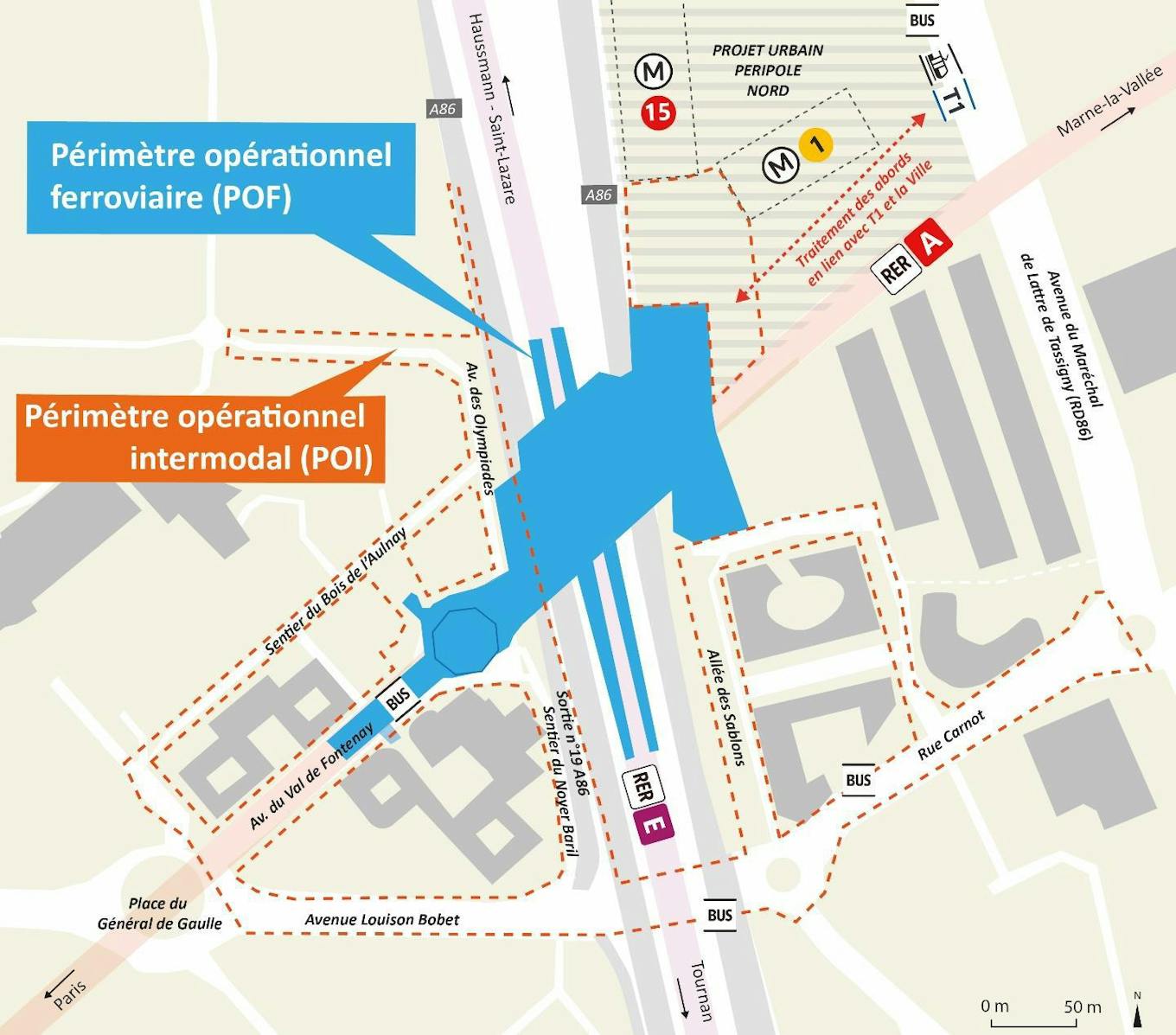 El objetivo es replantear la estación en línea con la llegada de nuevas líneas de transporte público (Tranvía T1, Bus Bord de Marne y Metros 1 y 15) y el desarrollo urbano de los alrededores.