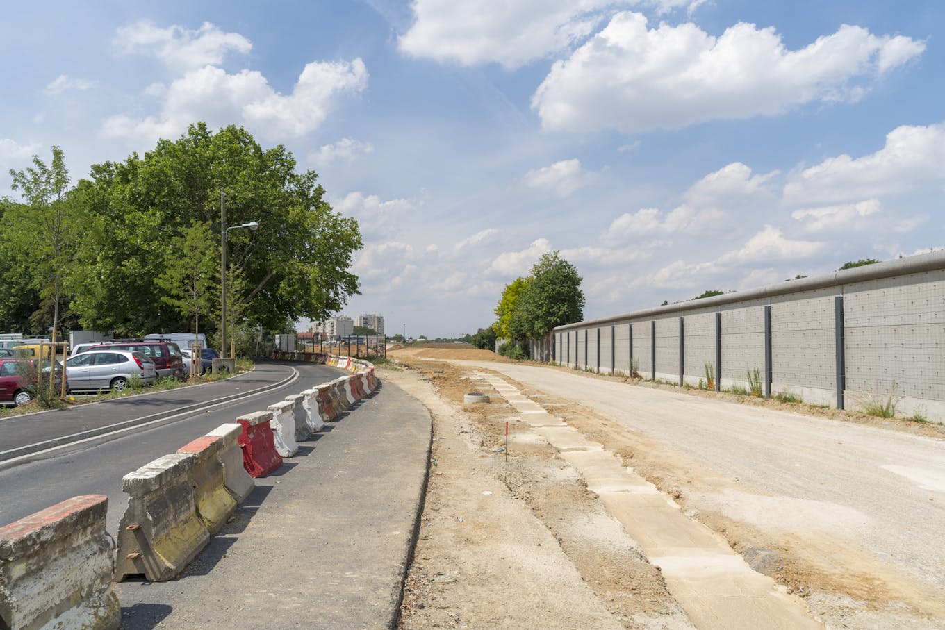 Las obras de desarrollo del tranvía T12 se completaron este verano en la rue de la Grande Borne, en Grigny.
