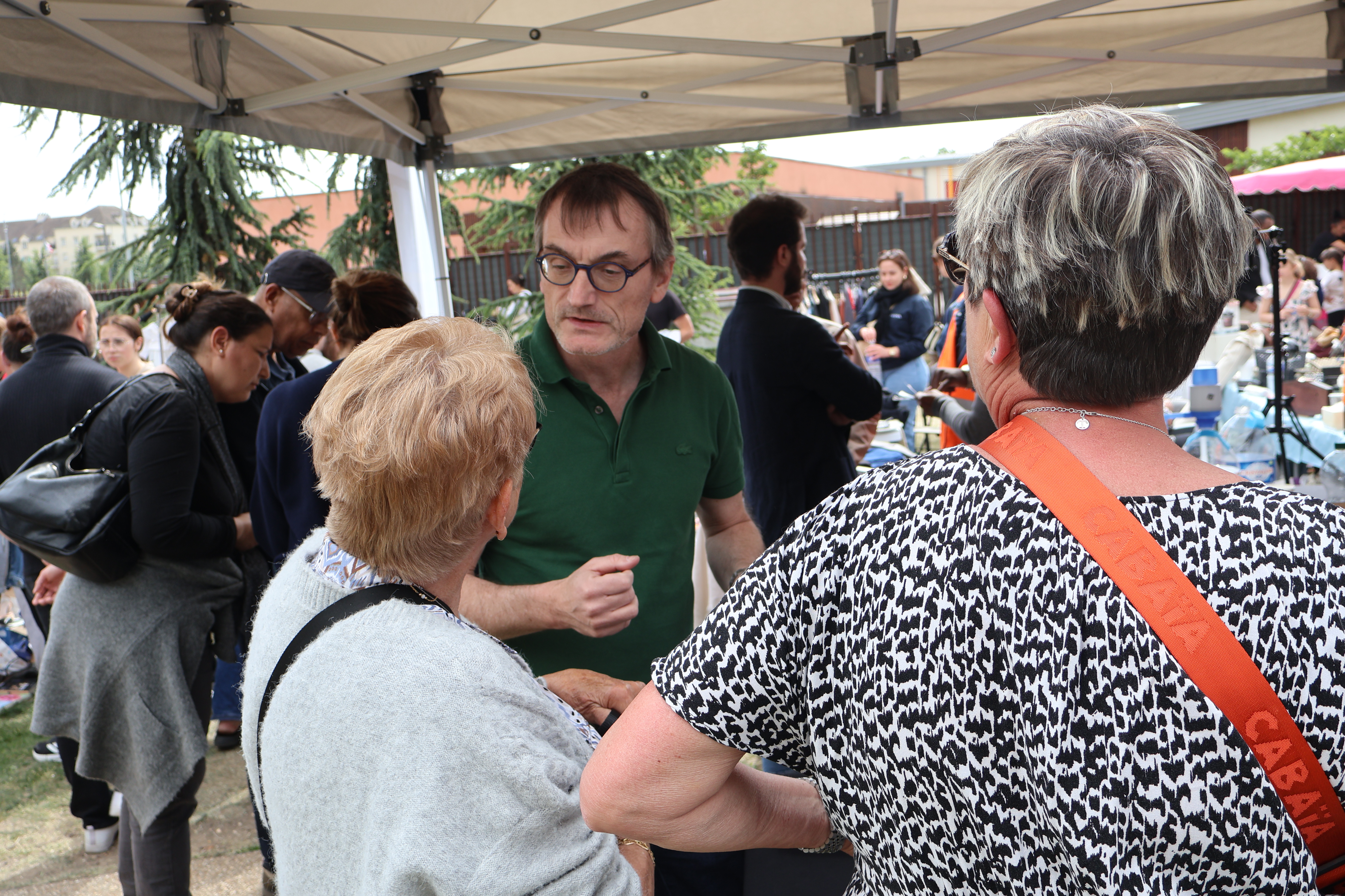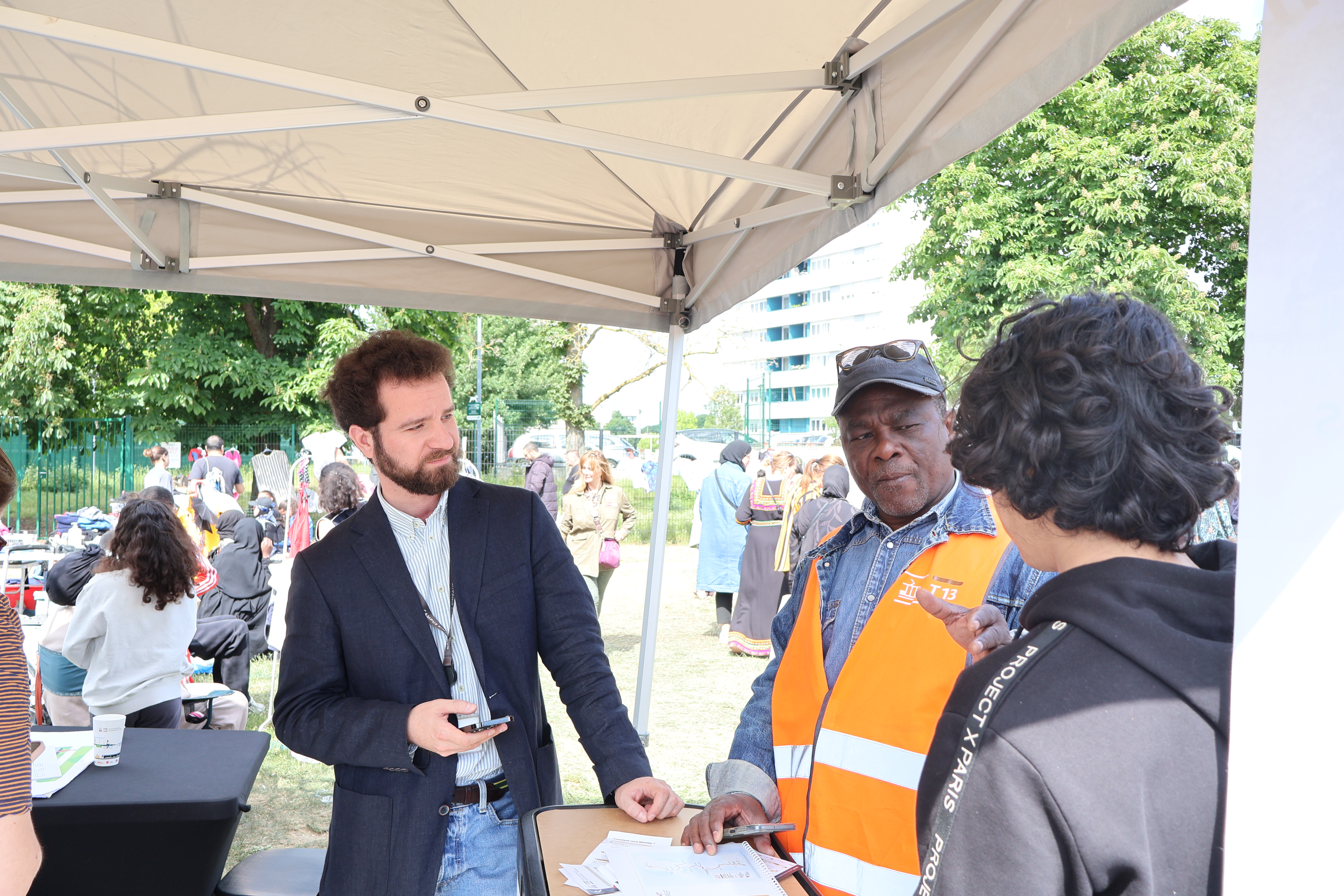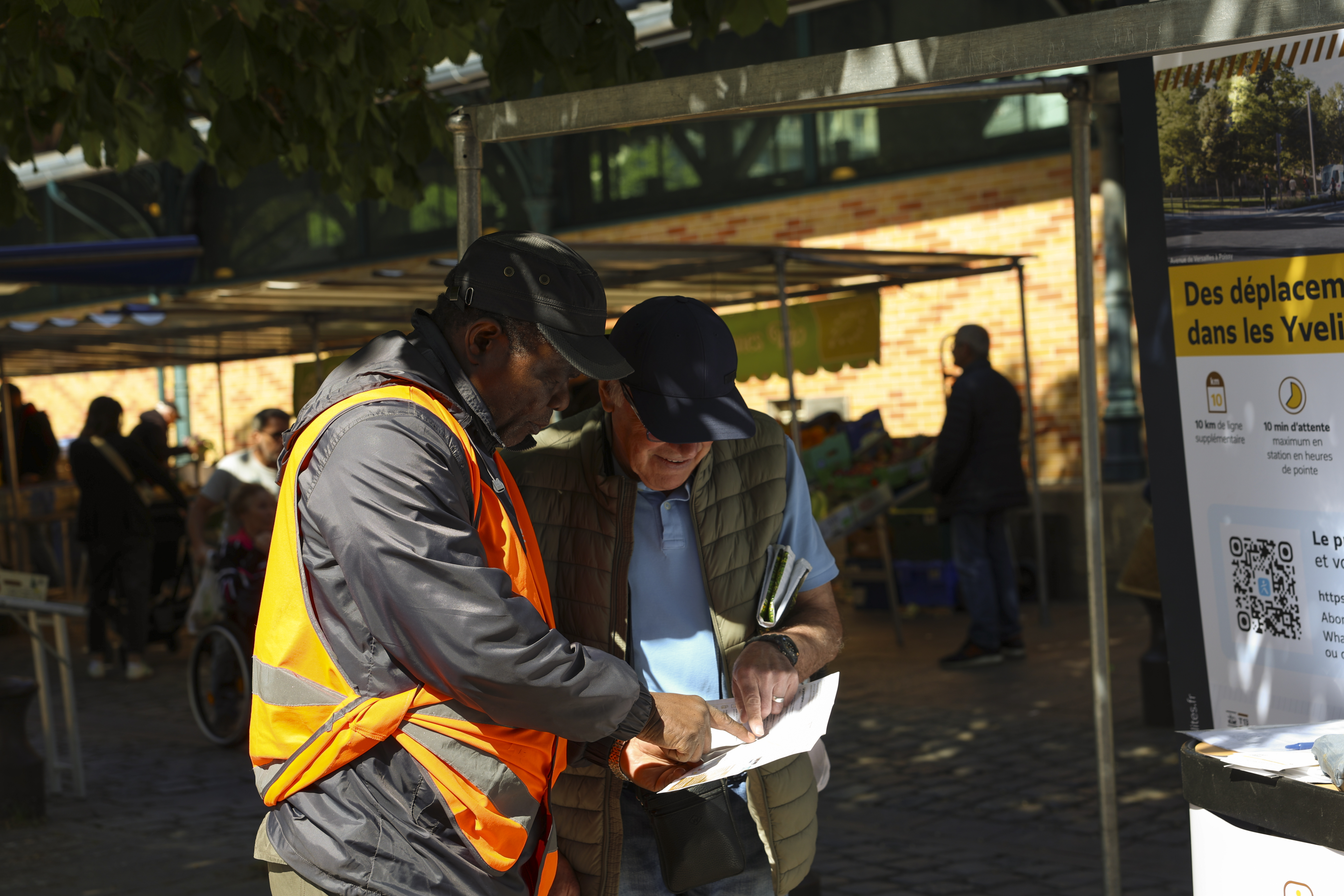 El sábado, Romain y el equipo tuvieron un puesto de "Extensión del tranvía T13" en el mercado de pulgas del barrio de Saint-Exupéry. Este día agradable y soleado estuvo marcado por muchos intercambios con los habitantes. Varios representantes de Île-de-France Mobilités y SNCF Réseau estuvieron presentes en el lugar para dar respuestas precisas a los visitantes, incluso sobre los aspectos más técnicos del proyecto.