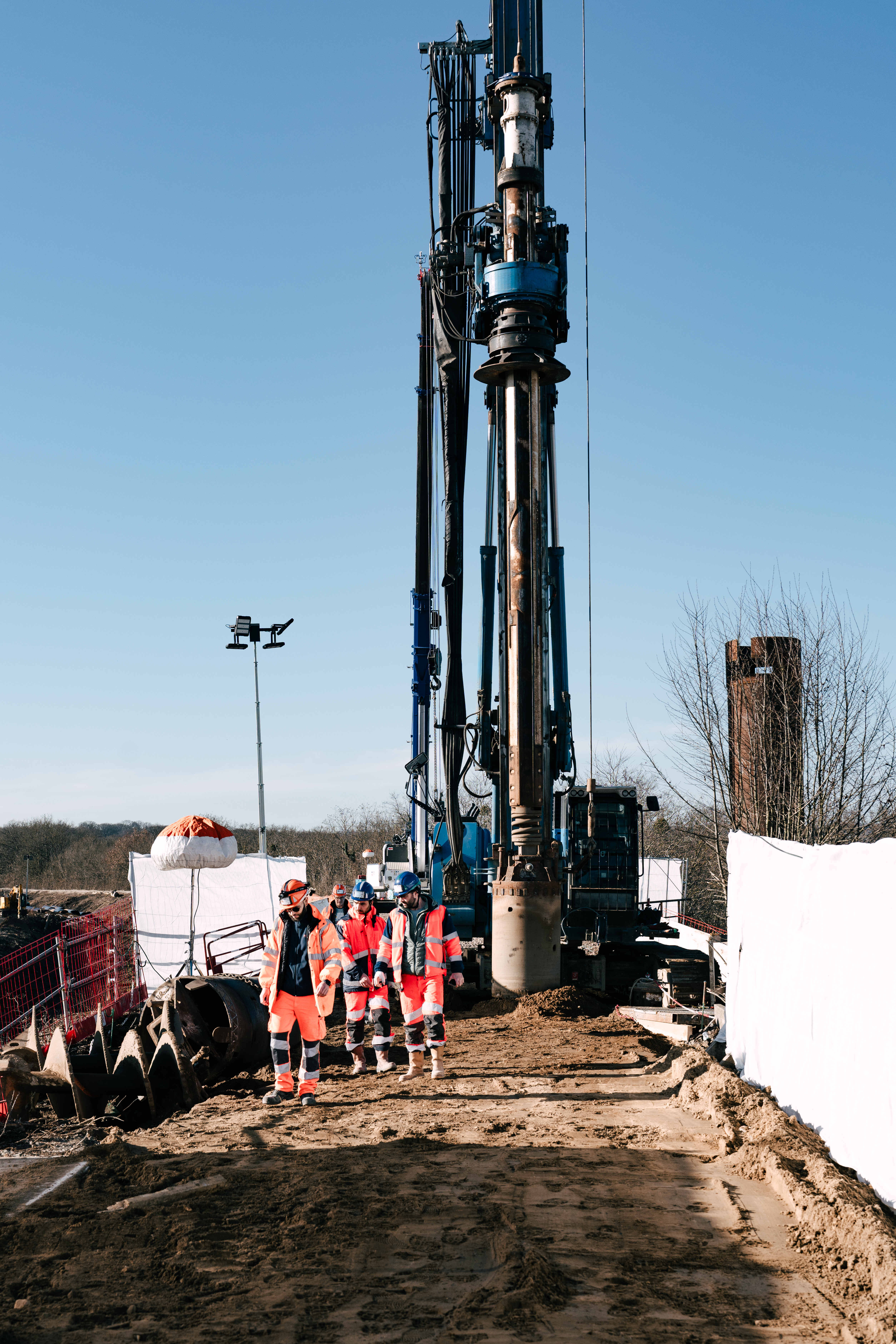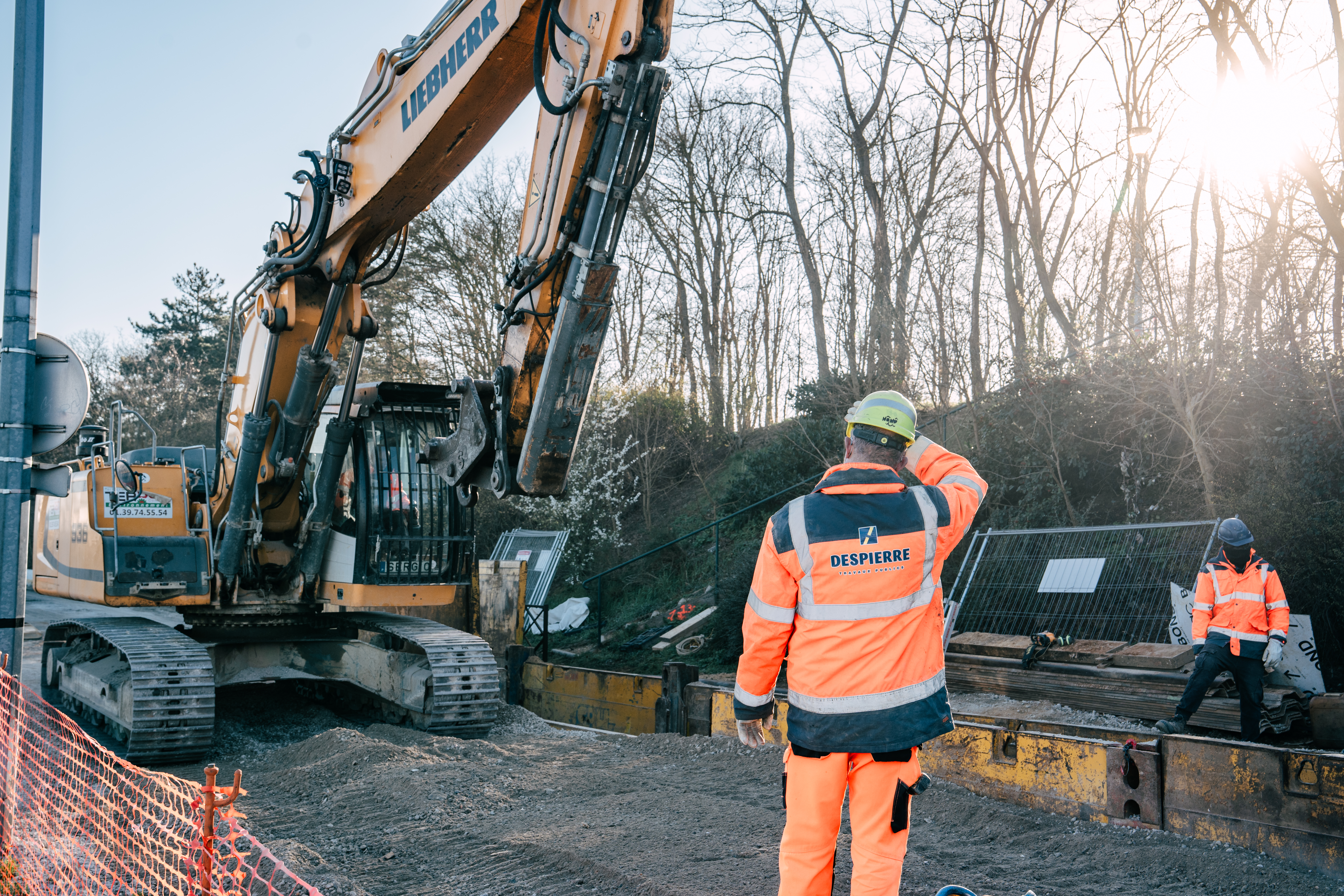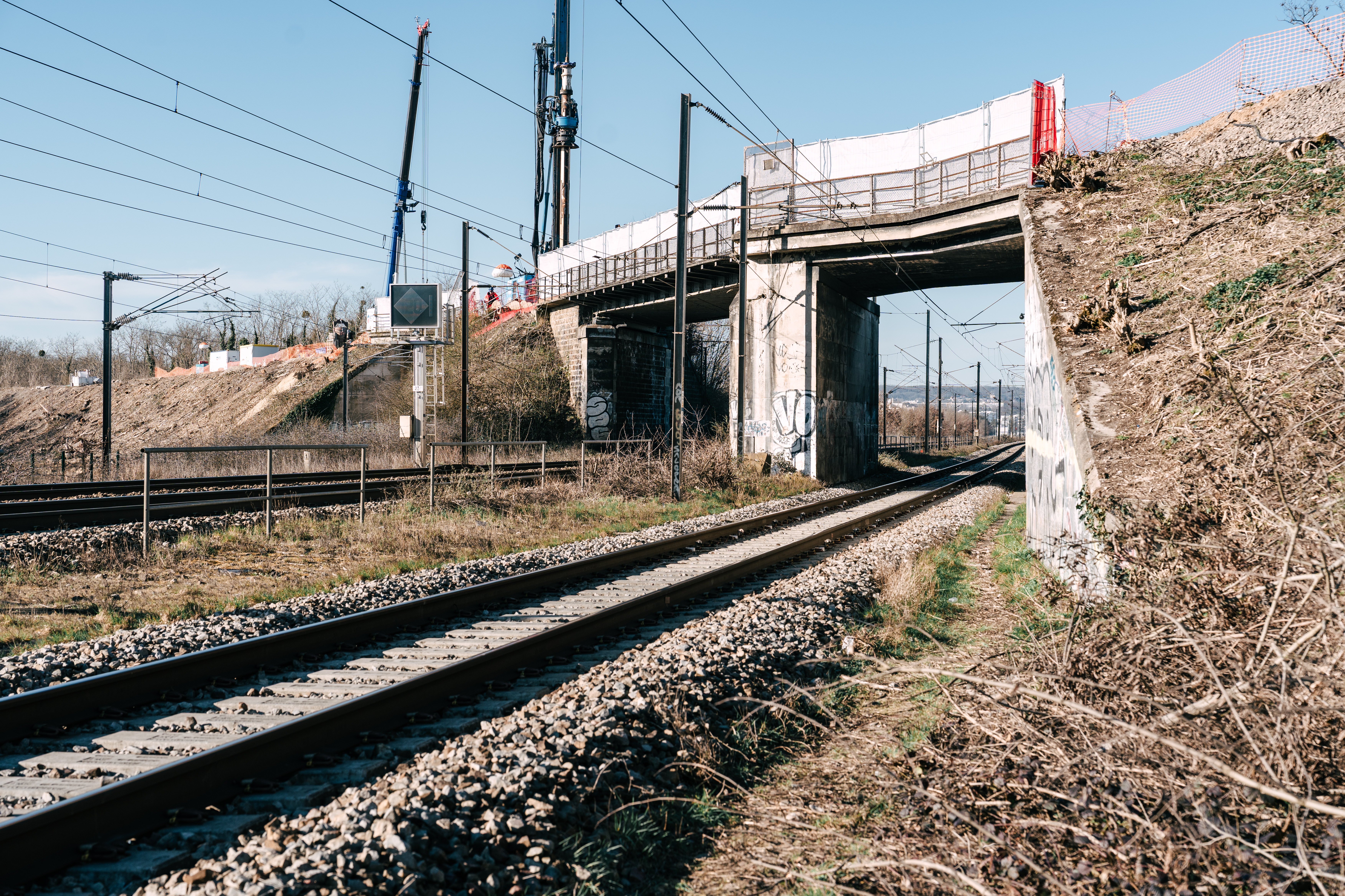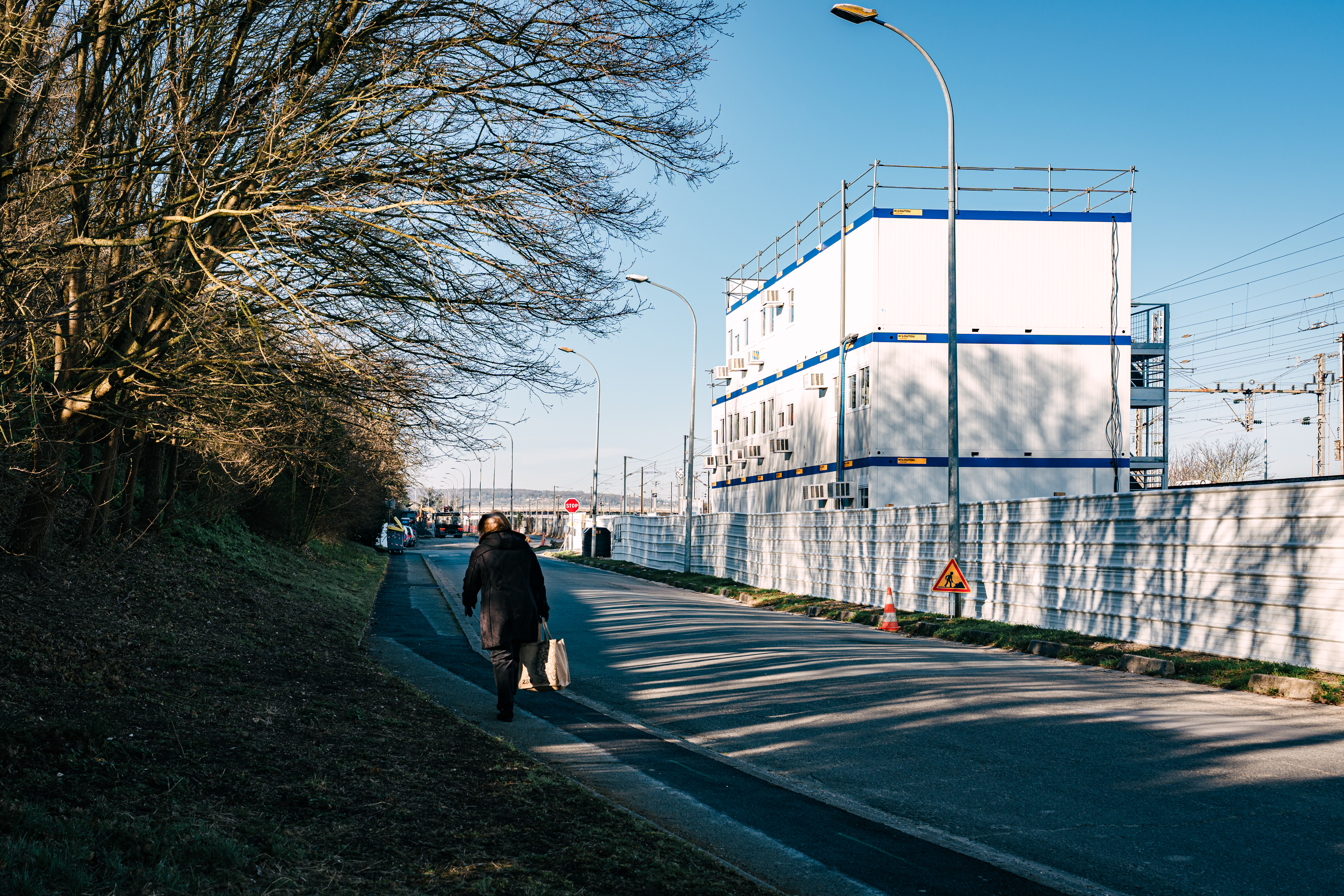 - Al final de la rue Saint-Sébastien, muy cerca de la rue Adrienne Bolland, se ha instalado un campamento base para orquestar el trabajo en esta zona. Actualmente se está construyendo un muro a lo largo del Clos Saint-Exupéry para soportar las vías férreas por donde discurre el RER A.