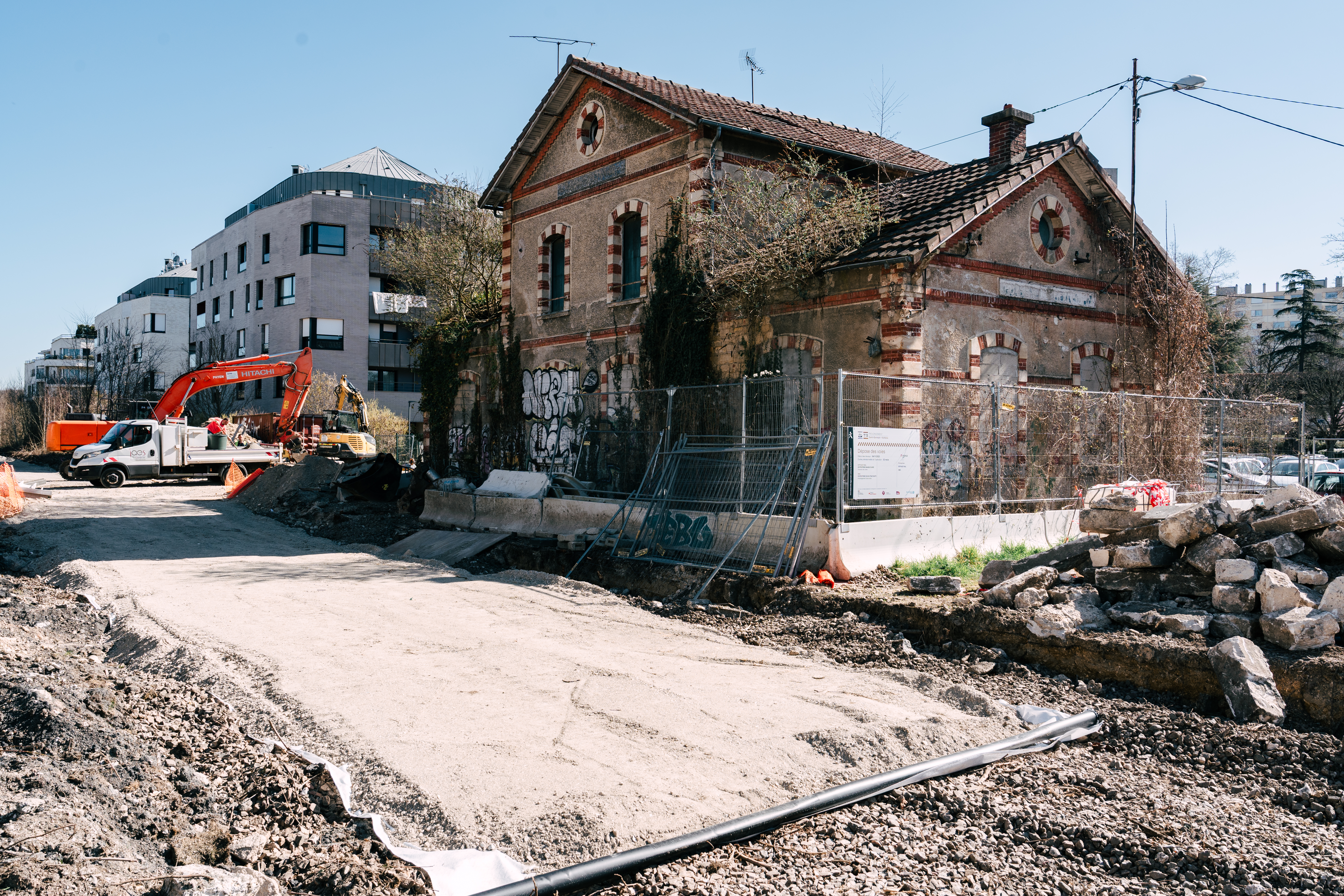 - A nivel de la antigua estación de la Grande Ceinture de Poissy, actualmente se está preparando el terreno para albergar un campamento base, con el fin de alojar a los equipos y facilitar el buen funcionamiento del recinto.