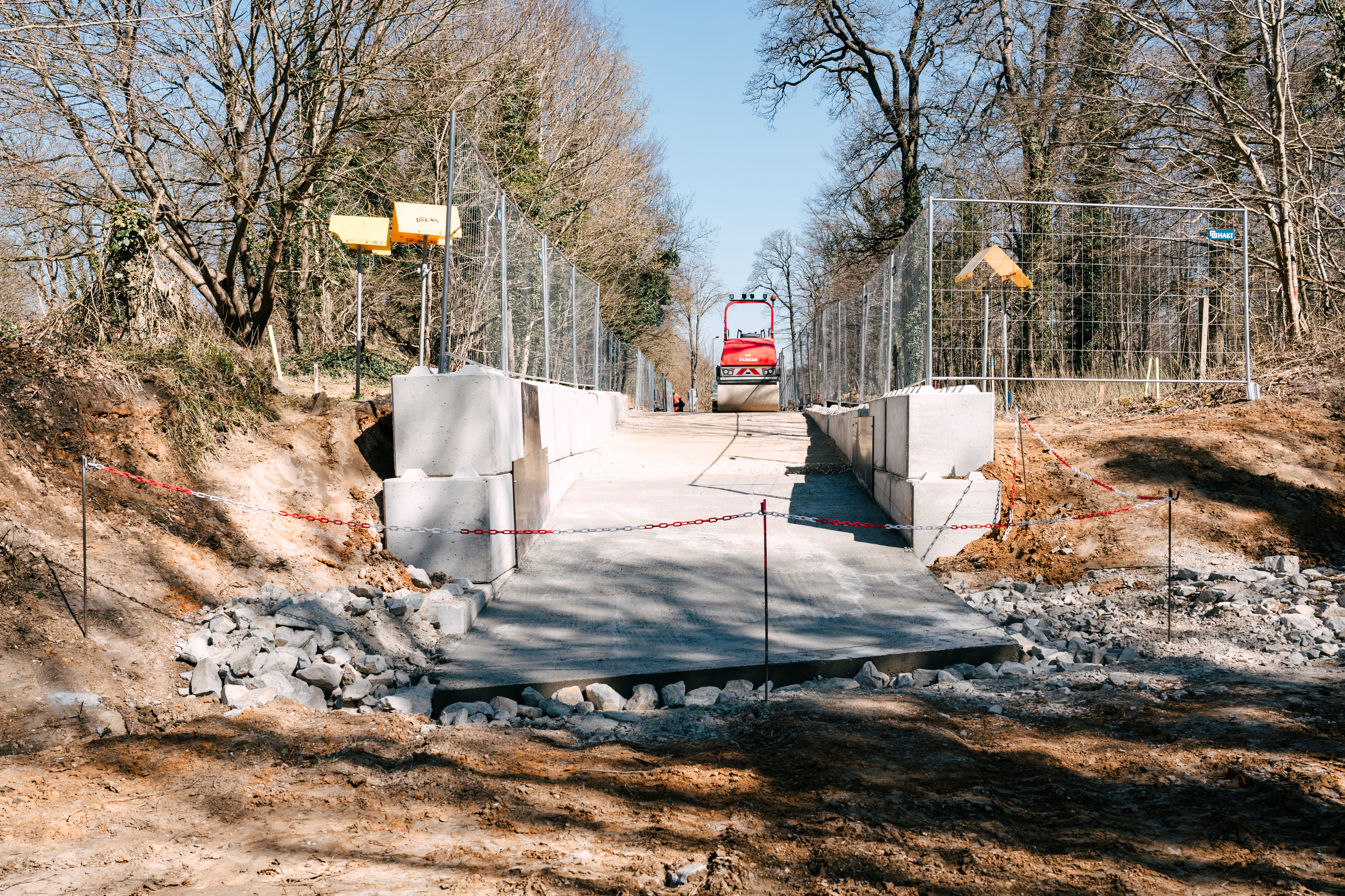 - En el bosque, entre Poissy y Achères, el Saut-de-Mouton (puente que cruza las vías del tren) está completamente remodelado para adaptarse al paso del futuro tranvía.