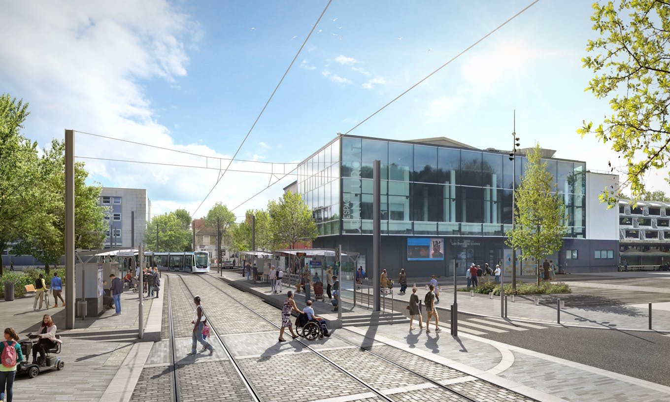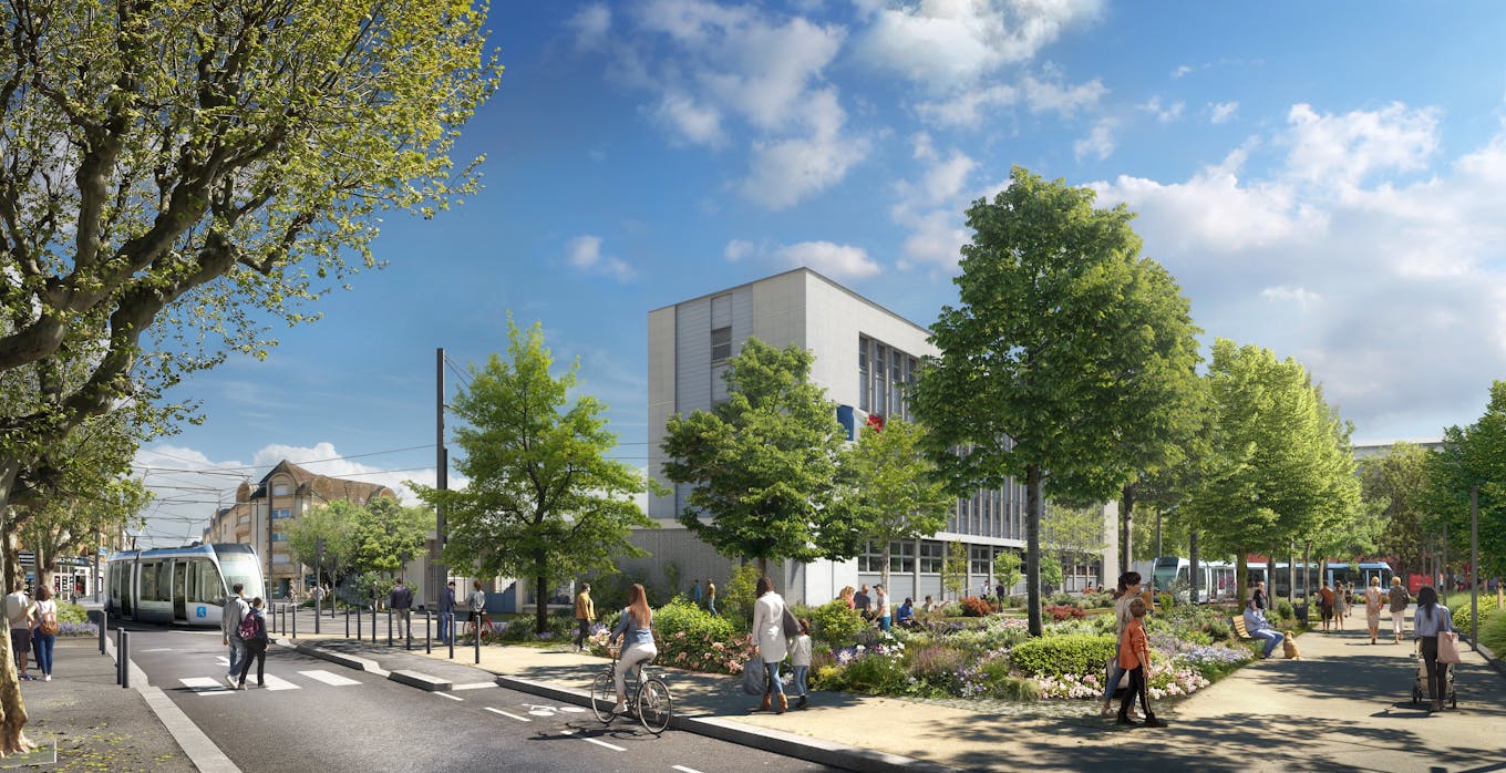 Completamente reurbanizado, la RN7 se transformará en un bulevar urbano plantado de árboles y vegetación, un eje pacífico donde cada movilidad encuentra su lugar.