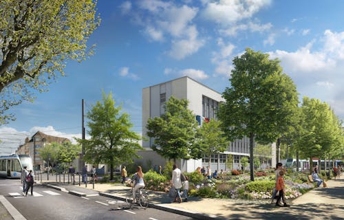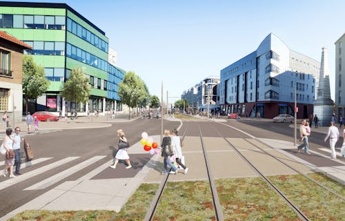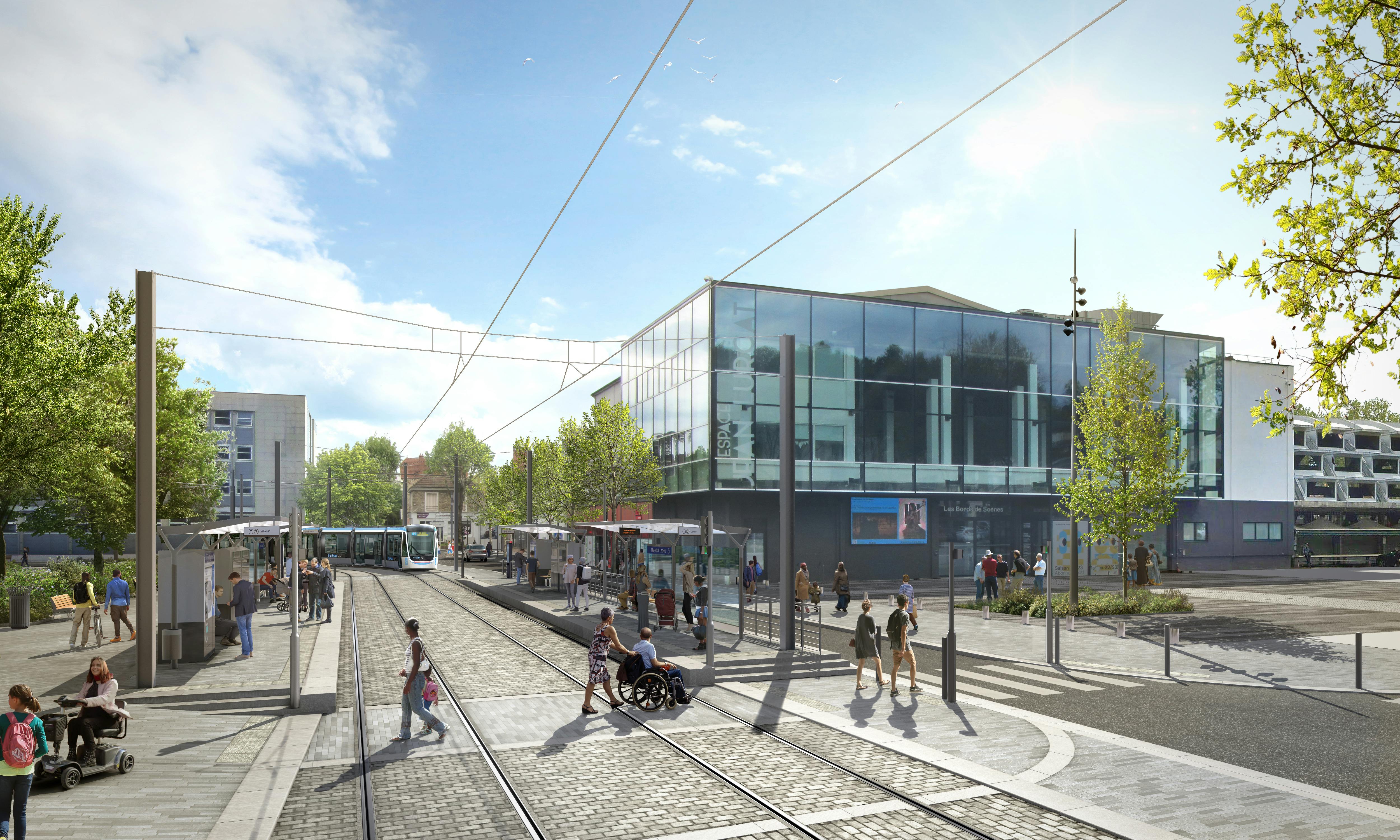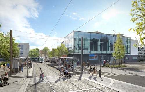 - Andén del tranvía en la estación Pyramide en Paray-Vieille-Poste (intenciones de desarrollo)
