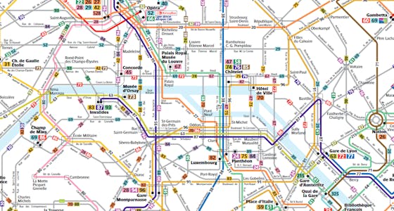 Sus líneas de autobús en París, en los suburbios interiores y en los suburbios exteriores.