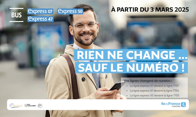 Con la rinumerazione delle linee Express, scopri il nuovo codice SMS Ticket nel Territorio Provinois a partire dal 03 marzo 2025. A bordo non c'è bisogno di cambiare. È possibile acquistare un biglietto dell'autobus con un semplice messaggio di testo....