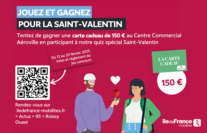 Dal 12 al 20 febbraio 2025, prova a vincere una carta regalo da 150€ presso il Centro Commerciale Aéroville partecipando al nostro speciale quiz di San Valentino. È un'ottima occasione per celebrare l'amore e farsi un bel regalo!