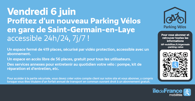 Da venerdì 6 giugno 2025, il parcheggio per biciclette della stazione di Saint-Germain-en-Laye riapre i battenti dopo 4 mesi di lavori. Ve ne parliamo ora!
