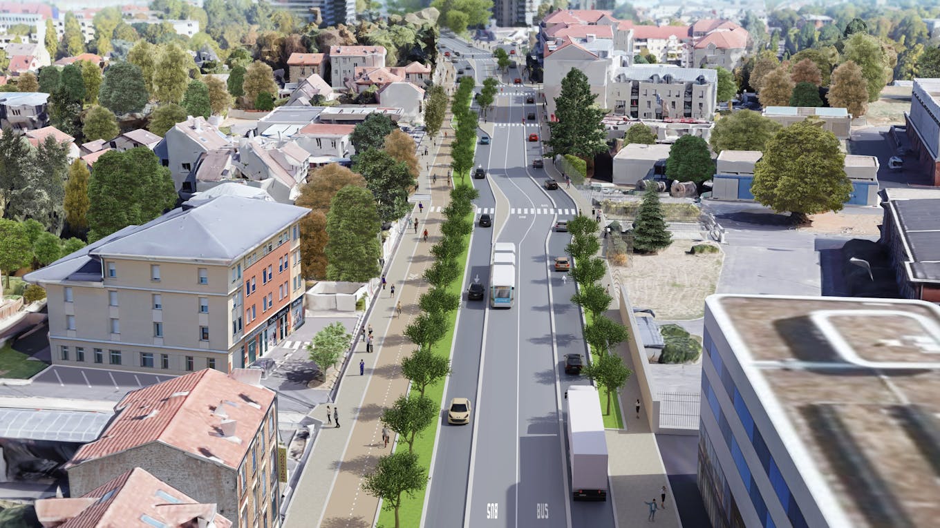 A noter : ces vues d’intention ont vocation à donner un premier aperçu des aménagements proposés à ce stade des études. Certains aspects sont donc susceptibles d’évoluer dans la suite des études, ou ne sont pas figurés en l’état, tels que les feux de signalisation routière.