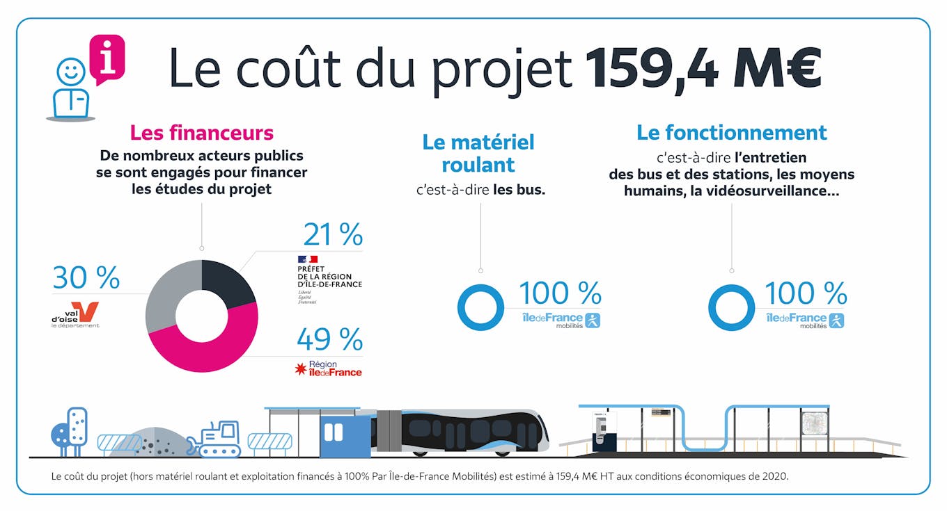 Le matériel roulant (c’est-à-dire les bus) sera financé à 100% par Île-de-France Mobilités.