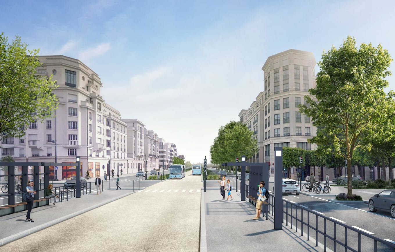 Cette séquence prévoit le réaménagement des carrefours giratoires en carrefours en croix (K0, H1 et G) pour faciliter la traversée du Bus et garantir une meilleure lisibilité pour le cheminement des modes actifs, tout en limitant les impacts sur les automobiles.