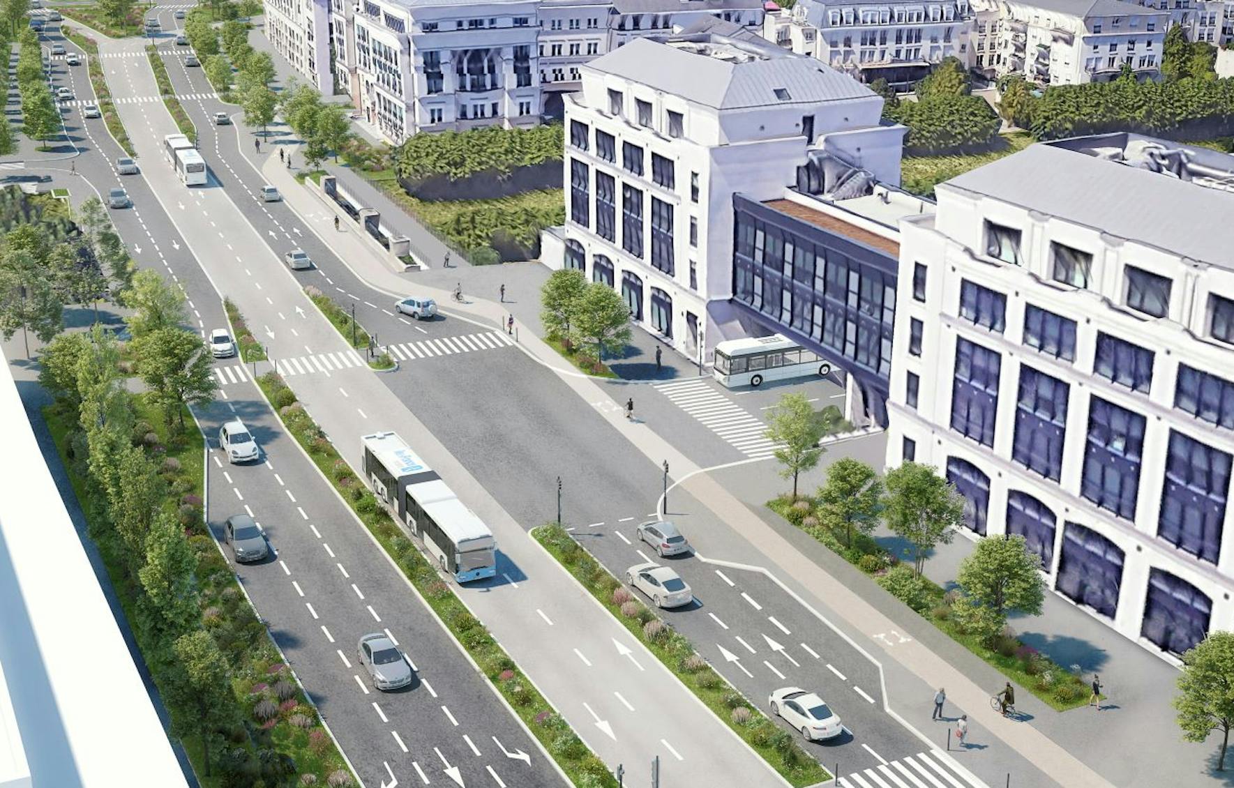 - Les voies continues dédiées aux bus permettront de s’affranchir des aléas de la circulation. Leur position au centre de la voirie sur la majorité du tracé (insertion axiale) permettra de maintenir les accès riverains, les accès aux voiries adjacentes et le stationnement. La capacité routière des voiries existantes sera aussi maintenue dans le cadre du projet.