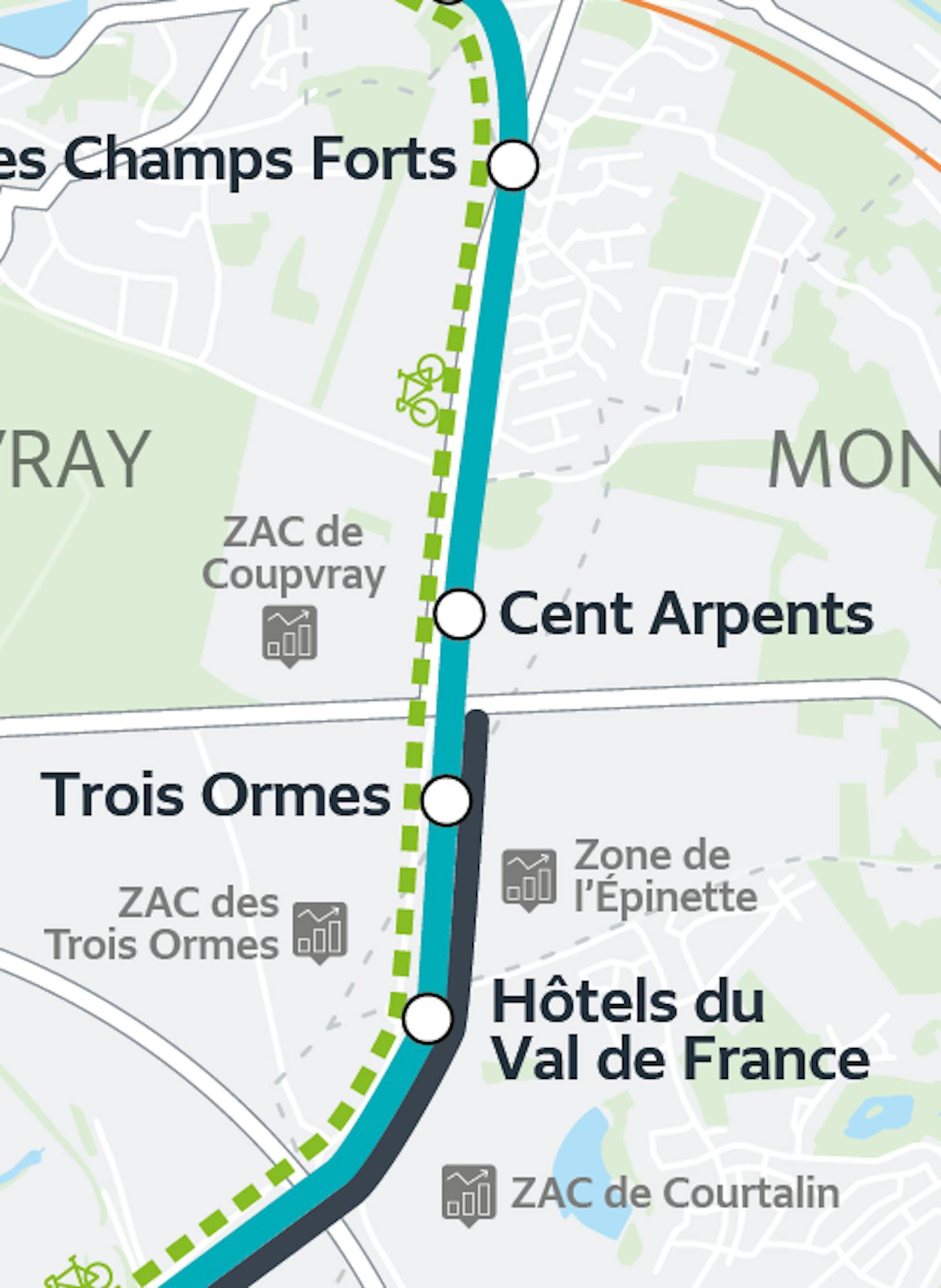 - Des aménagements seront conçus pour faciliter les modes doux. Des itinéraires cyclables continus seront réalisés tout au long du tracé.