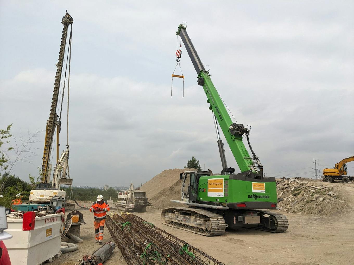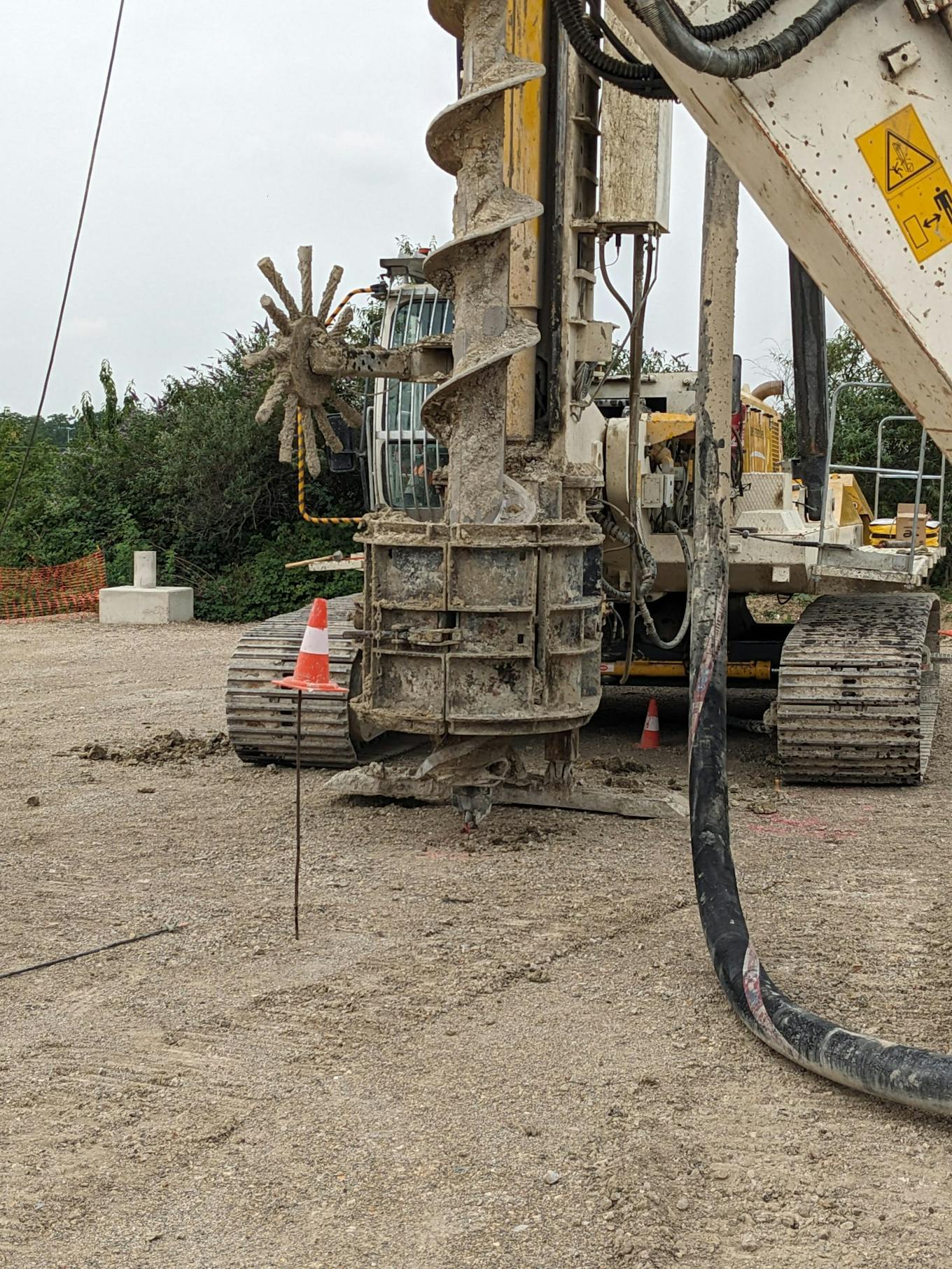 Les emplacements de chaque pylône sont d’abord terrassés, débroussaillés et nivelés.Ensuite, viennent les fondations : forage et bétonnage de pieux, selon la technique de la « tarière creuse », sorte de vis sans fin.La livraison des pylônes aura lieu d’ici la fin de l’année et leur arrivée marquera une grande étape d’avancement du chantier.