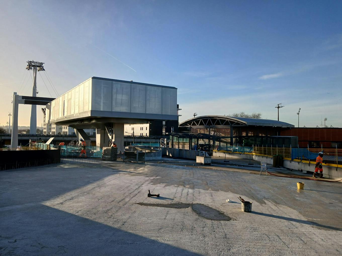 L'ouverture de la façade vitrée de la station de métro, désormais réalisée, permettra un accès direct sur la passerelle de 80 mètres de long en cours de construction. Un auvent destiné à protéger les voyageurs des intempéries est déjà en place. Le tablier de la passerelle est ferraillé et bétonné. Les travaux vont continuer jusqu'à l'été 2025 ; ils consisteront notamment à conforter les soutènements et à réaliser l'étanchéité ainsi que l'électrification.