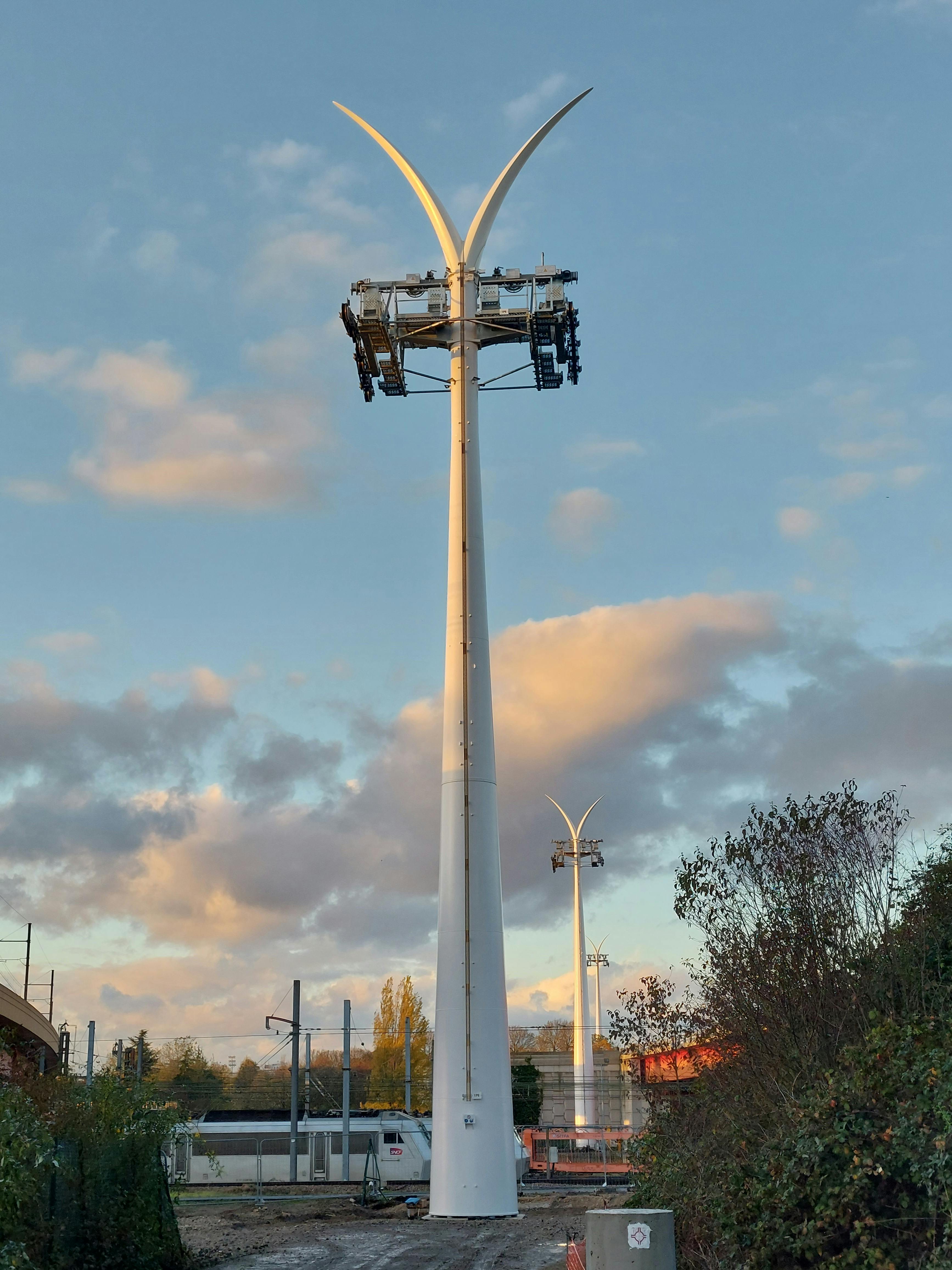 Le 1er téléphérique d’Île-de-France prend forme sur le territoire. La succession de pylônes permet d’ores et déjà d’imaginer le tracé de la ligne et de se projeter dans vos futurs trajets aériens.