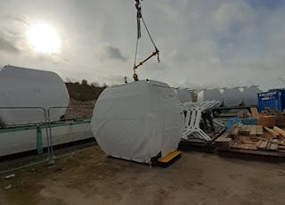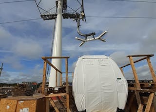 Accrochées sur le câble à leur arrivée, elles sont directement rentrées et sécurisées dans leur garage en attendant les premiers tests de circulation puis leurs premiers voyageurs. 18 cabines flambant neuves de votre téléphérique y sont déjà !