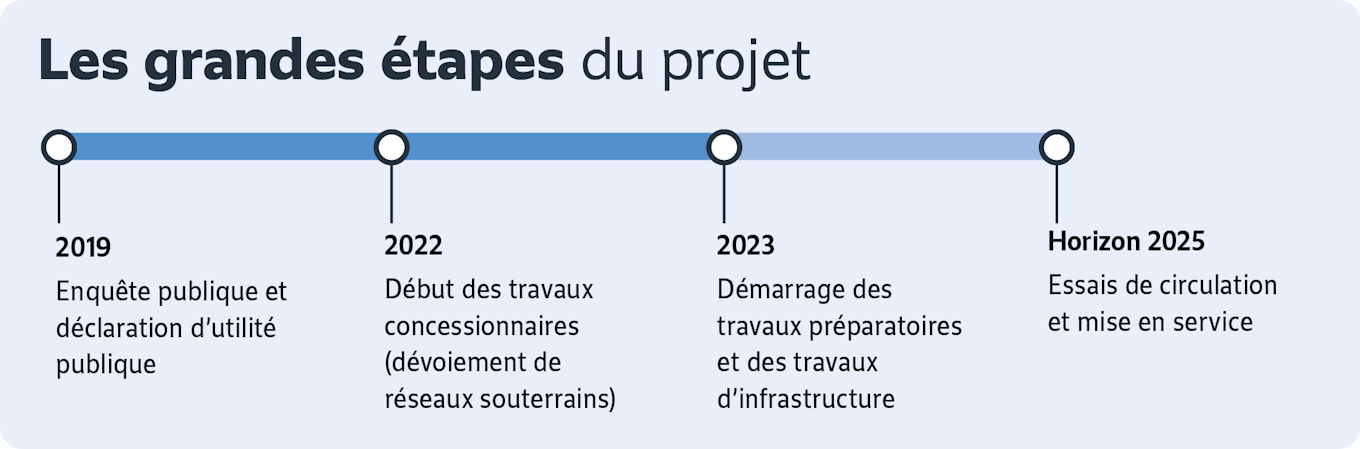 - 2022 : début des travaux concessionnaires (dévoiement des réseaux souterrains)