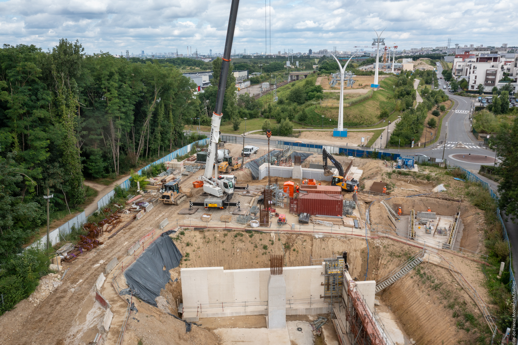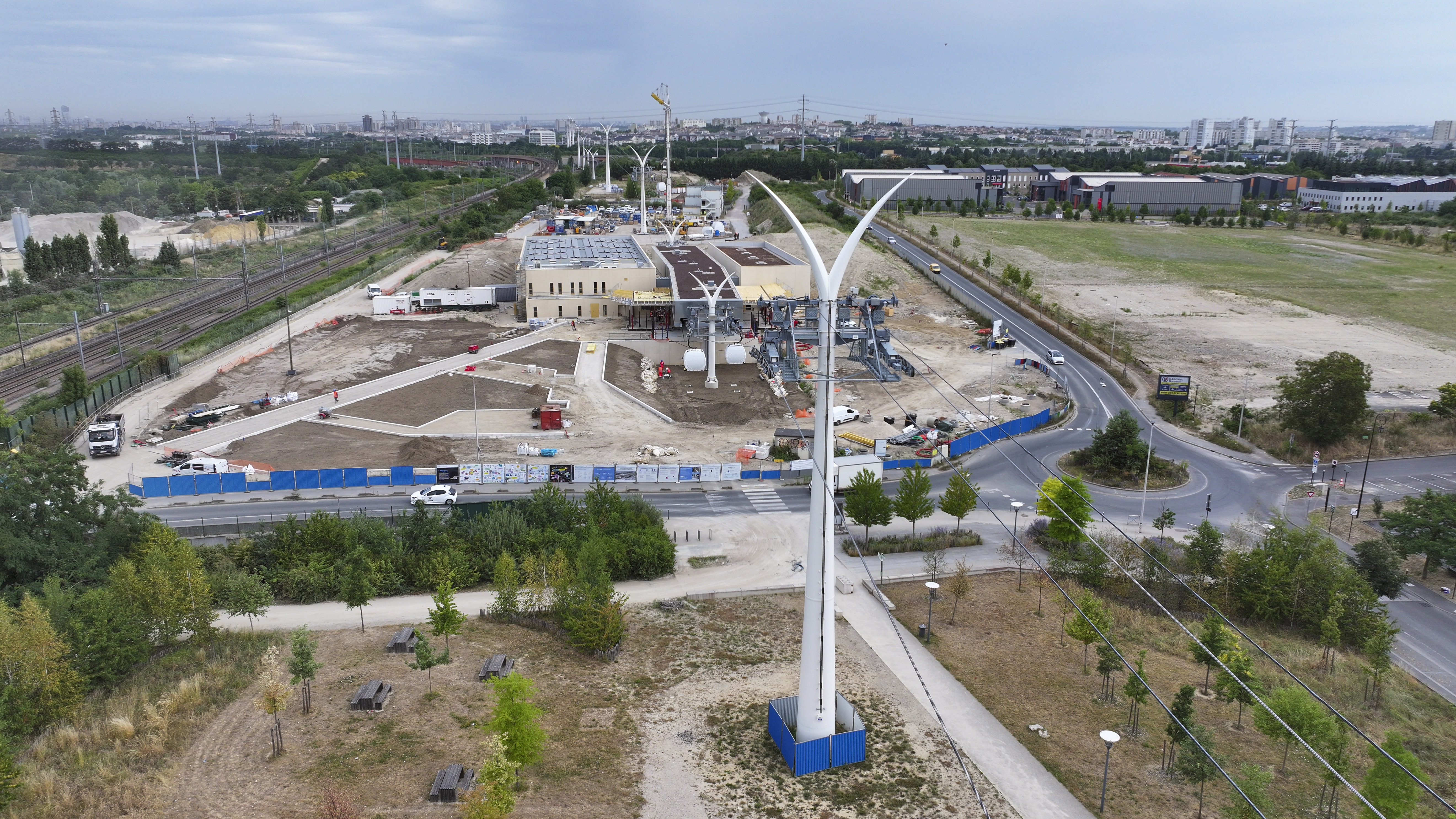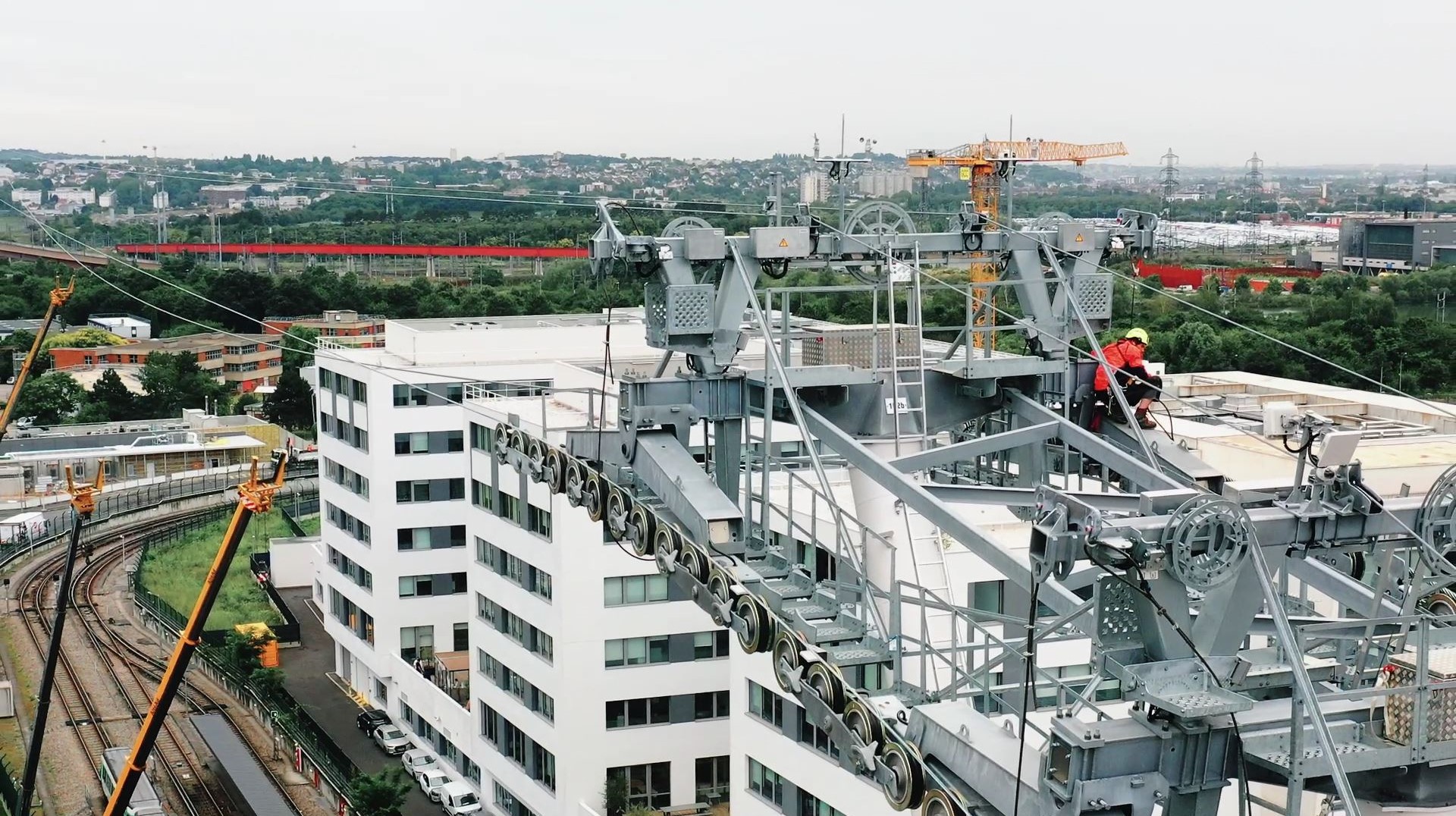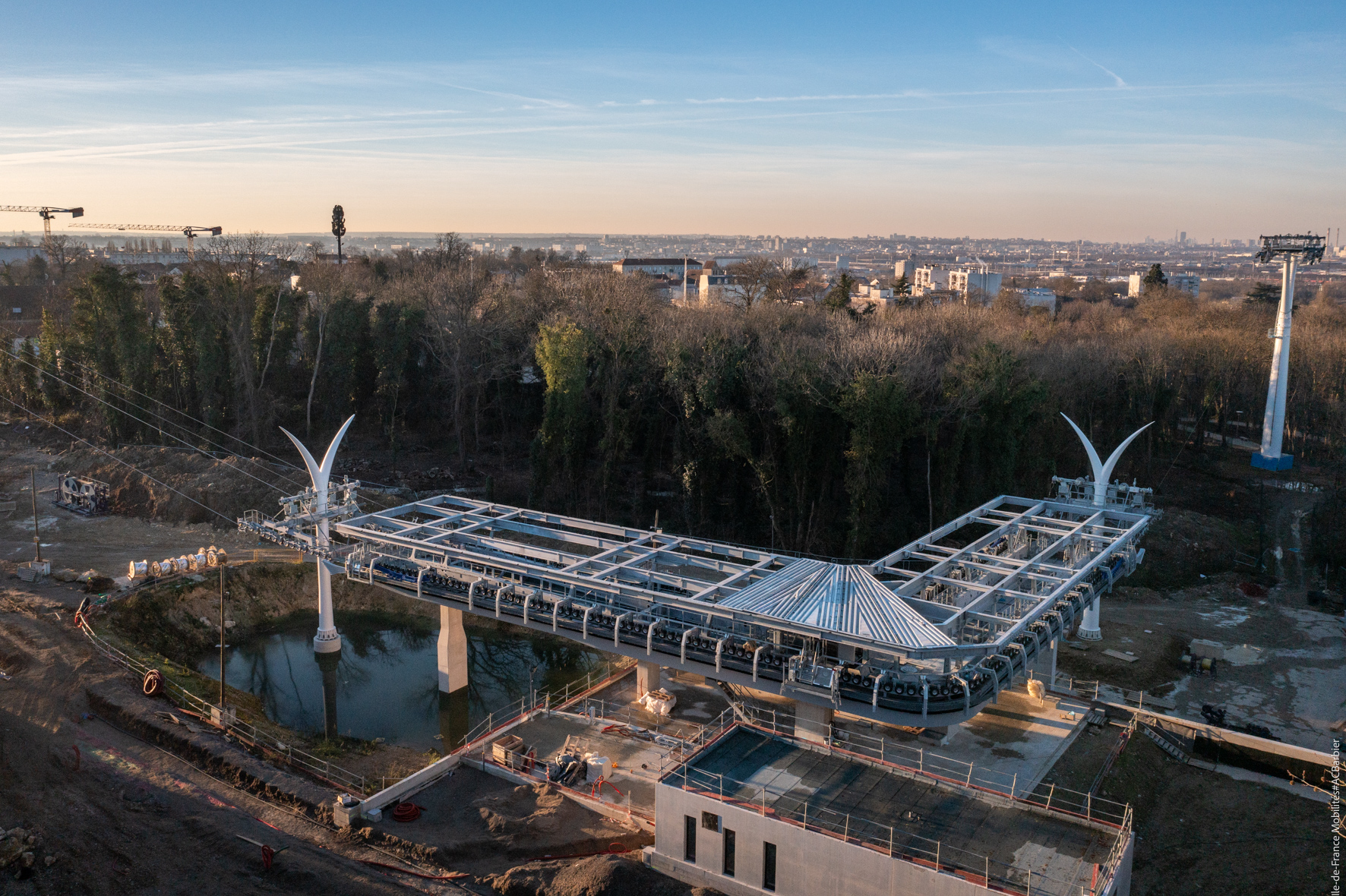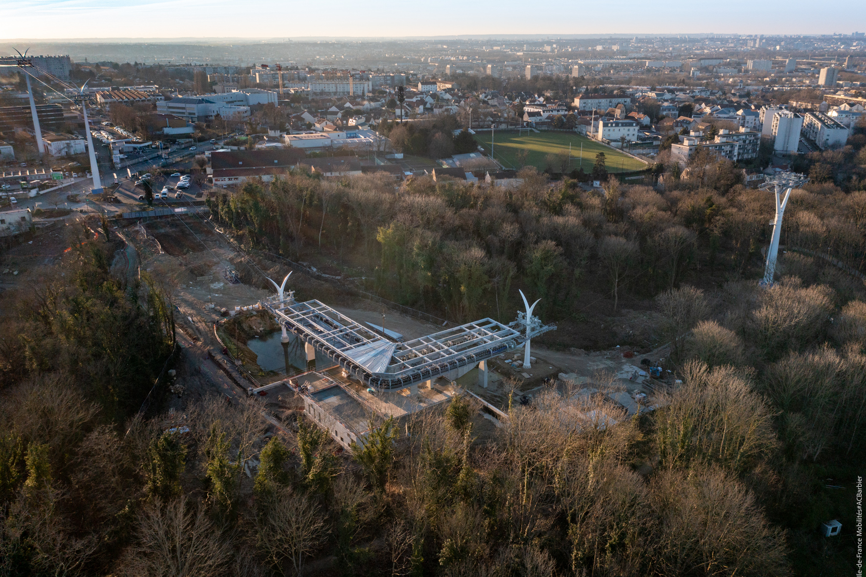 - © Île-de-France Mobilités | Levage d'un pylône, entre le parc Saint-Martin et la station La Végétale - avril 2024