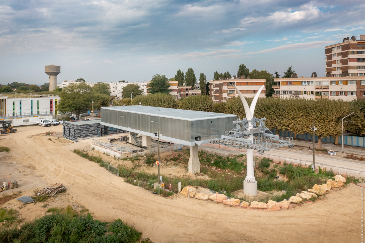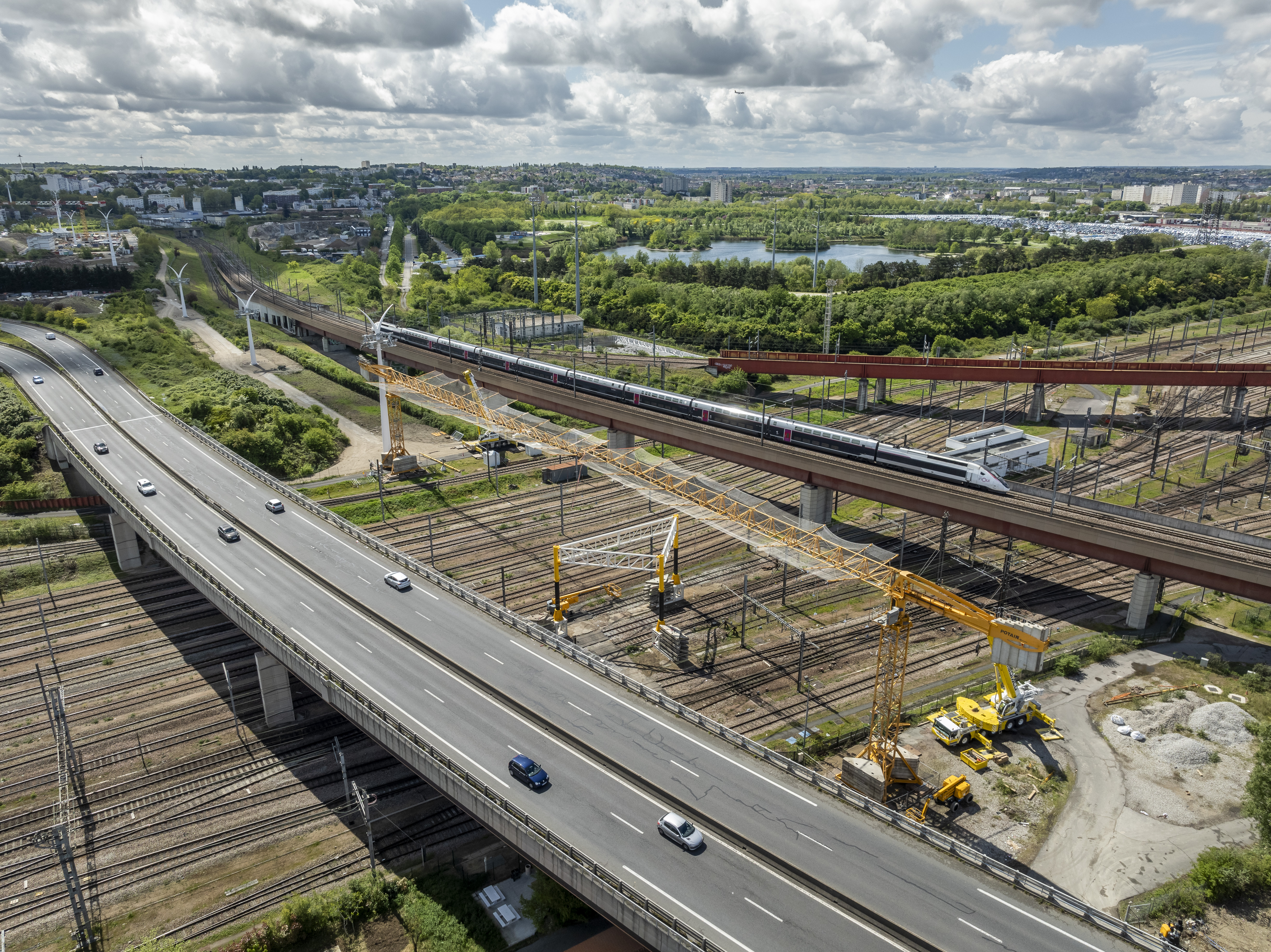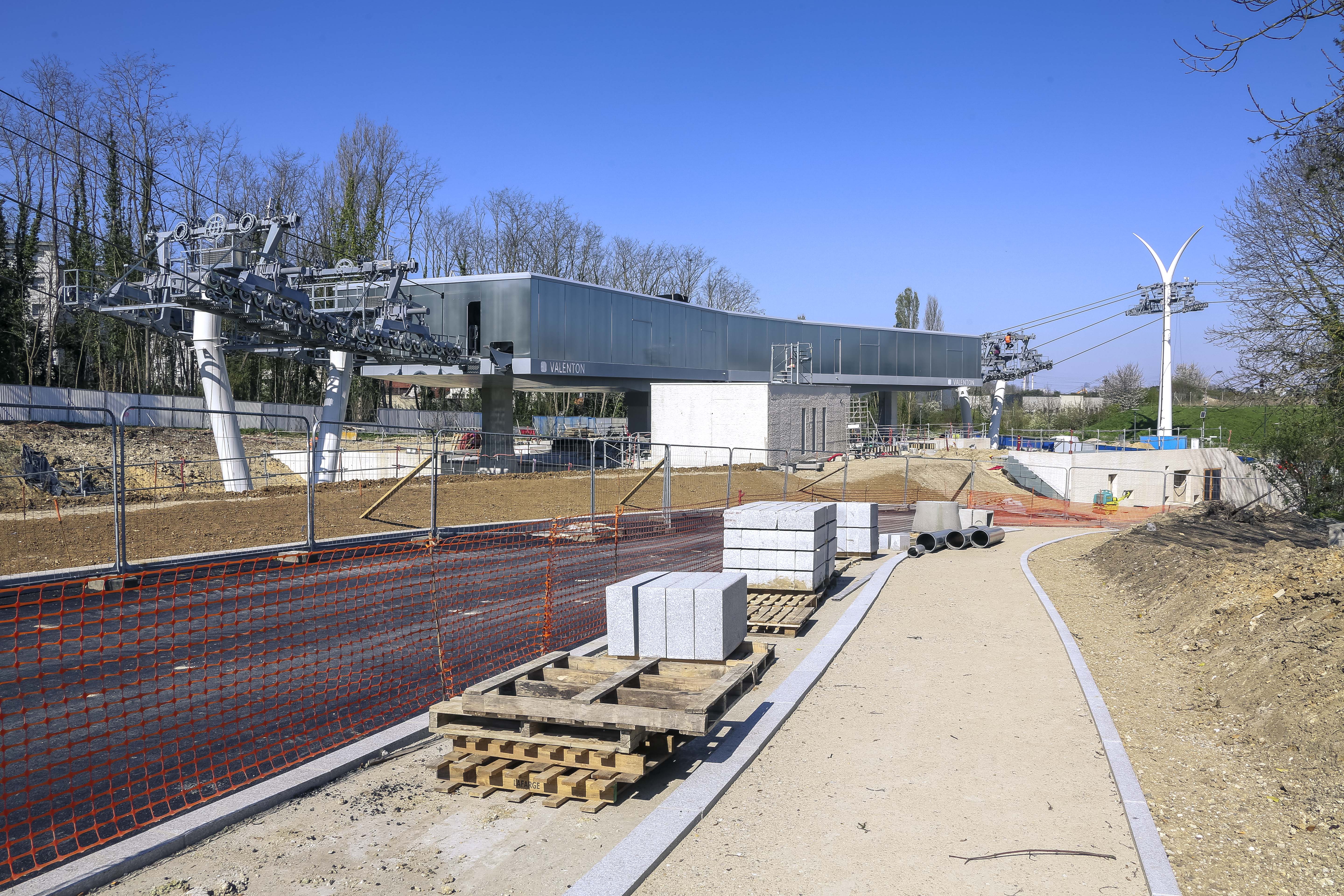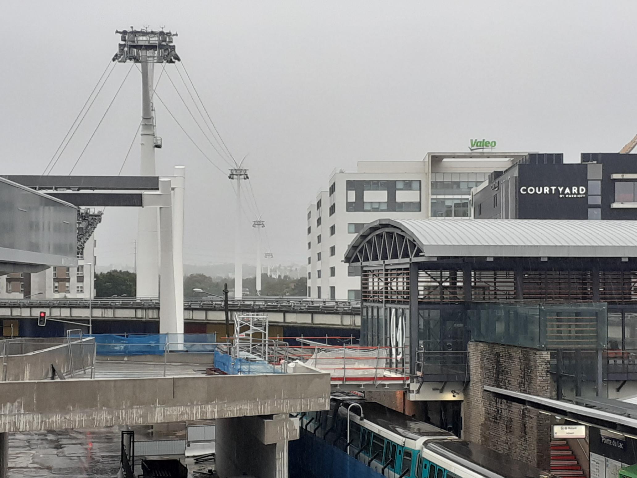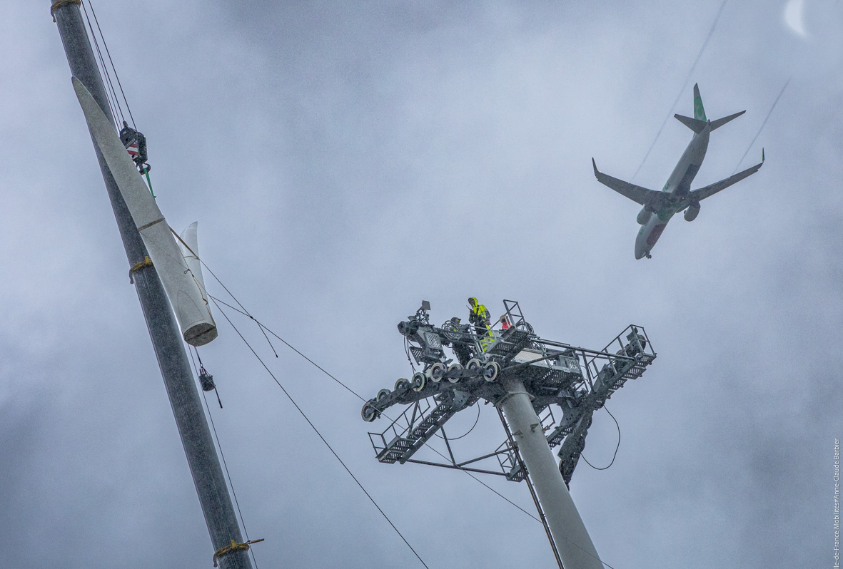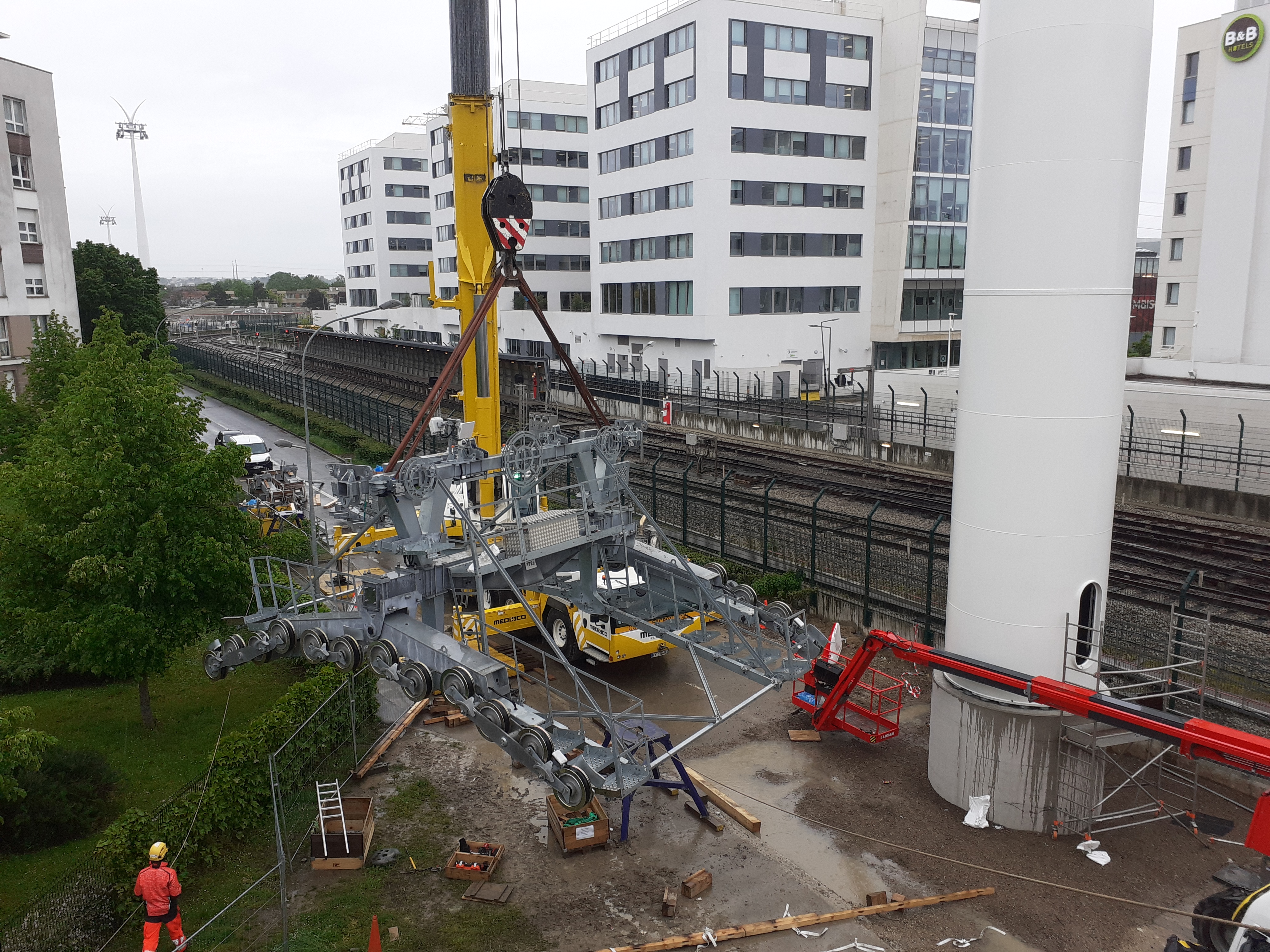 - © Île-de-France Mobilités | Levage d'un pylône, entre le parc Saint-Martin et la station La Végétale - avril 2024