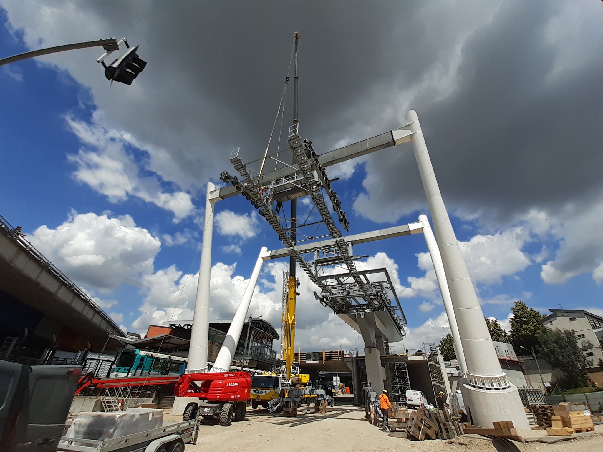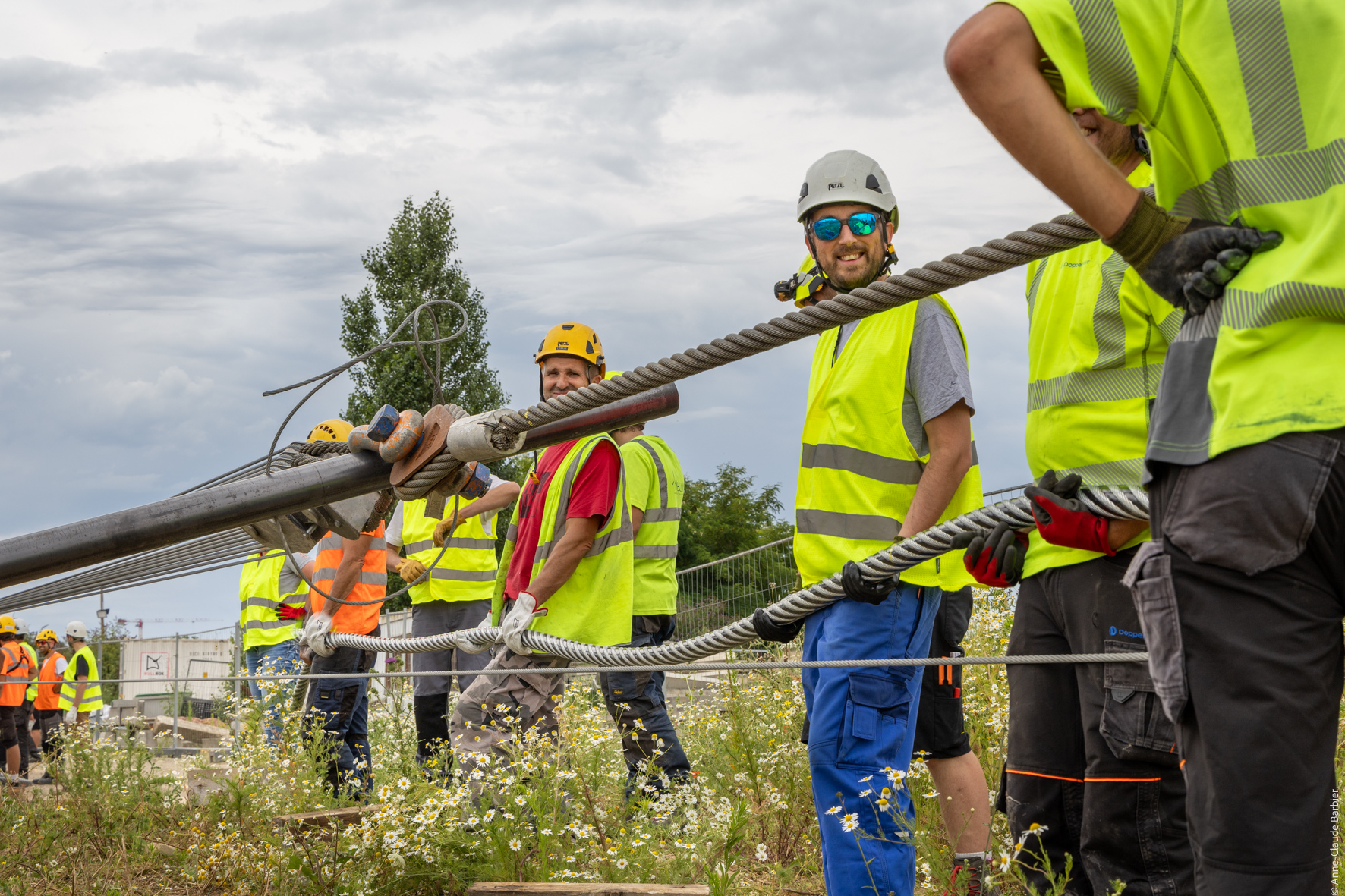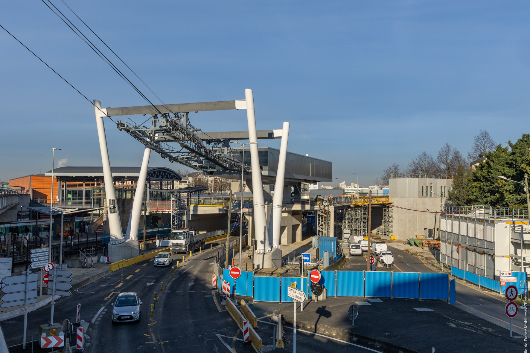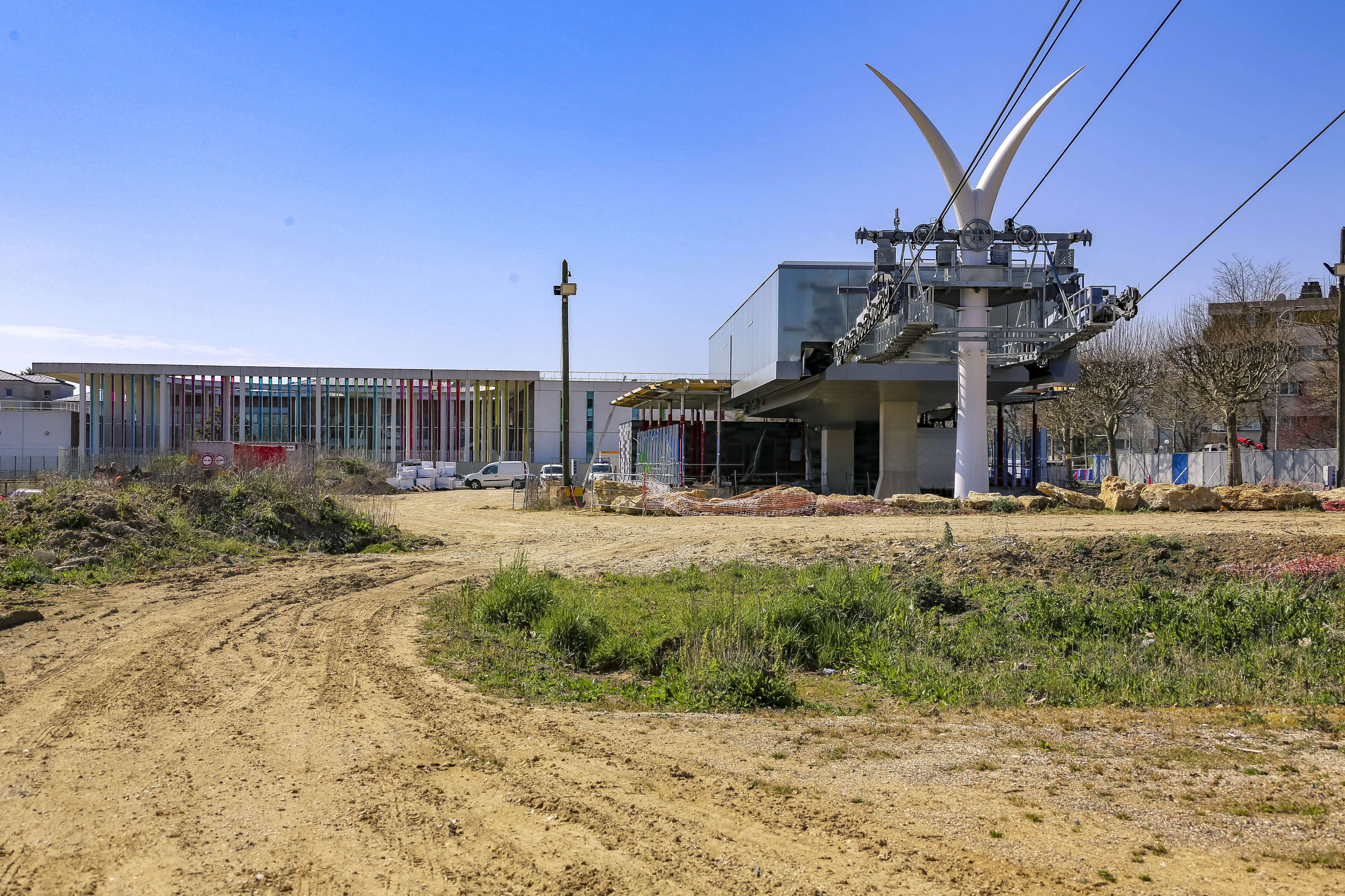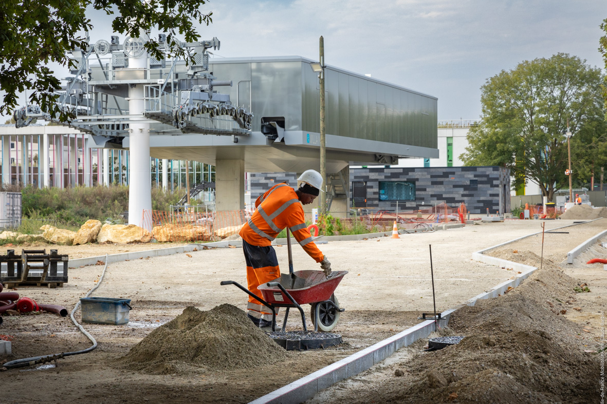 - © Île-de-France Mobilités | Levage d'un pylône, entre le parc Saint-Martin et la station La Végétale - avril 2024