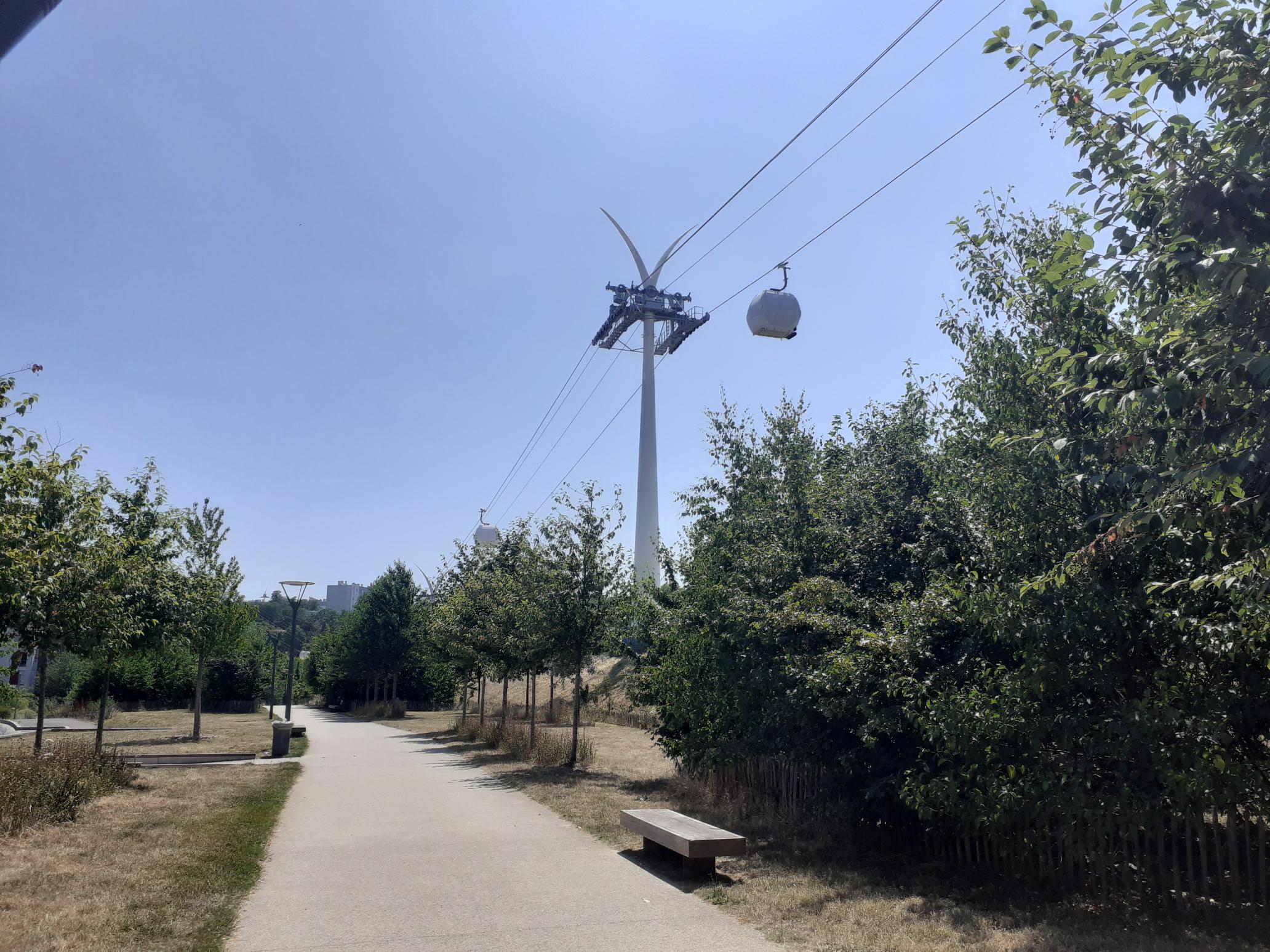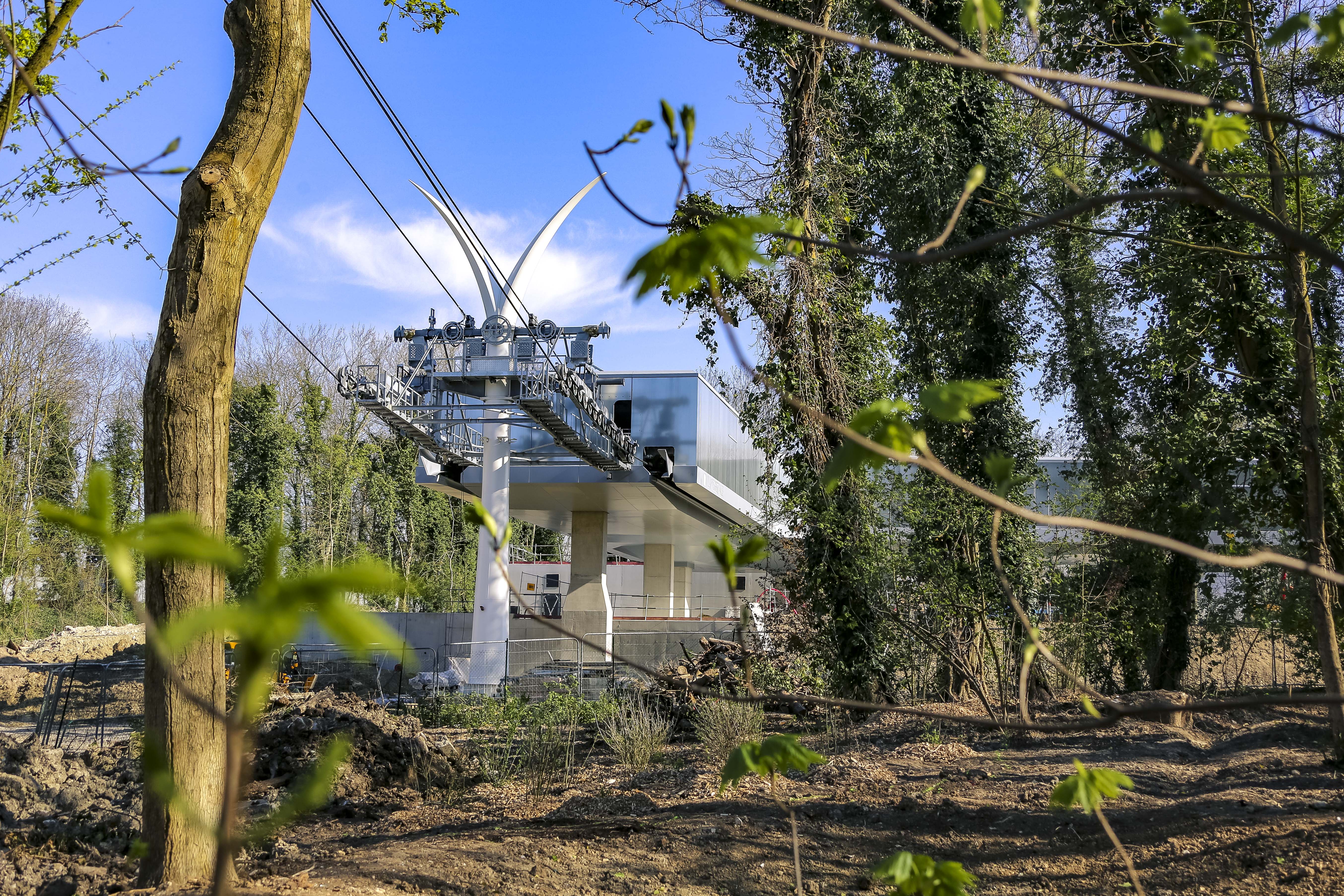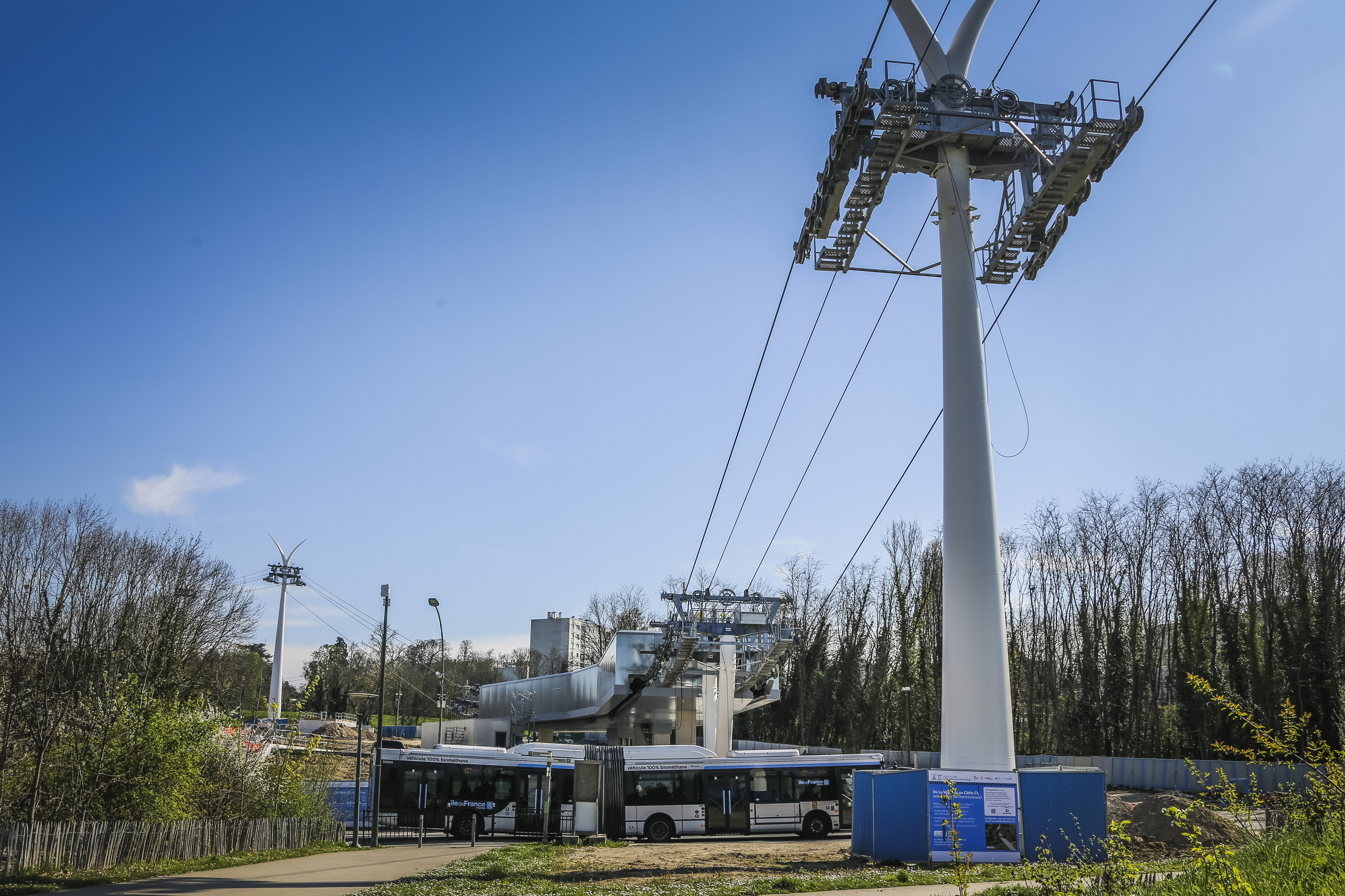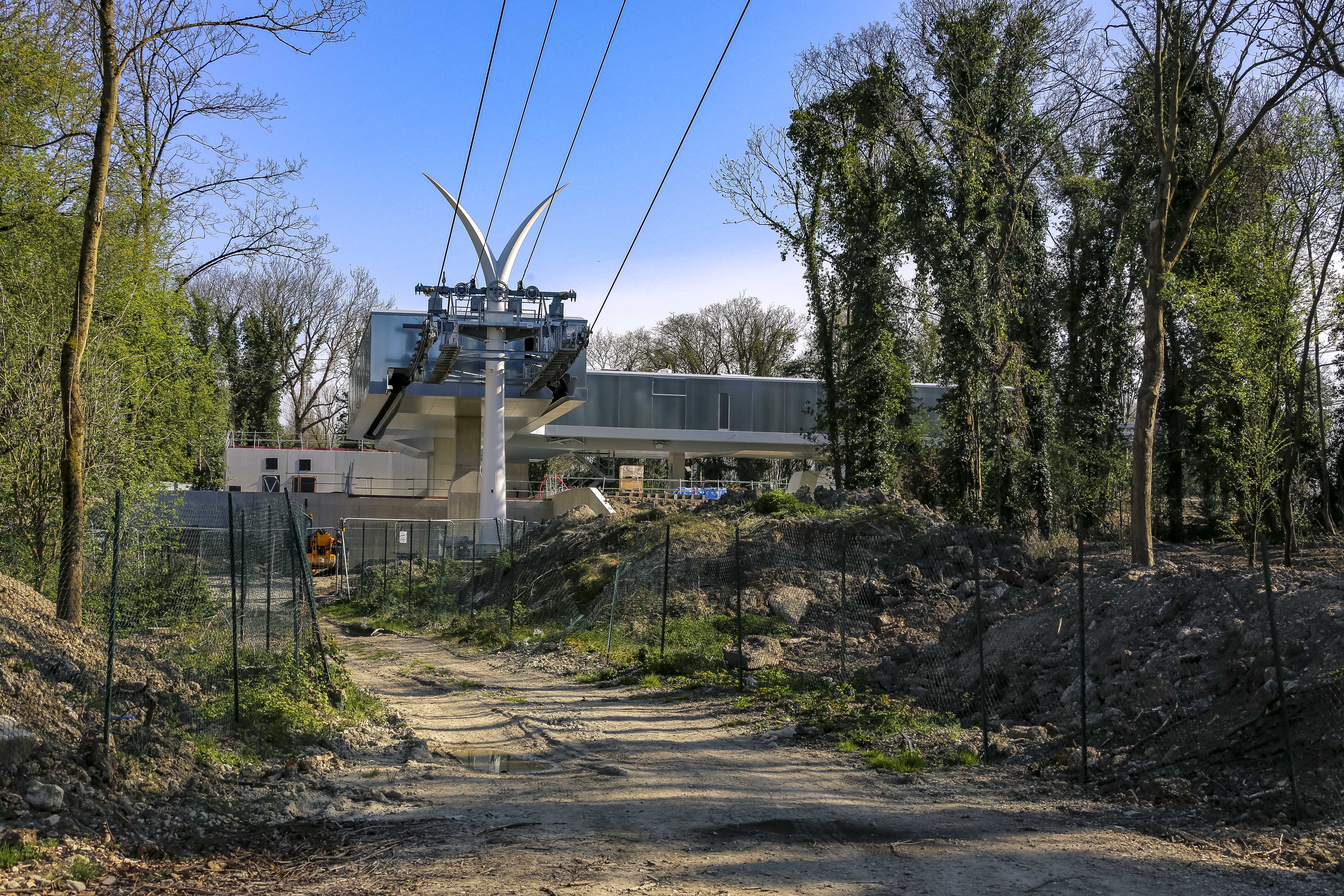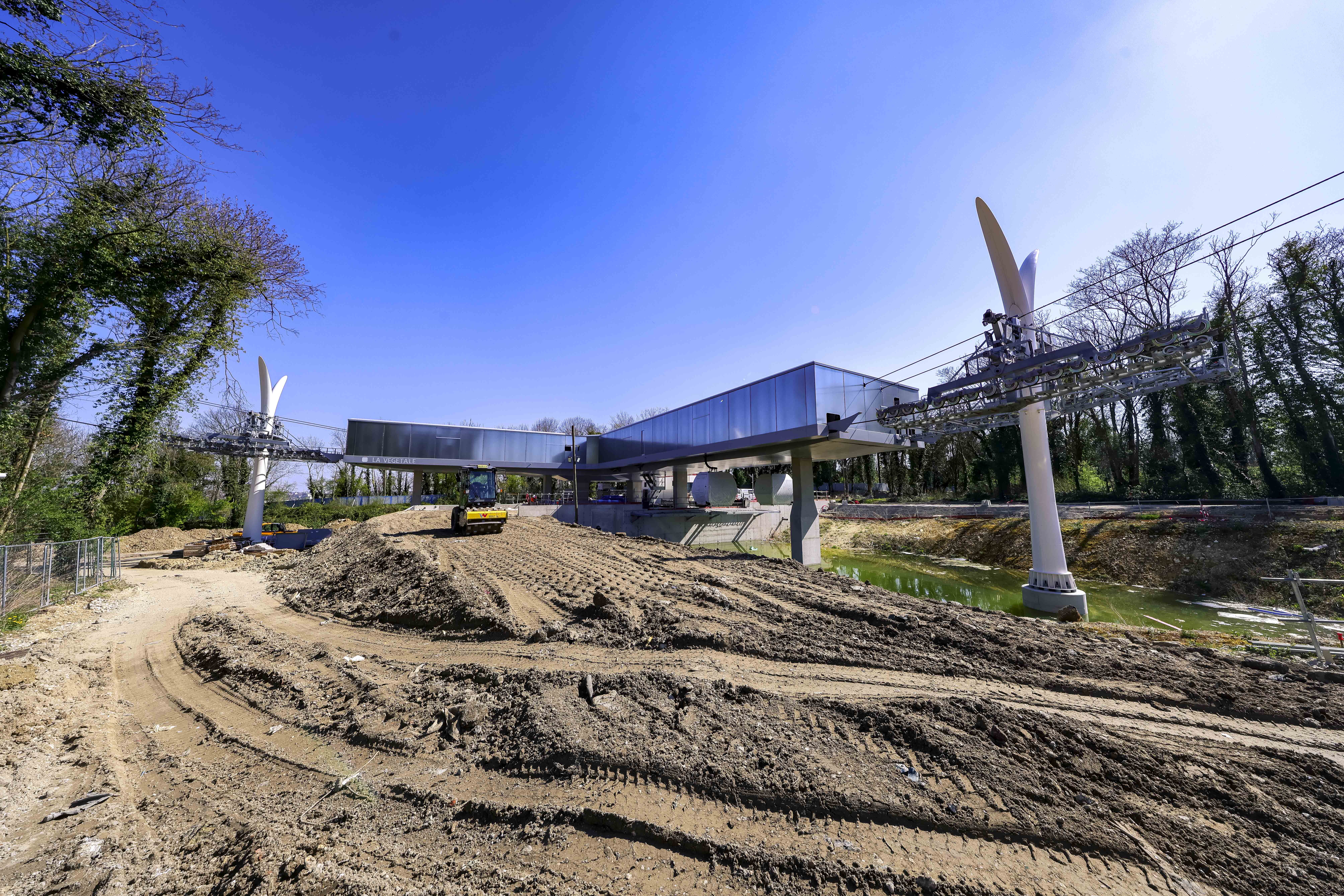 - © Île-de-France Mobilités | Levage d'un pylône, entre le parc Saint-Martin et la station La Végétale - avril 2024