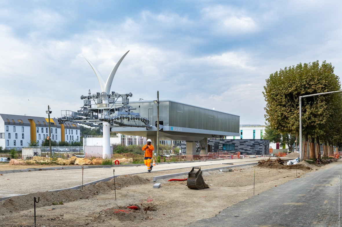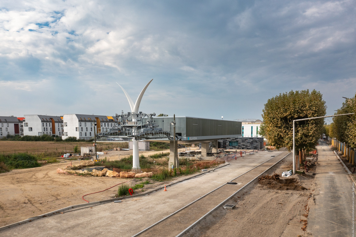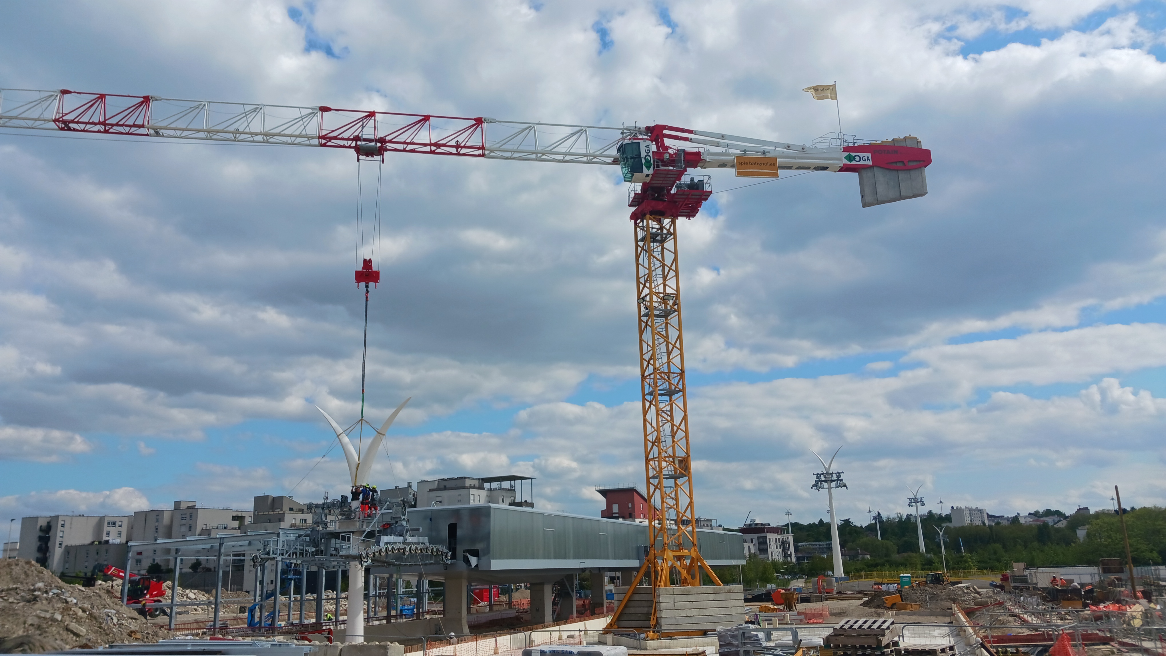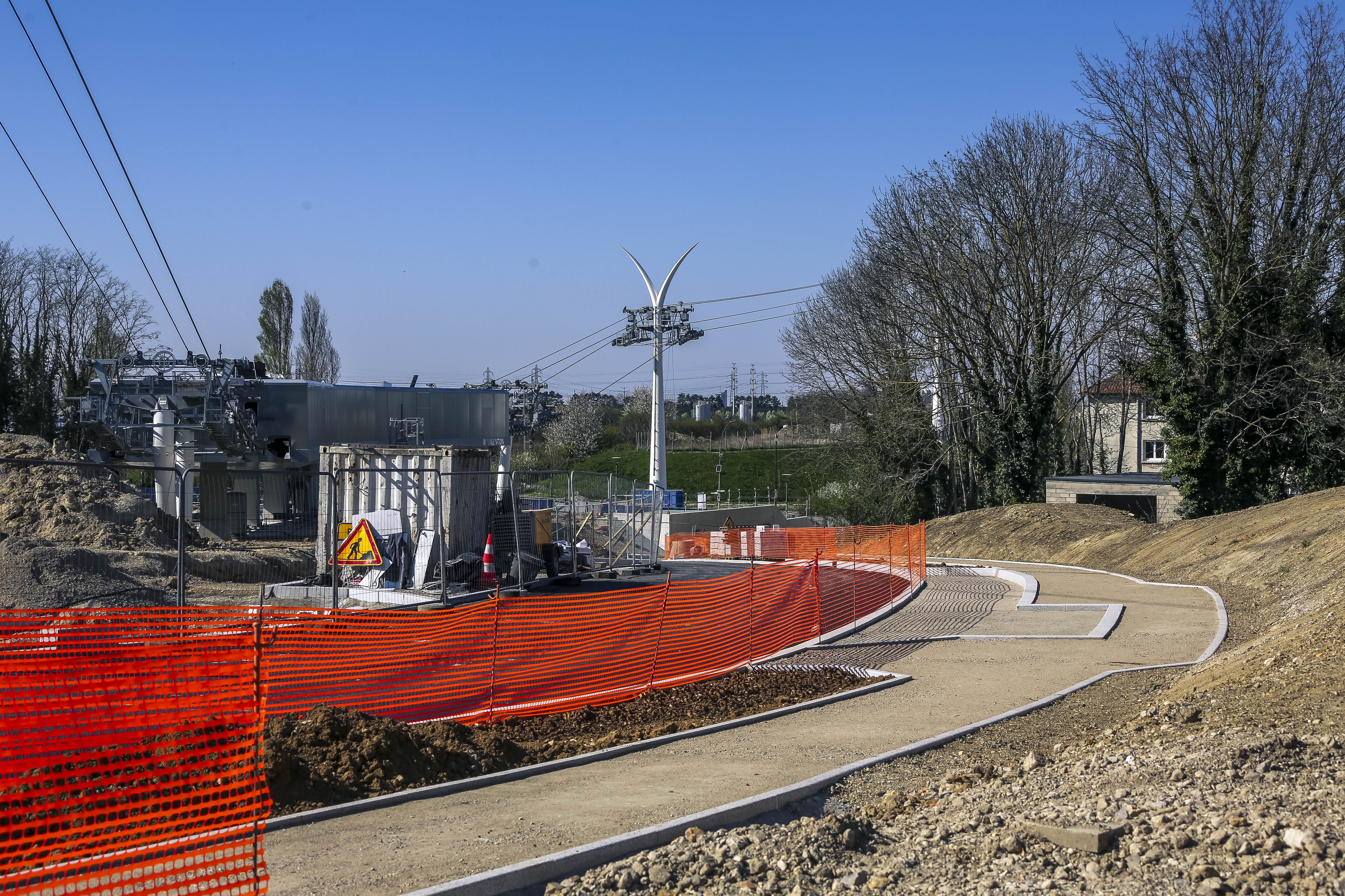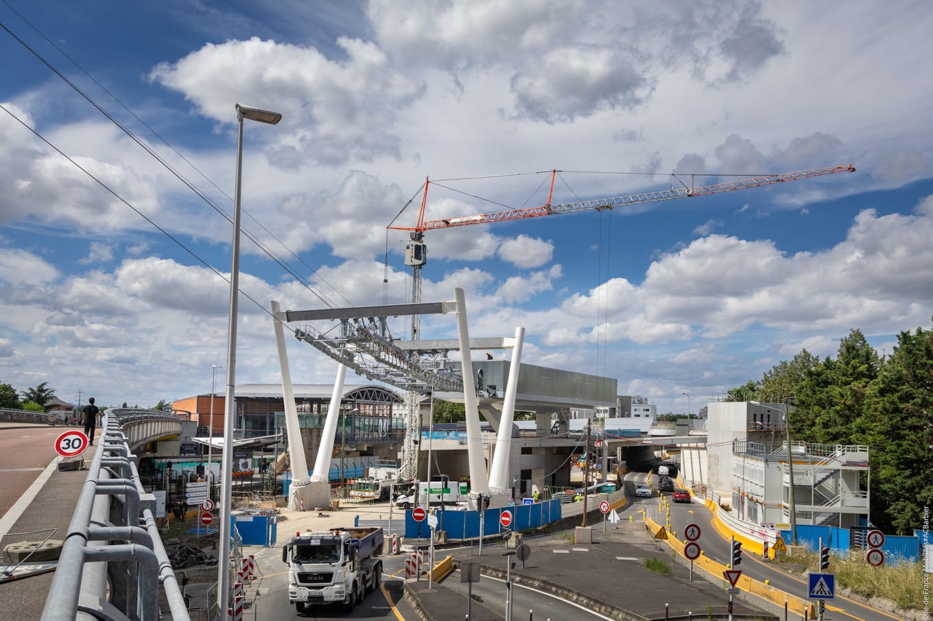 - © Île-de-France Mobilités | Levage d'un pylône aux abords de la station Pointe du Lac - mai 2024