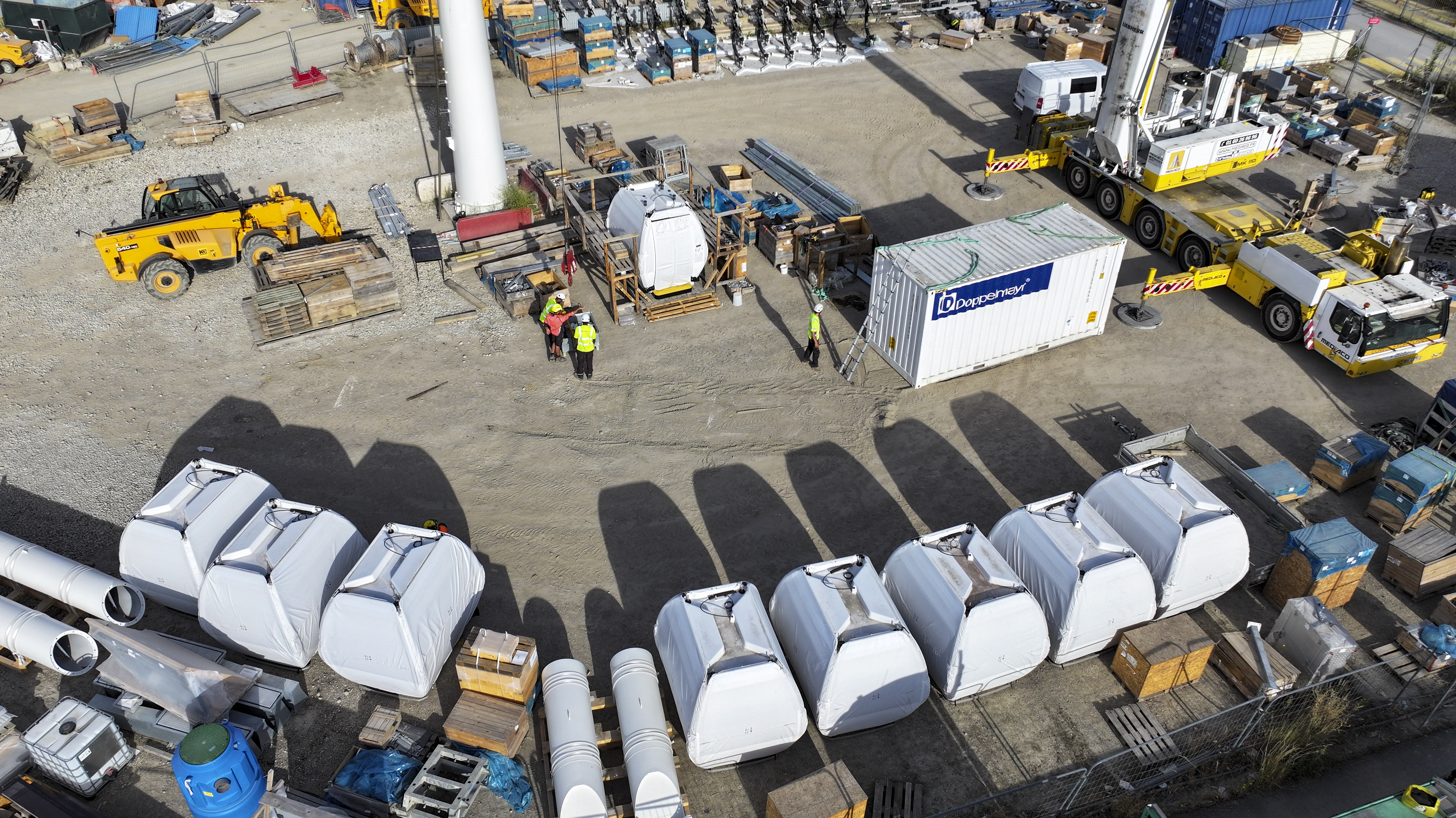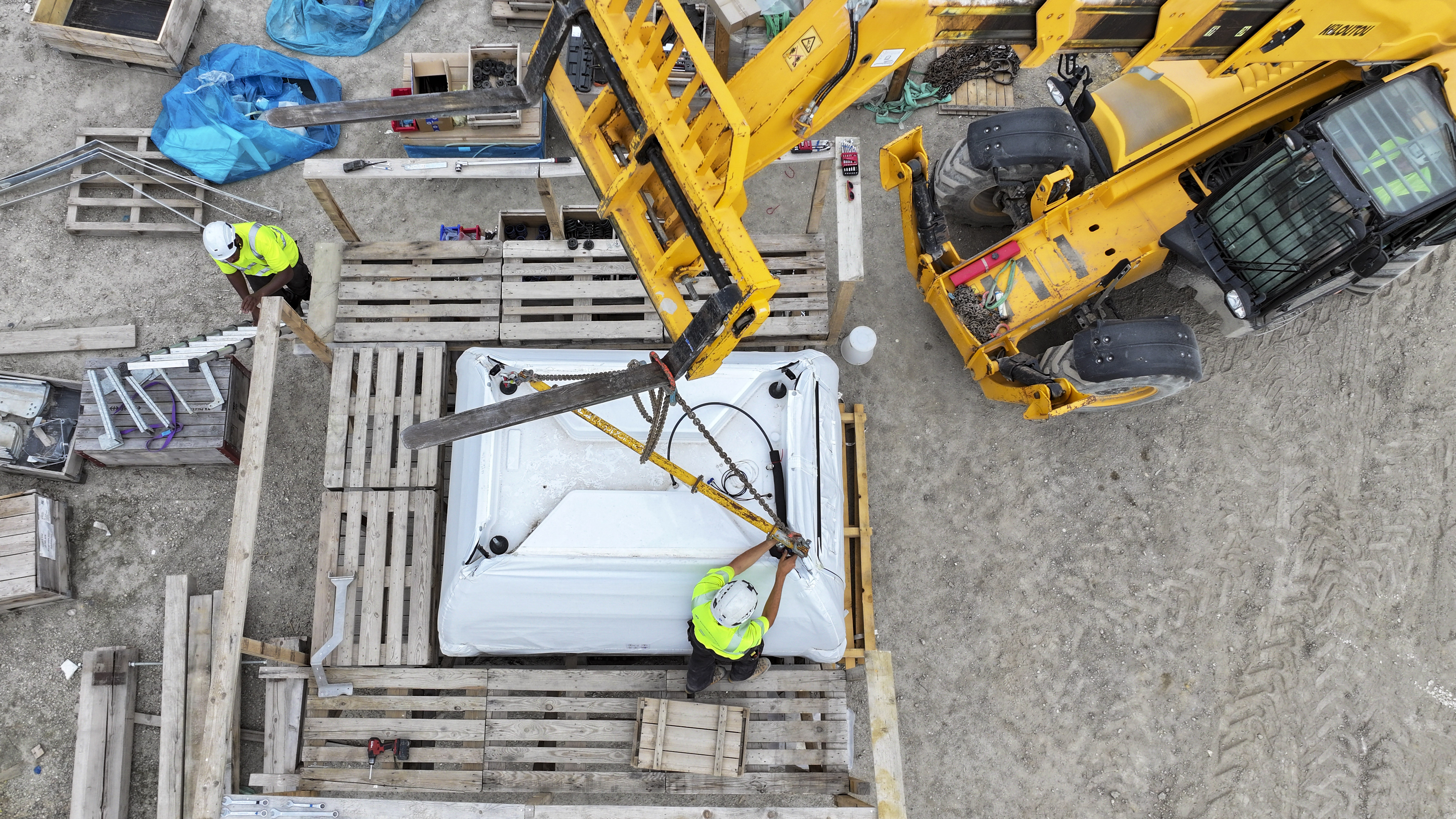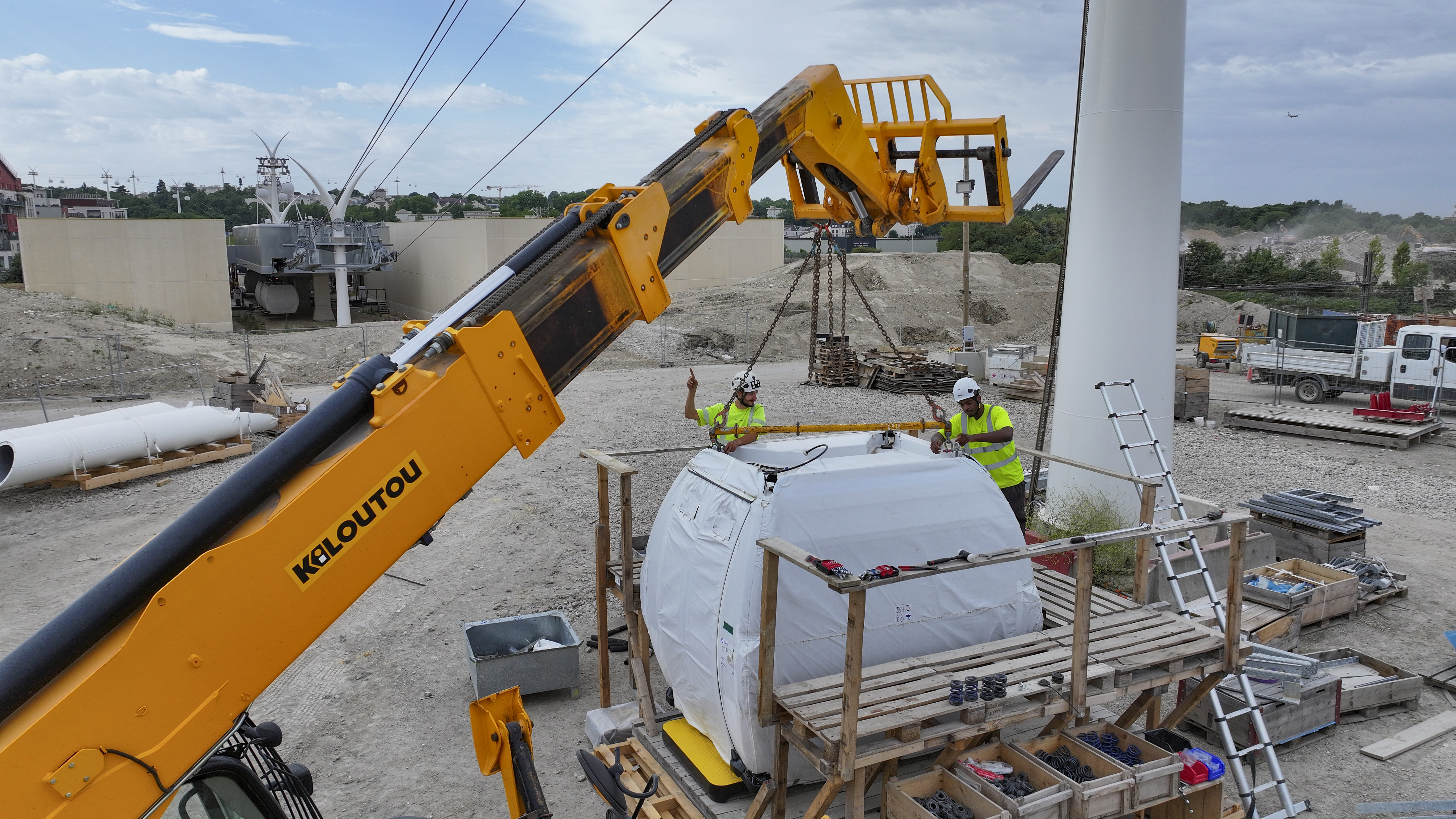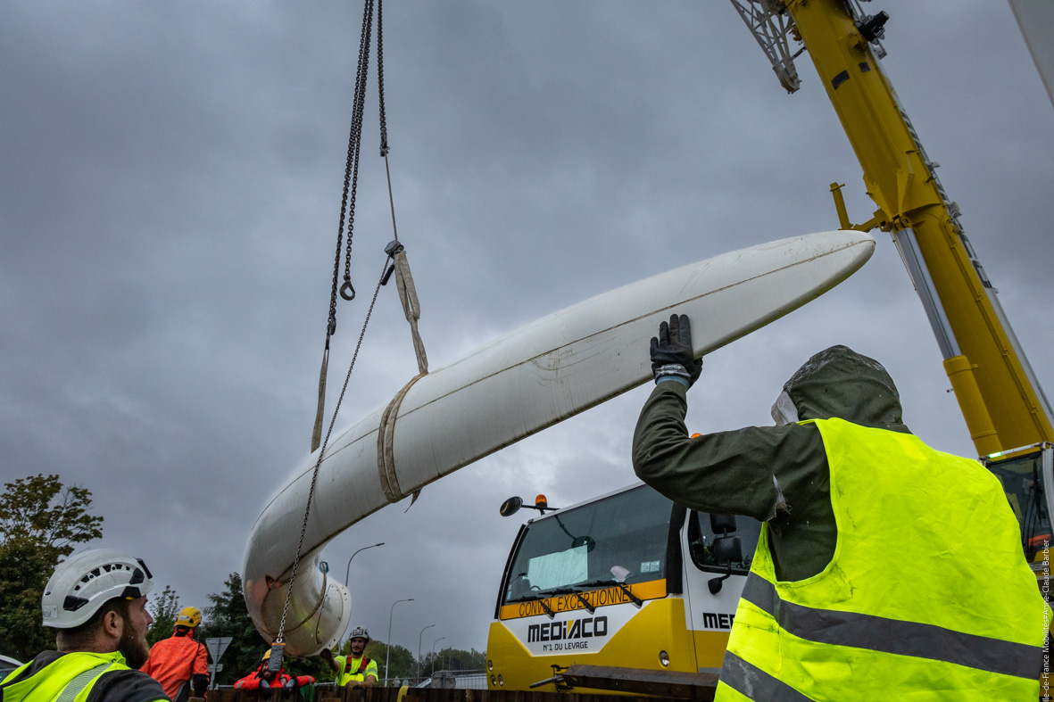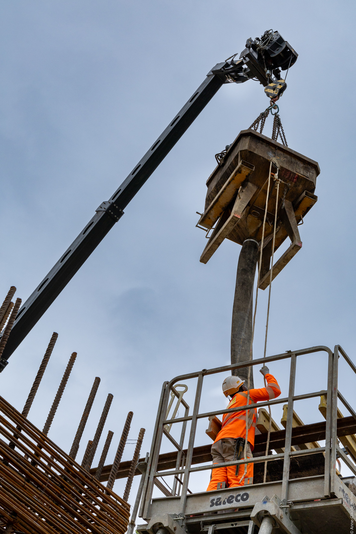 - © Île-de-France Mobilités | Levage d'un pylône aux abords de la station Pointe du Lac - mai 2024