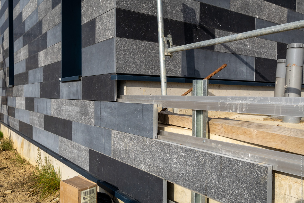 - © Île-de-France Mobilités - Anne-Claude Barbier | Parement en pierre calcaire bleue du local technique d'exploitation - septembre 2024