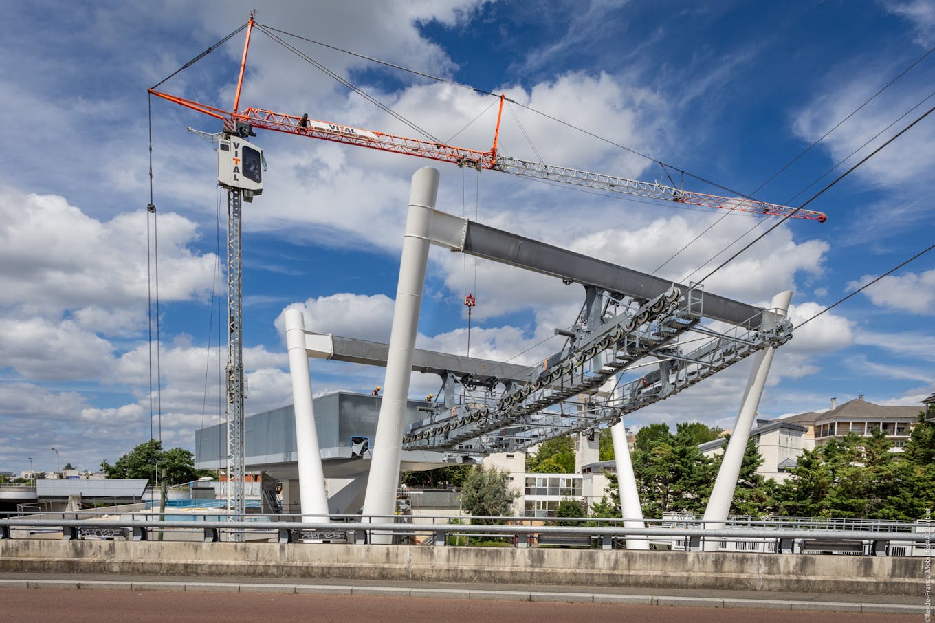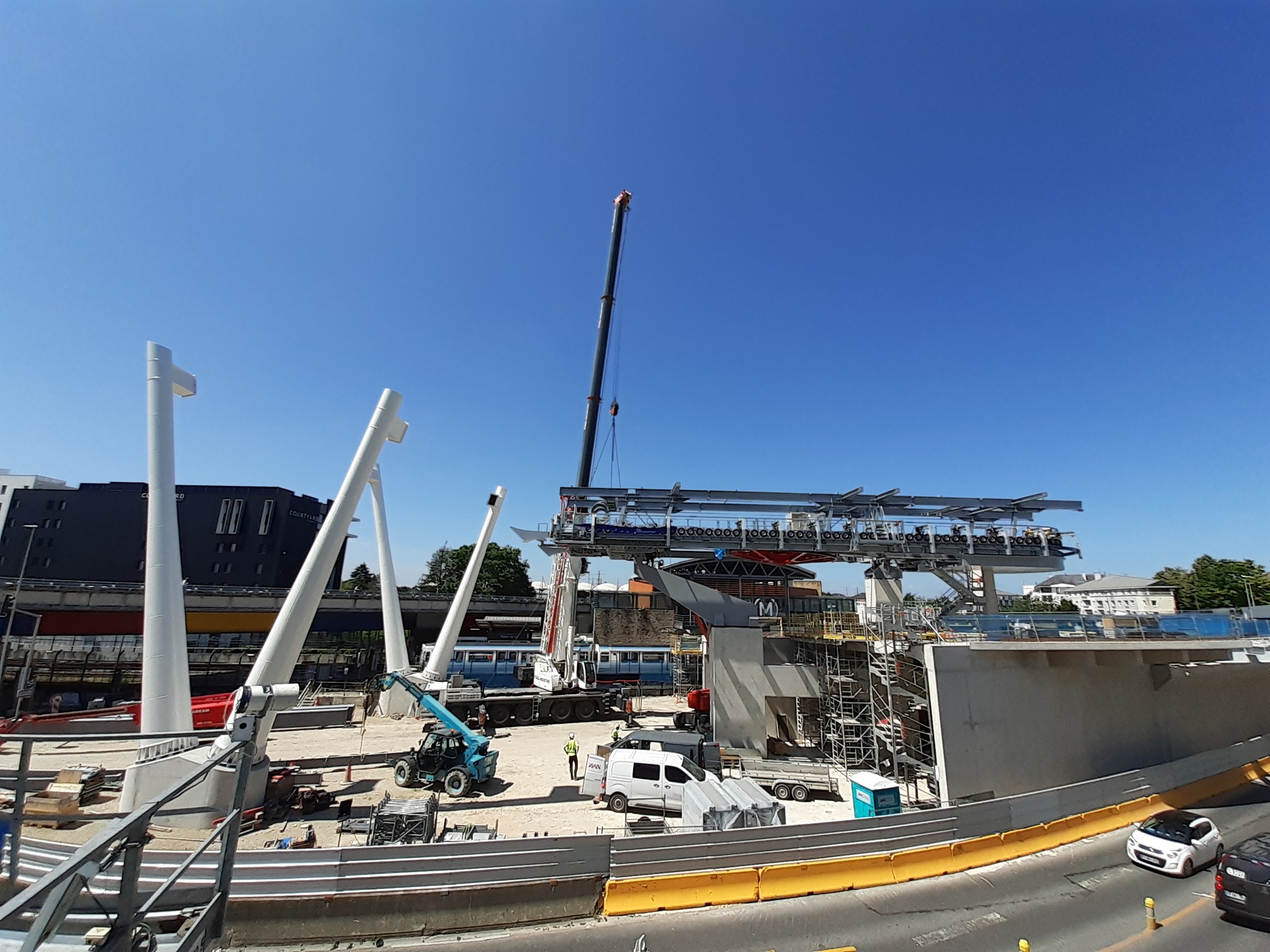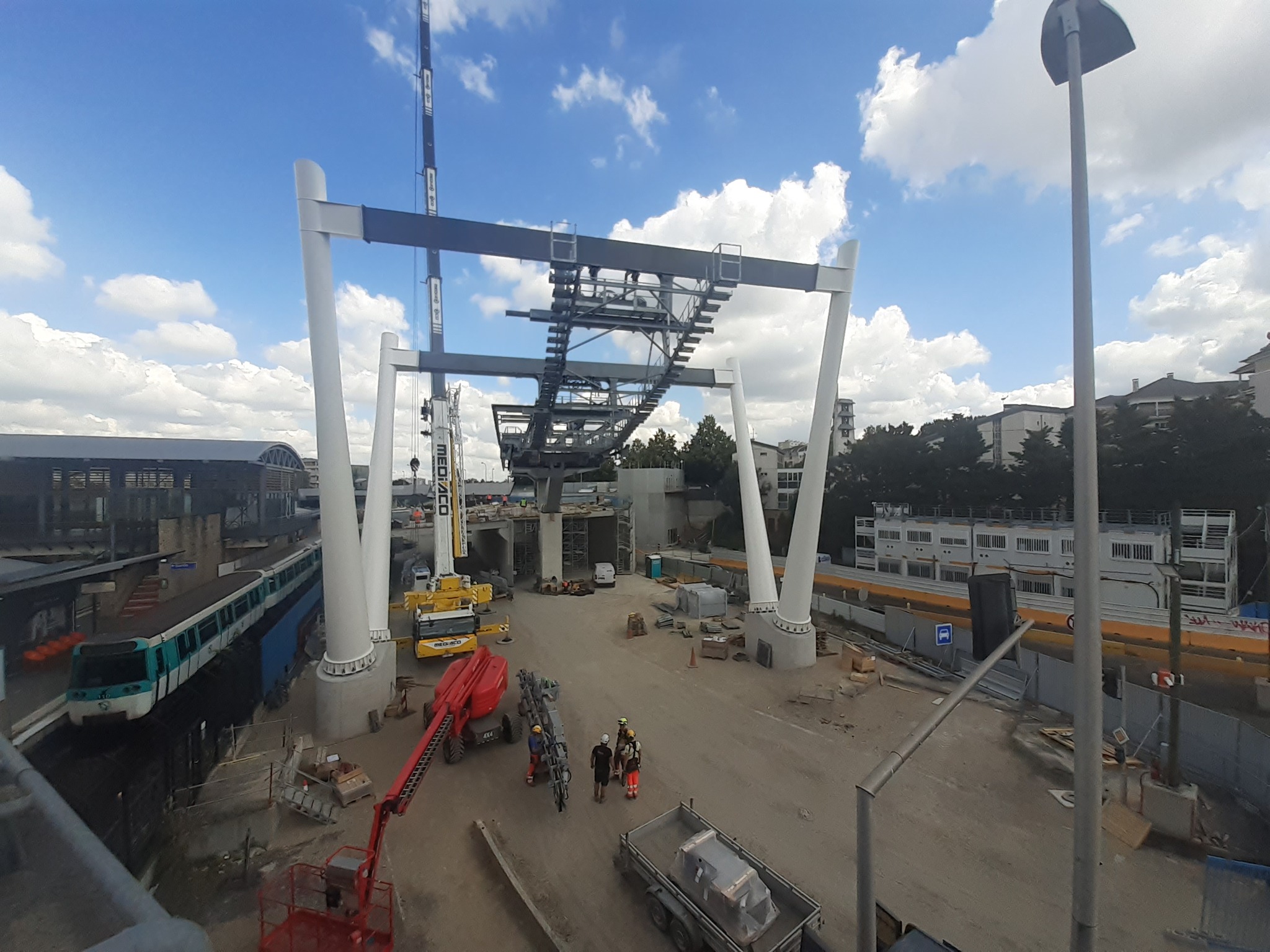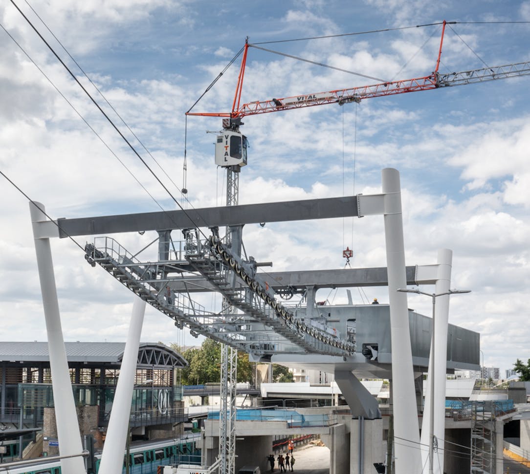 - ©Île-de-France Mobilités | Montage du pylône portique de la station Pointe du Lac - juin 2024