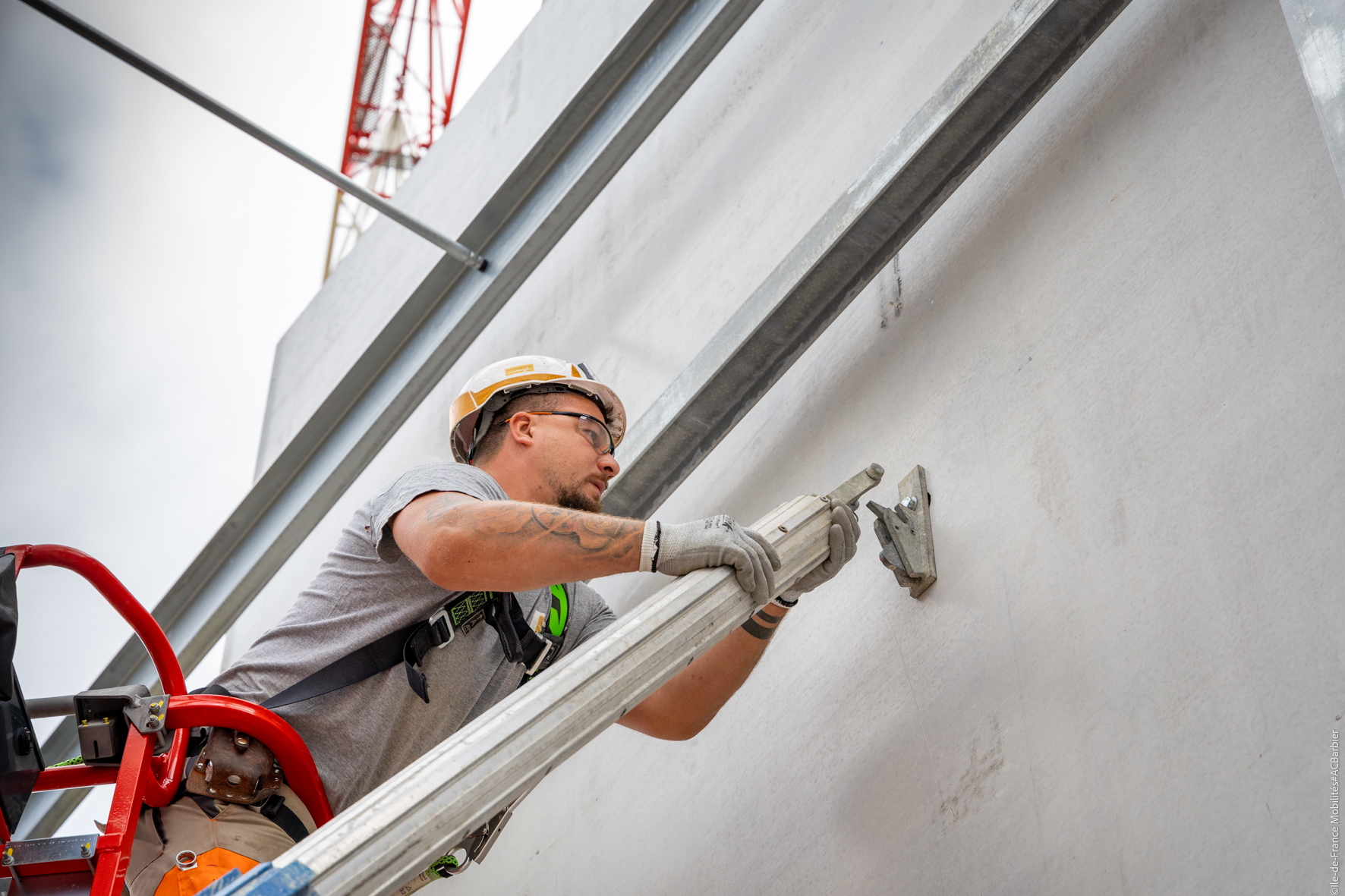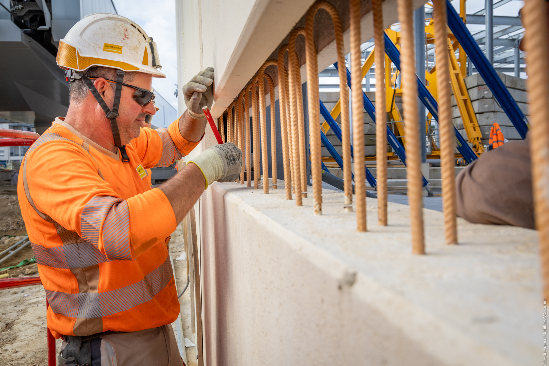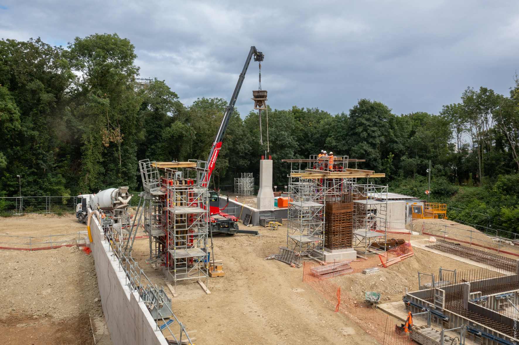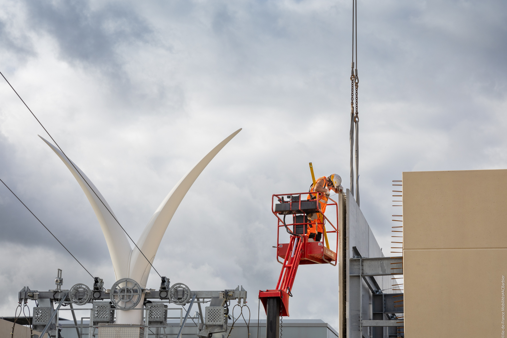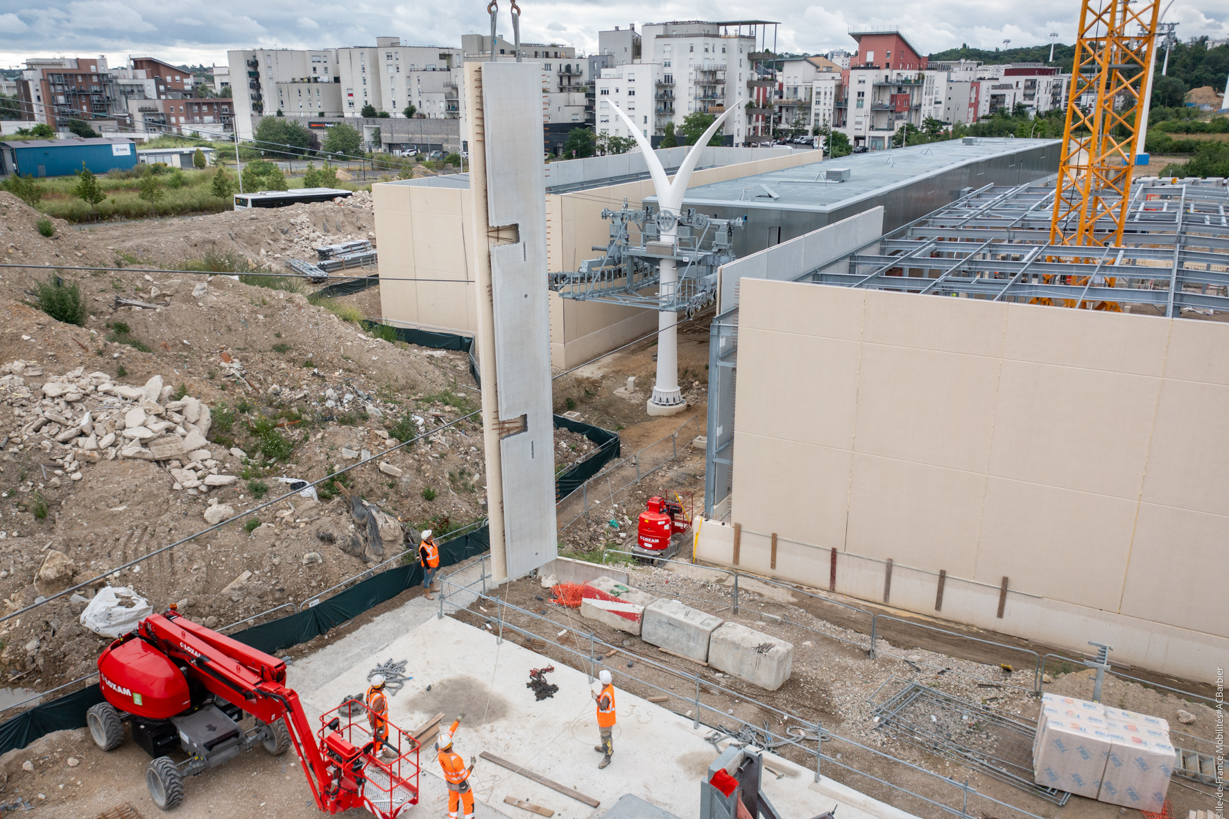 - © Île-de-France Mobilités - Anne-Claude Barbier | Montage des prémurs des ateliers-garages à Limeil-Brévannes - juillet 2024