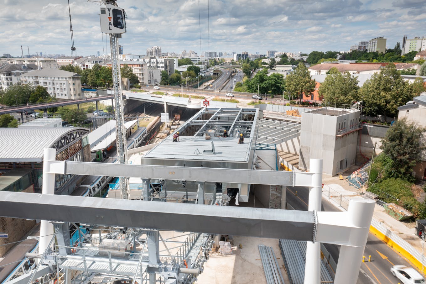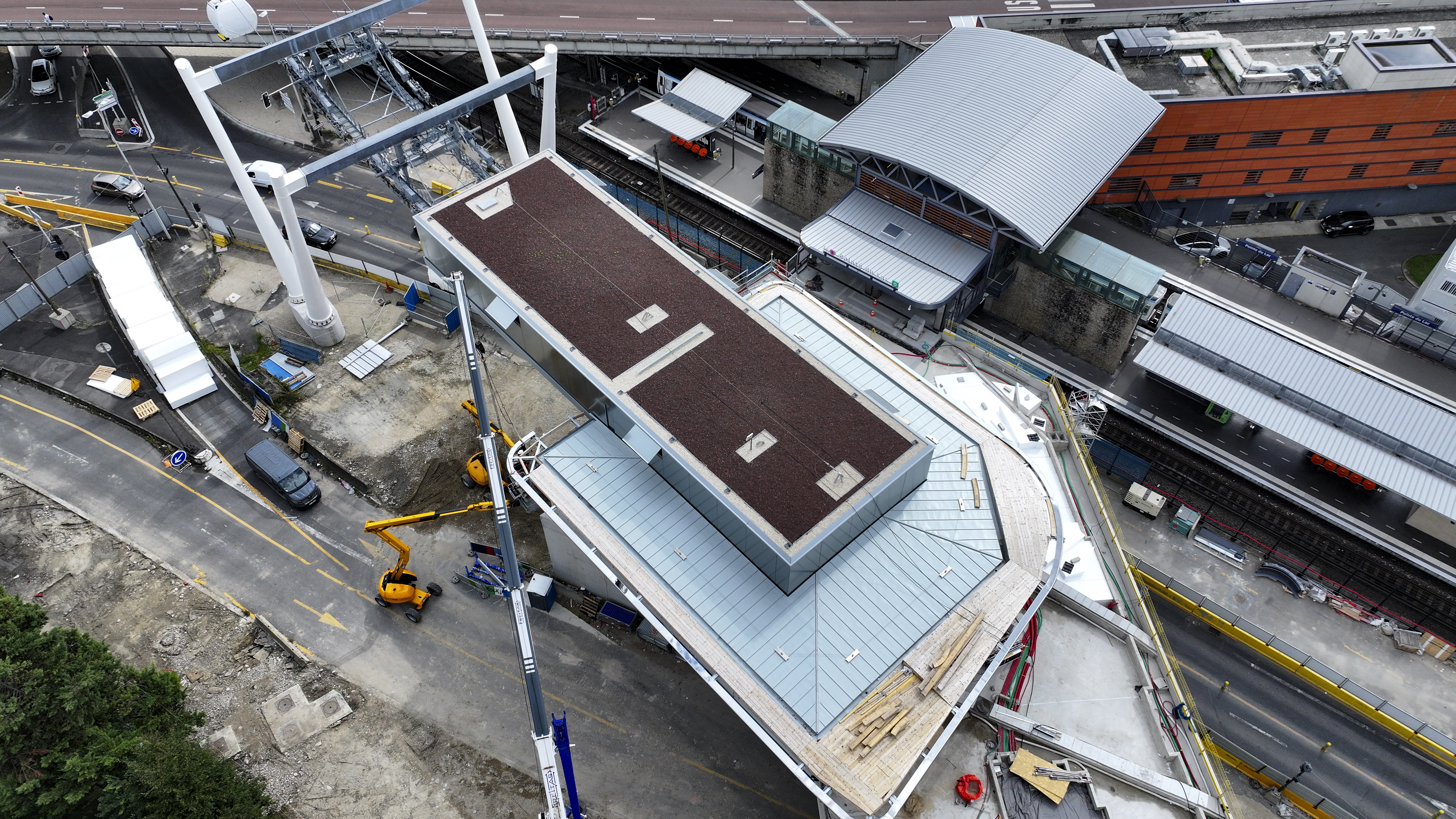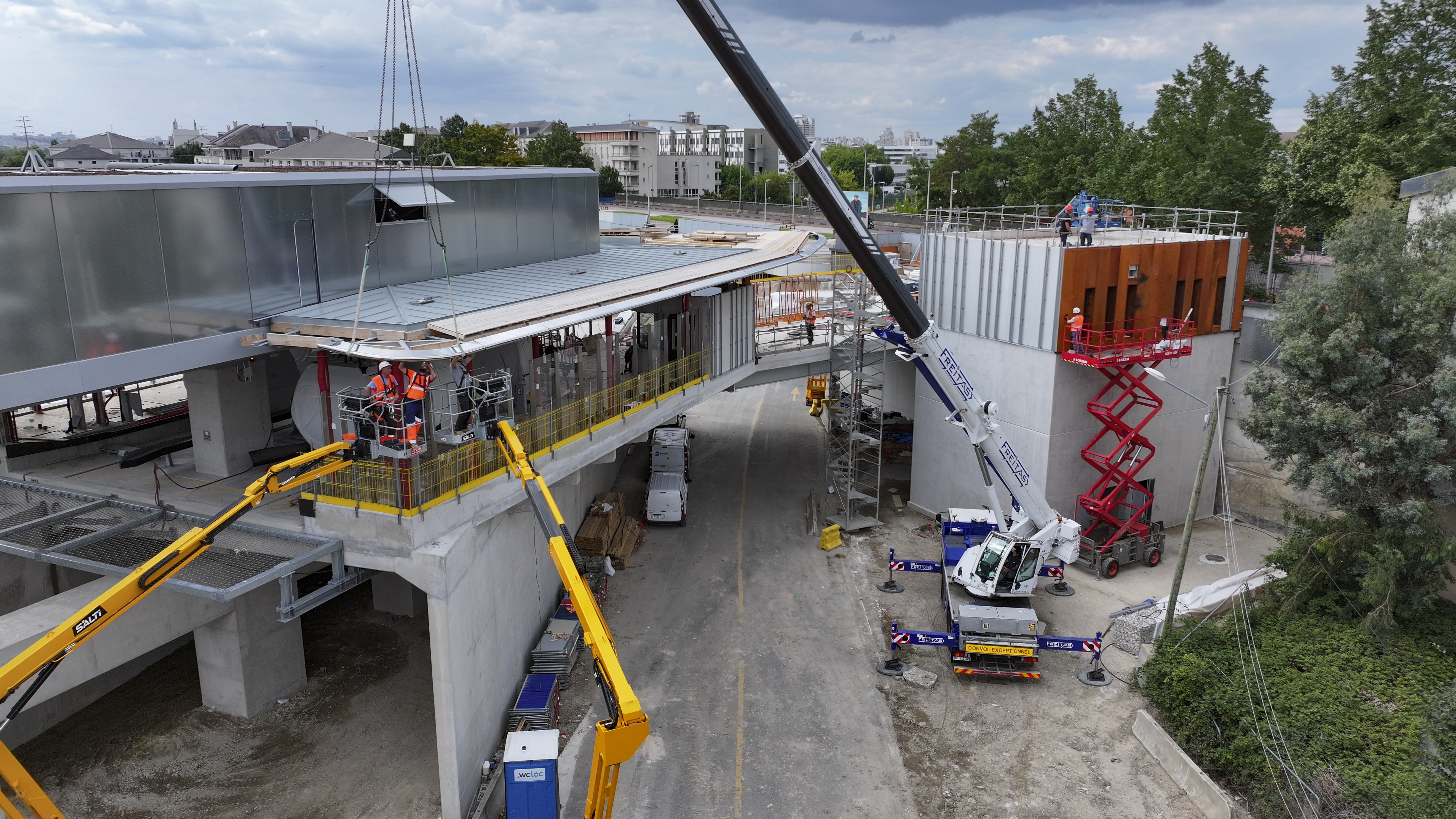 - © Île-de-France Mobilités - Anne-Claude Barbier | Pose de la toiture de la station Pointe du Lac - juillet 2024